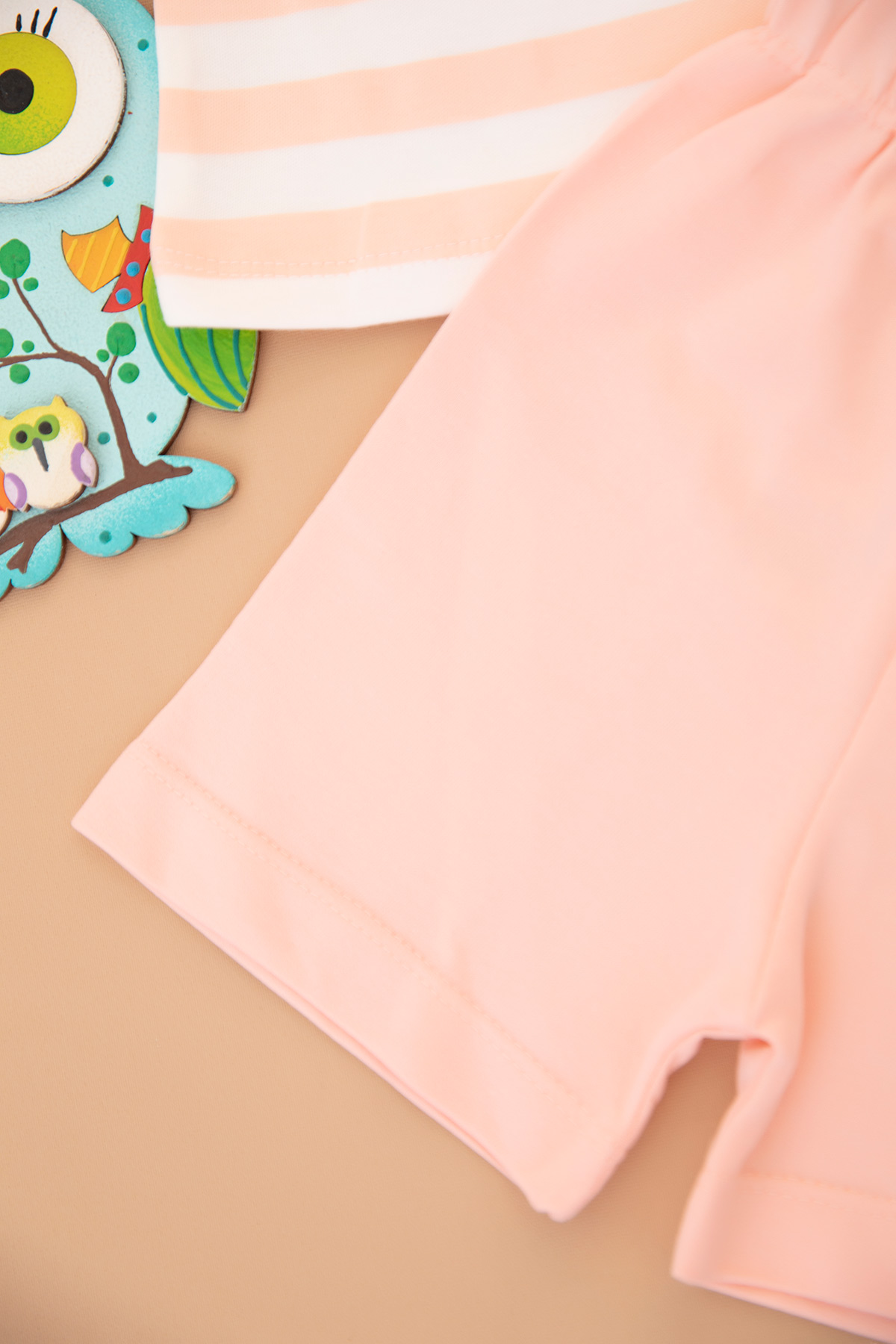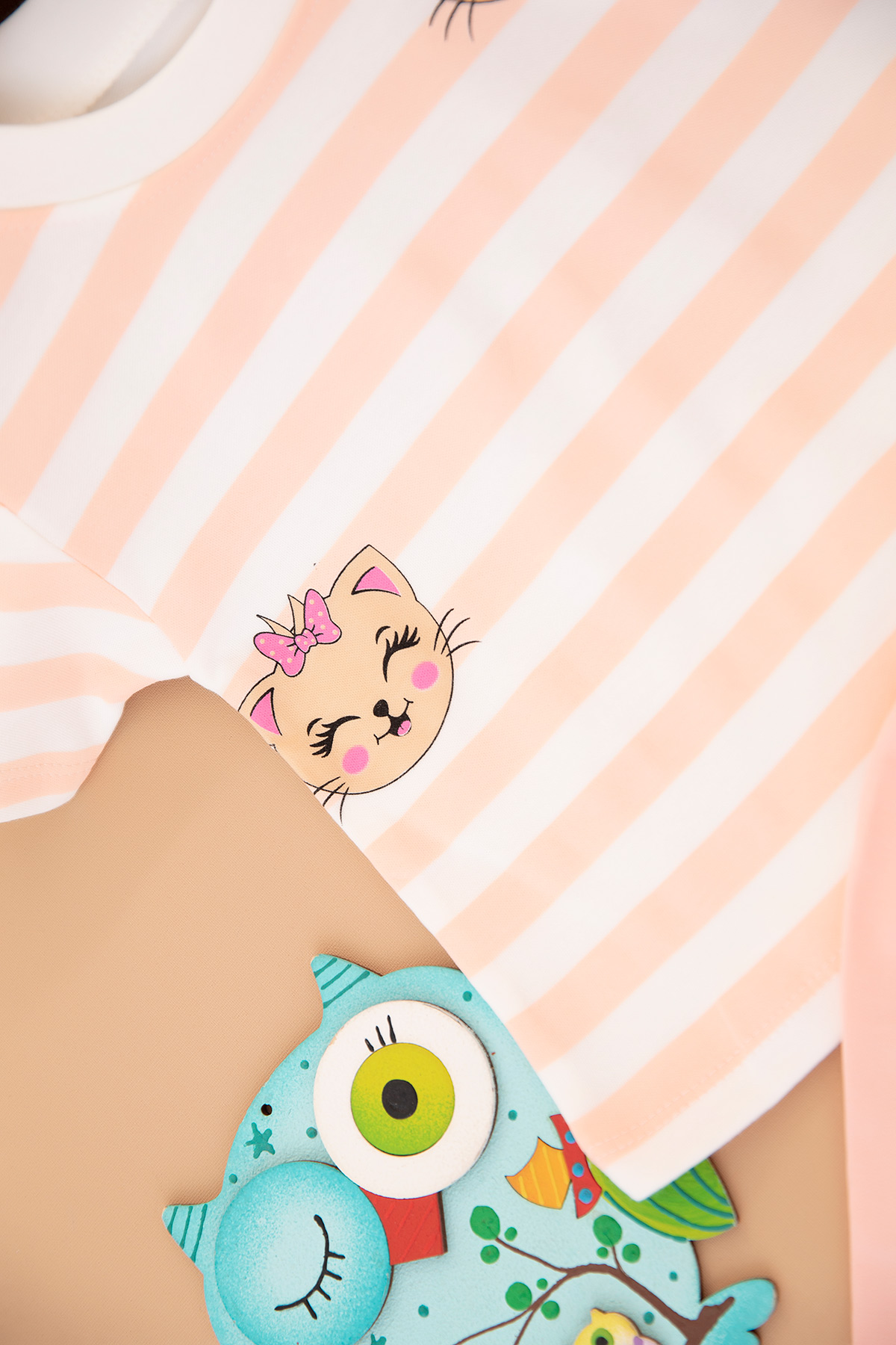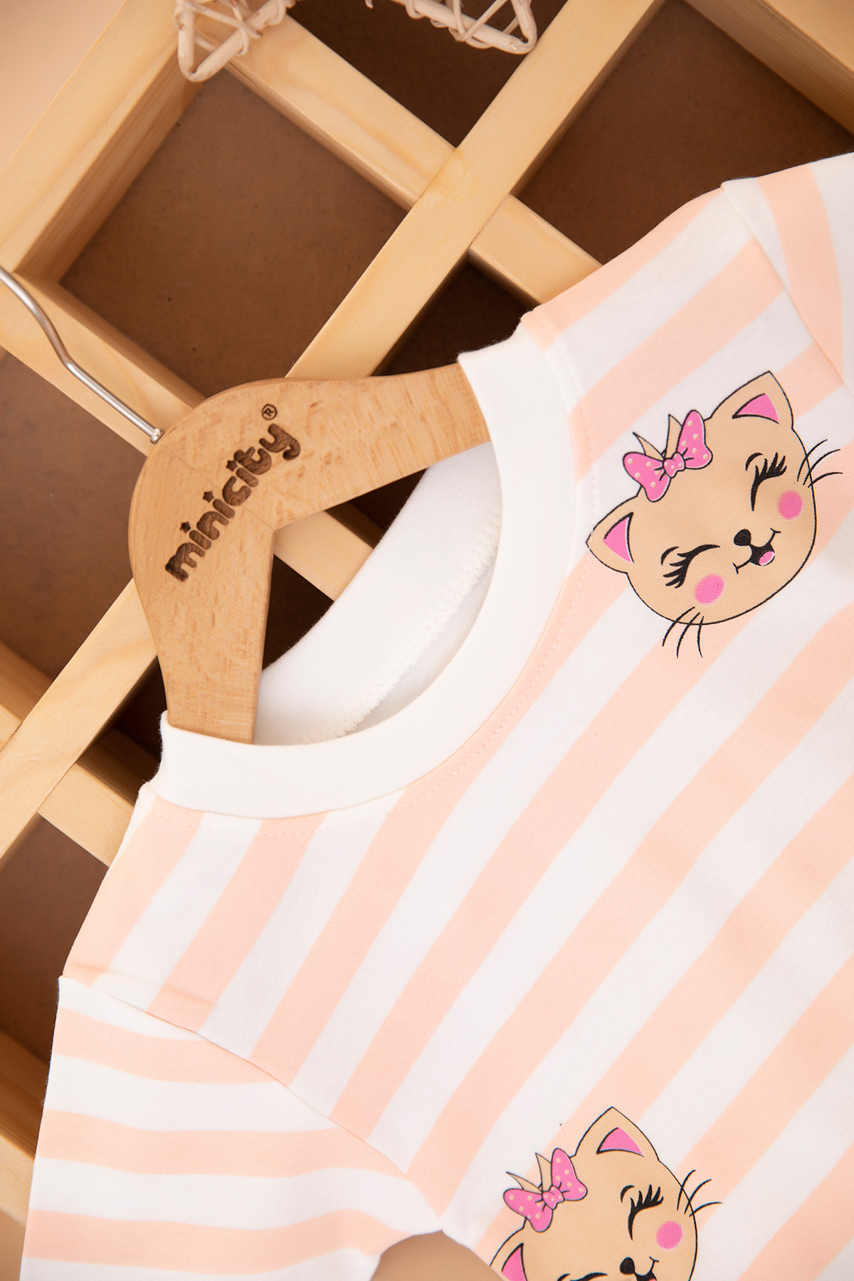Kız Çocuk Çizgili Kedi Baskılı Şortlu Takım - 3023 (1-3 Yaş)