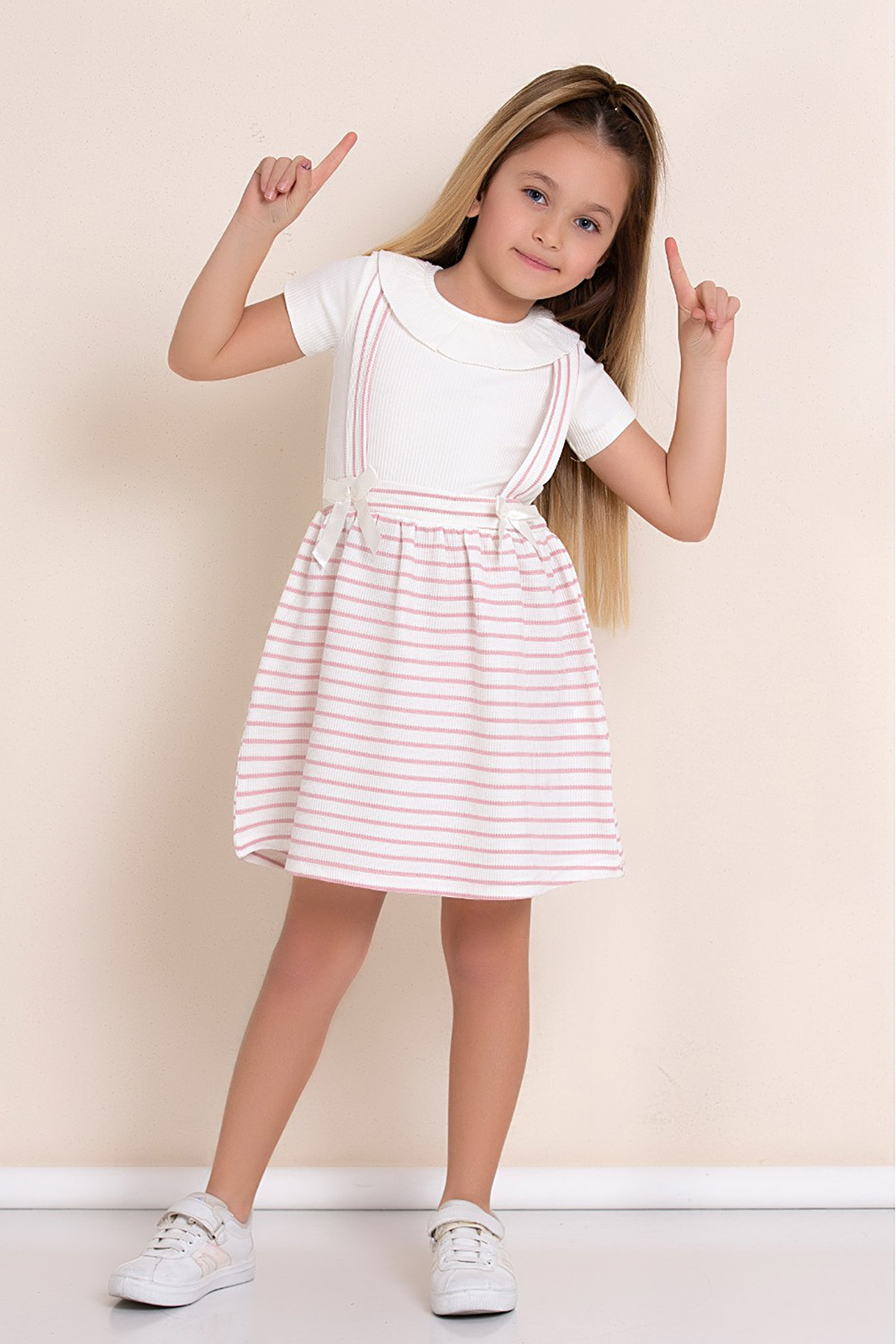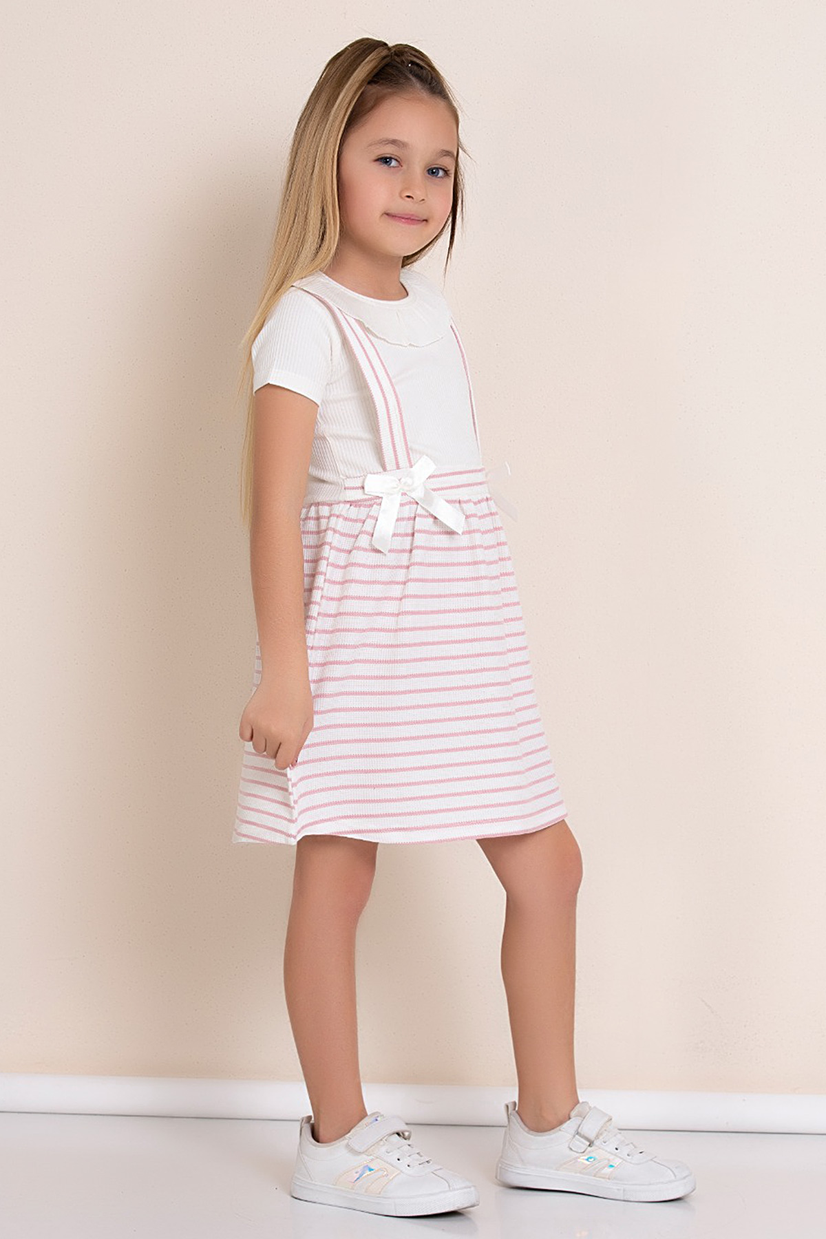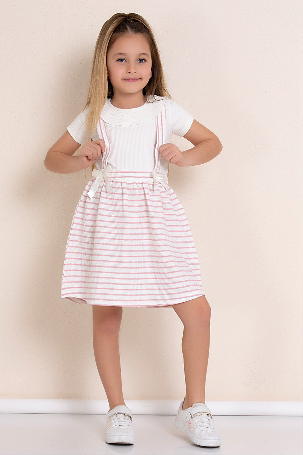 Kız Çocuk Çizgili Kurdele Elbise - 7485(3-7 Yaş)