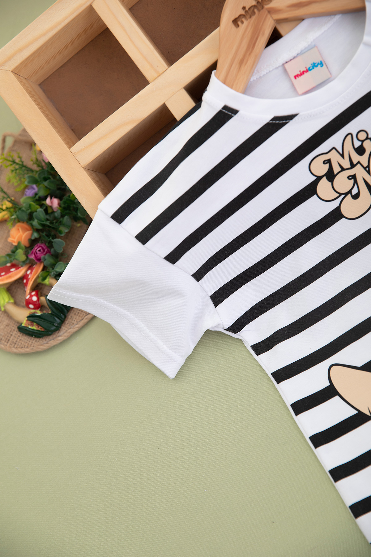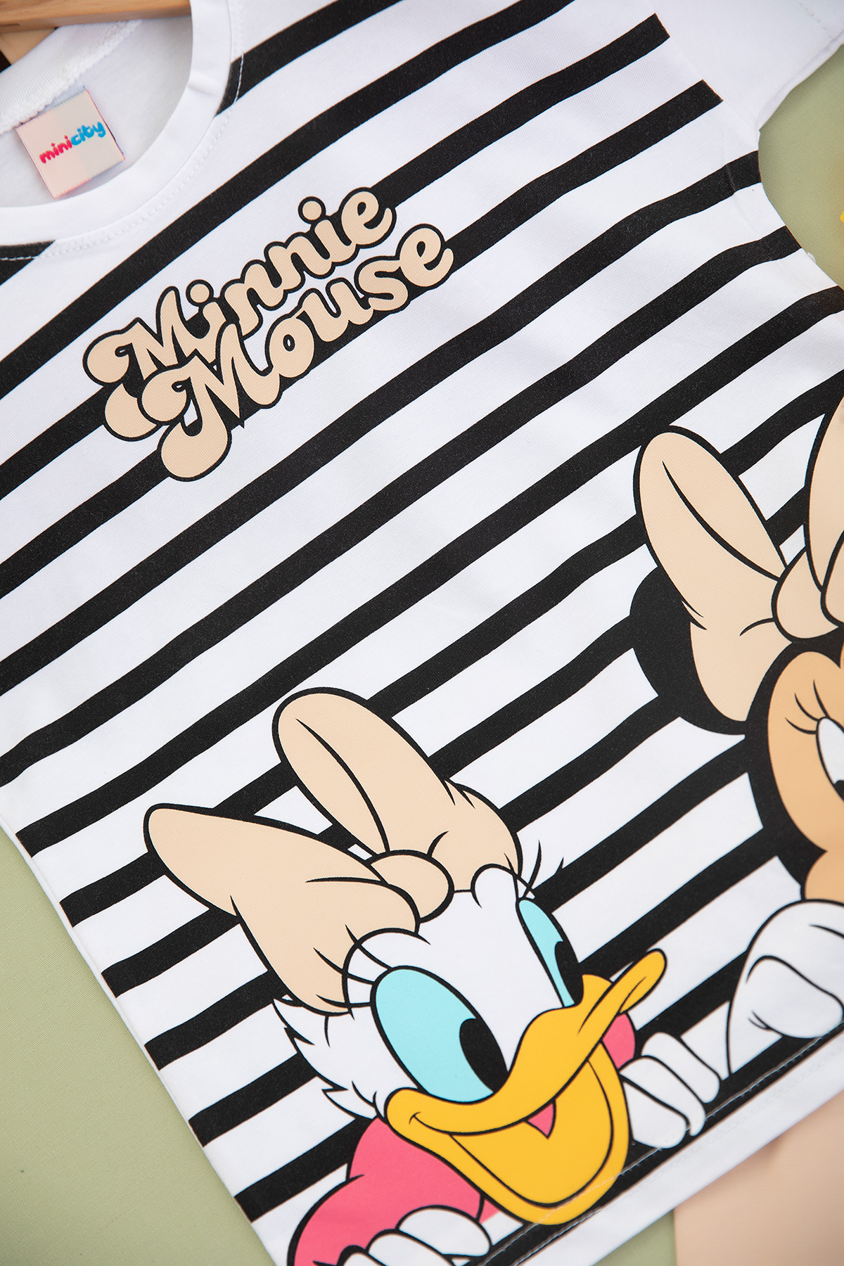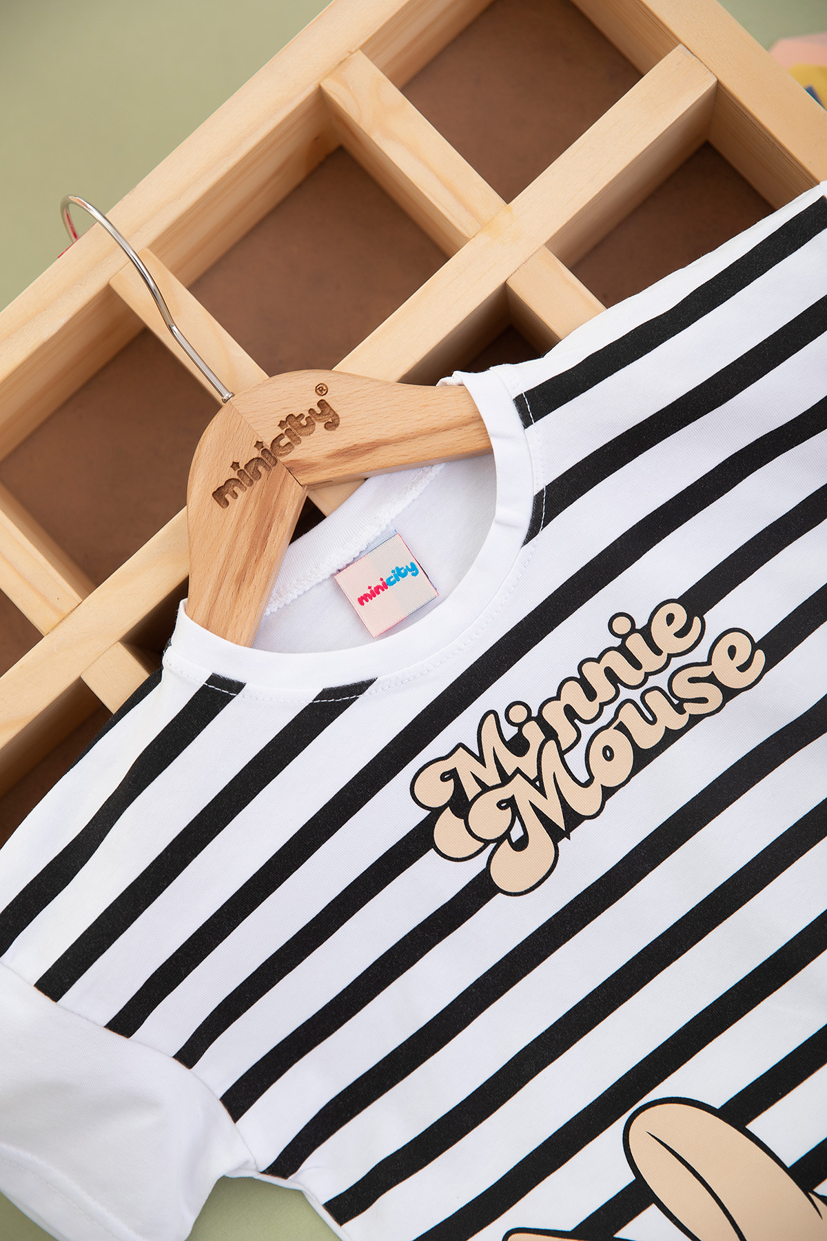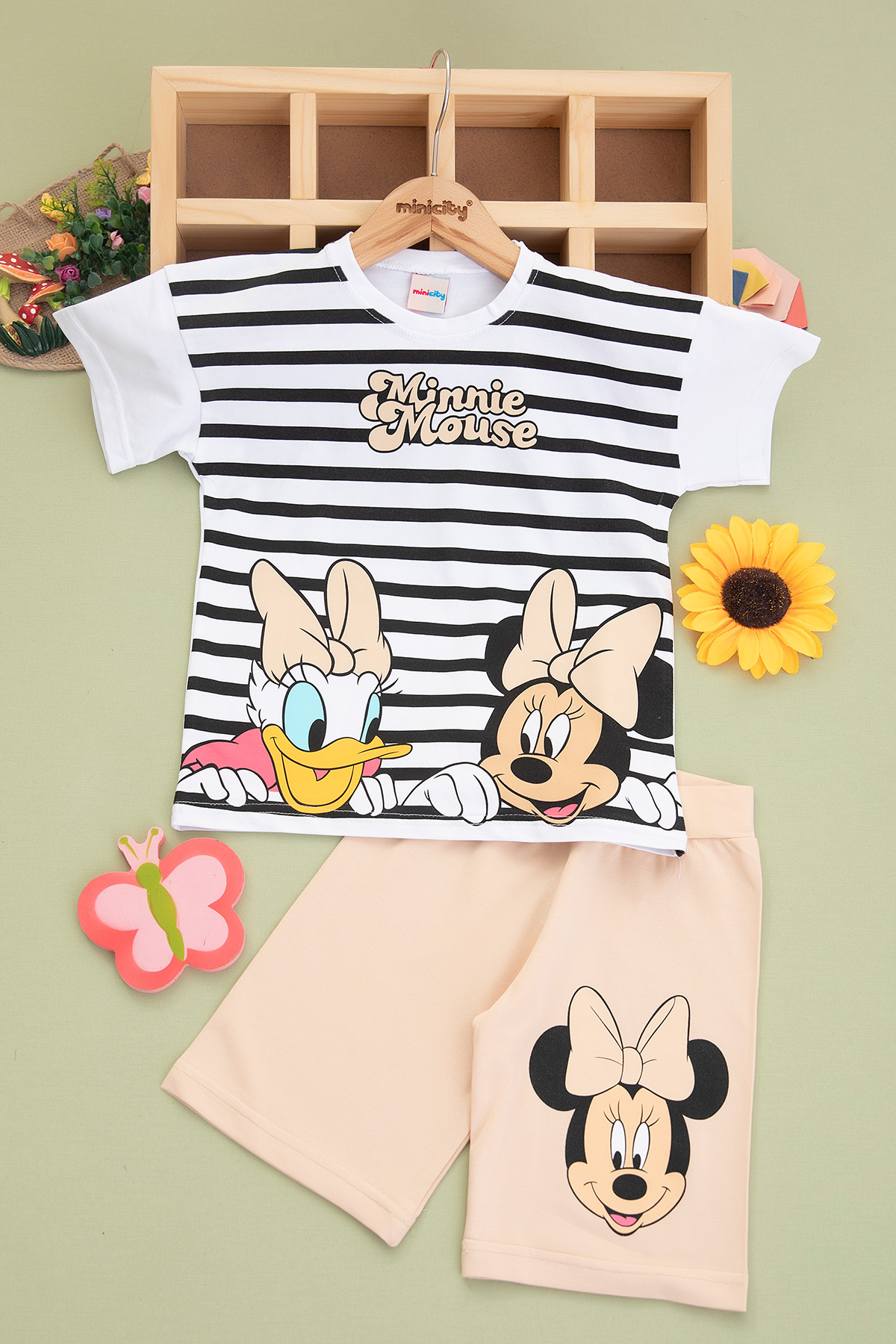 Kız Çocuk Çizgili Minnie Mouse Şortlu Takım (4-10 Yaş)