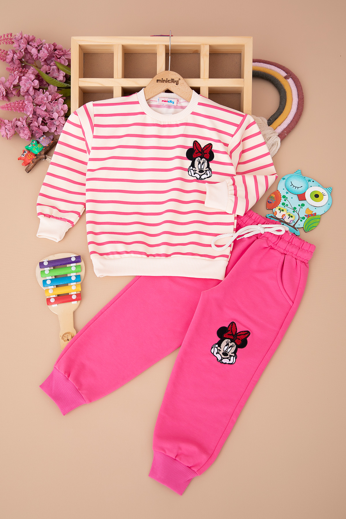 Kız Çocuk Çizgili Minnie Nakışlı Takım (3-10 Yaş)