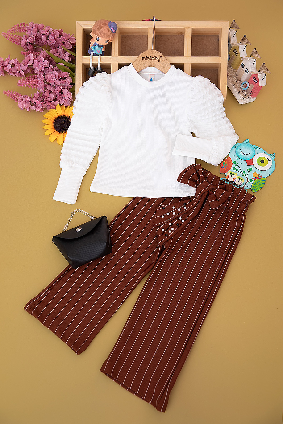 Kız Çocuk Çizgili Pantolonlu Takım - 25009 (2-5 Yaş)