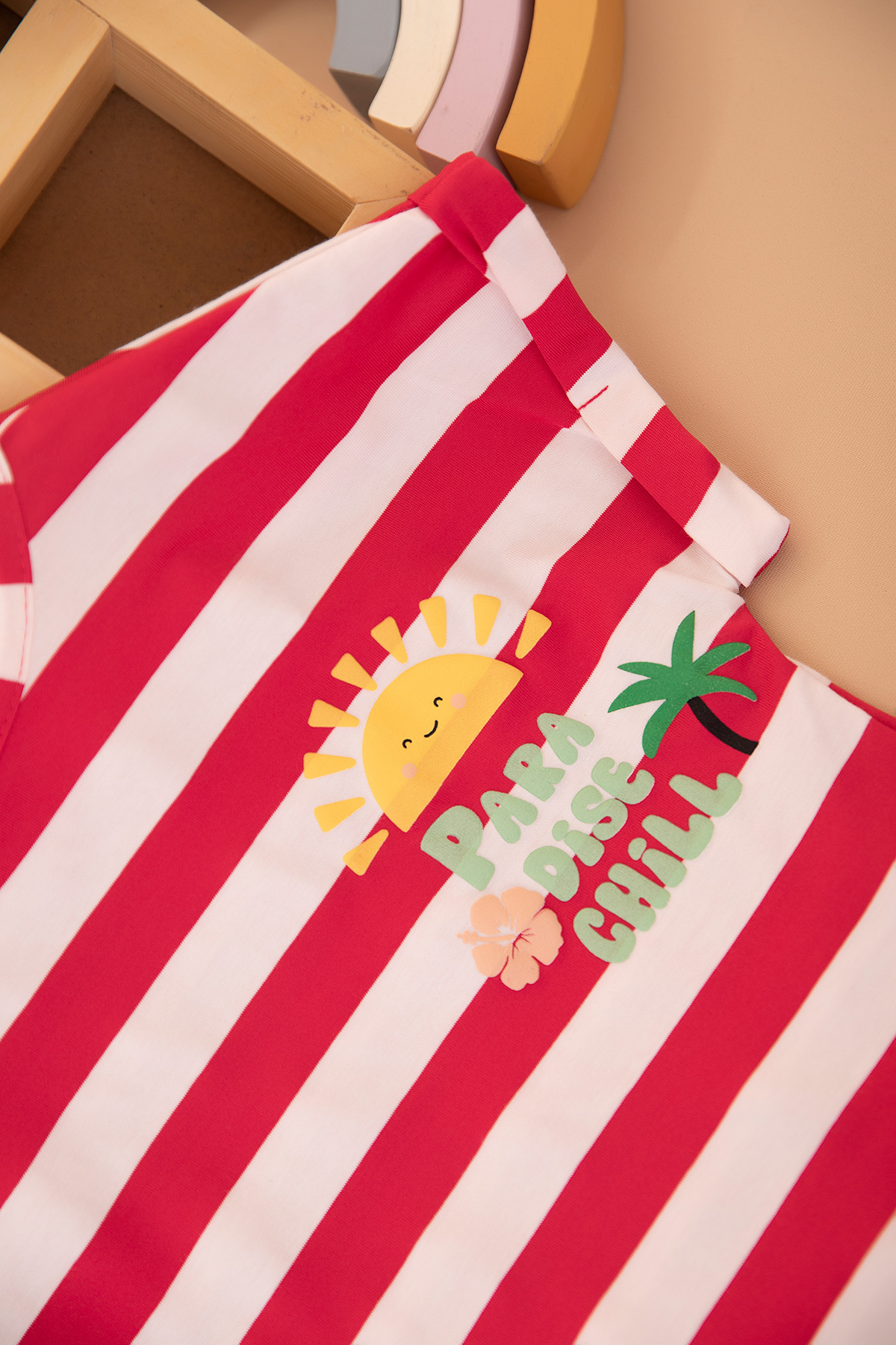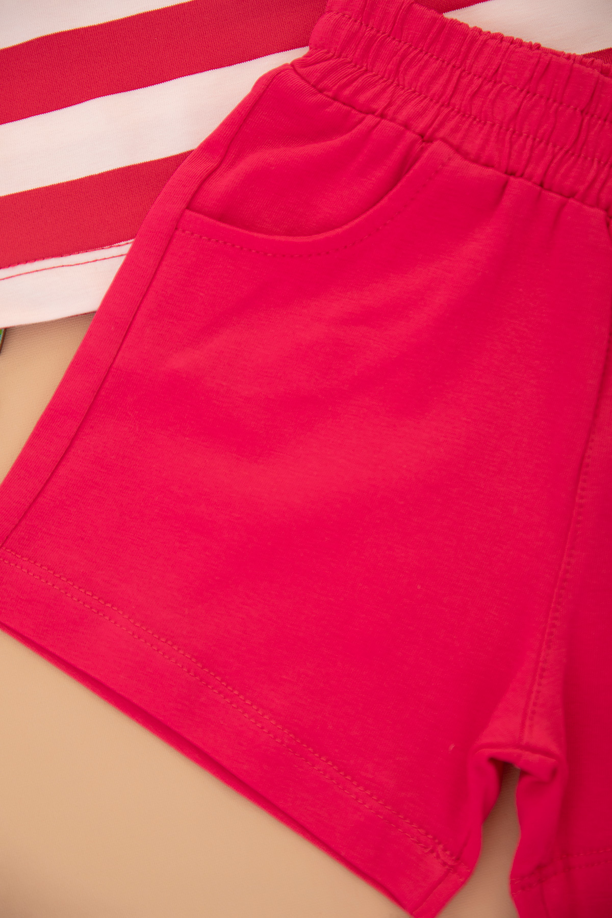 Kız Çocuk Çizgili Paradise Şortlu Takım - 25194 (7-10 Yaş)