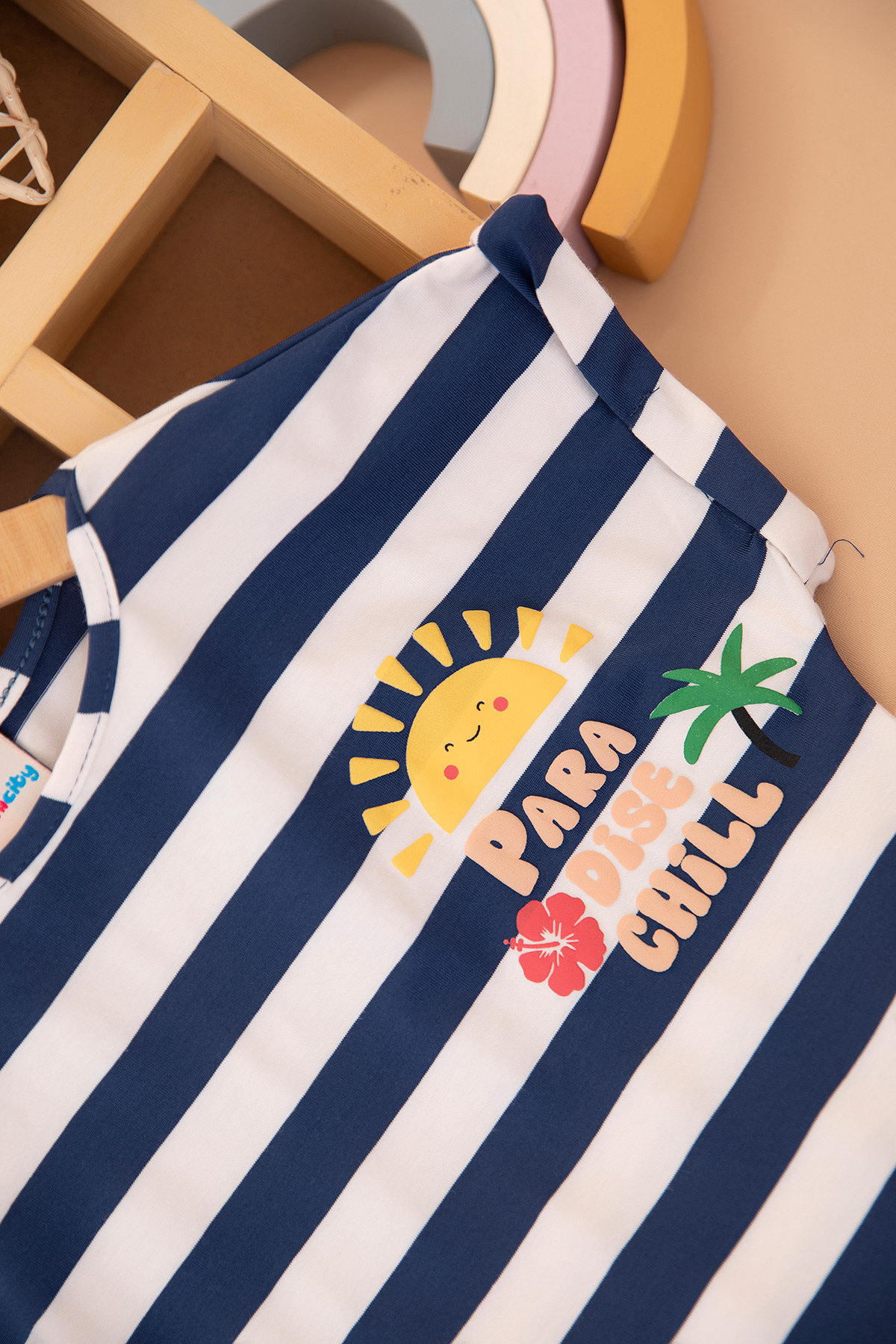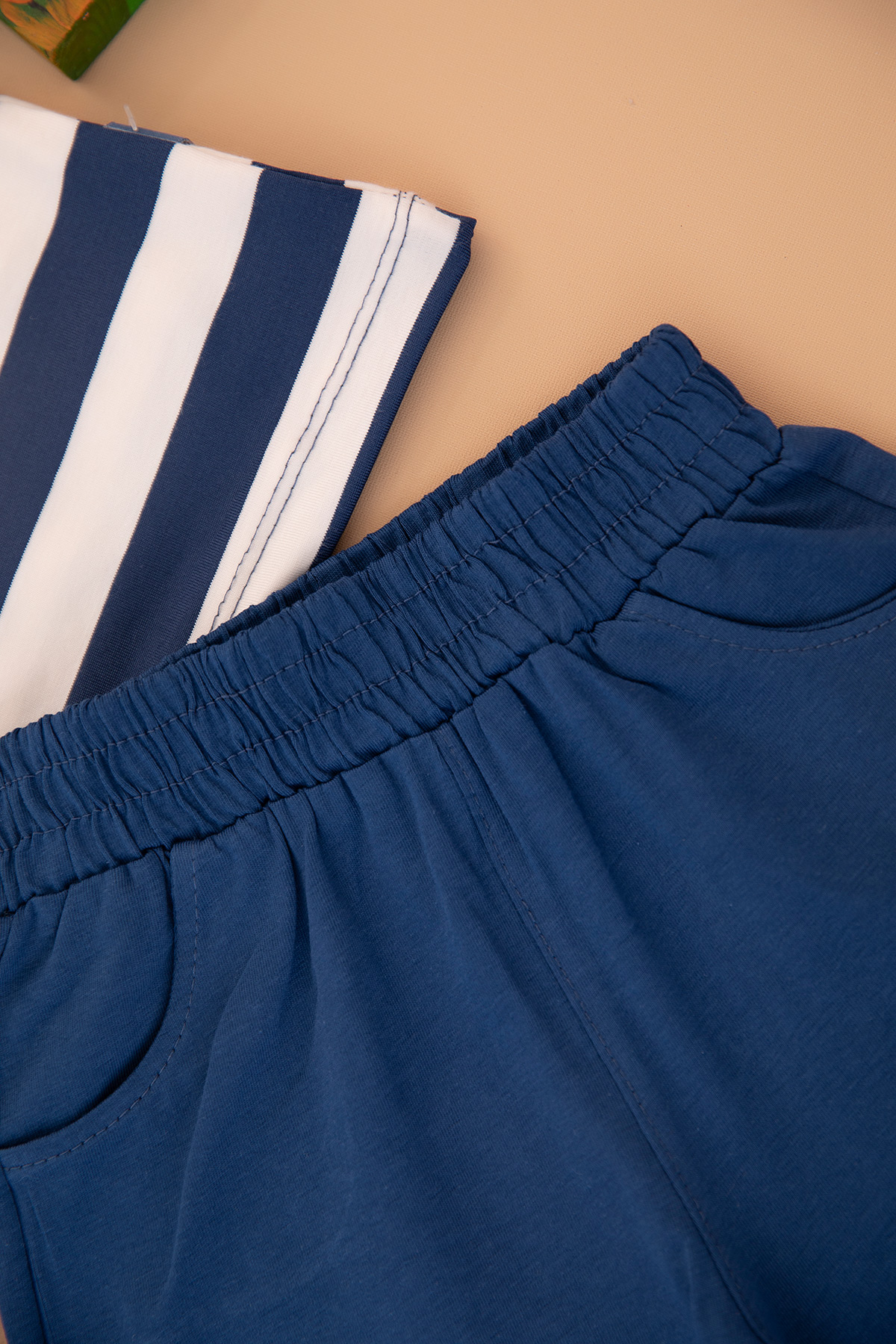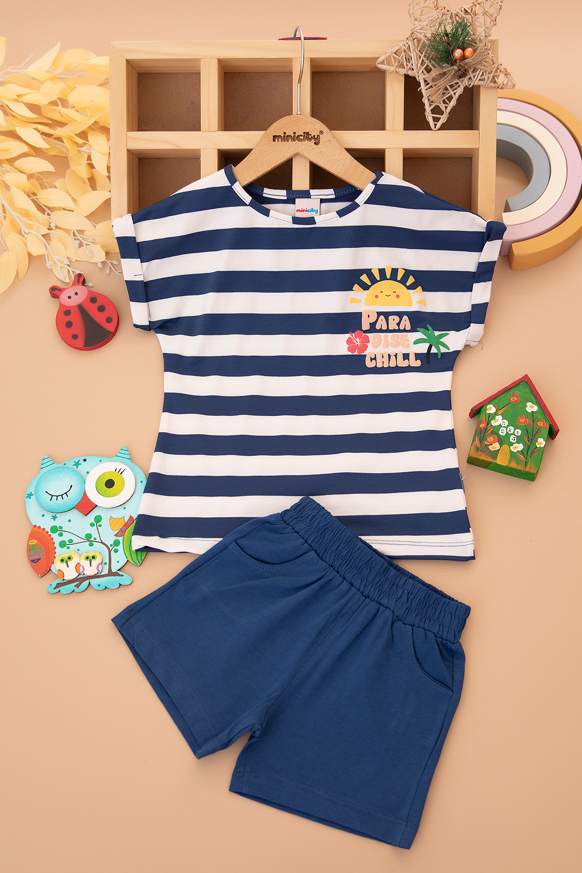 Kız Çocuk Çizgili Paradise Şortlu Takım - 25194 (7-10 Yaş)