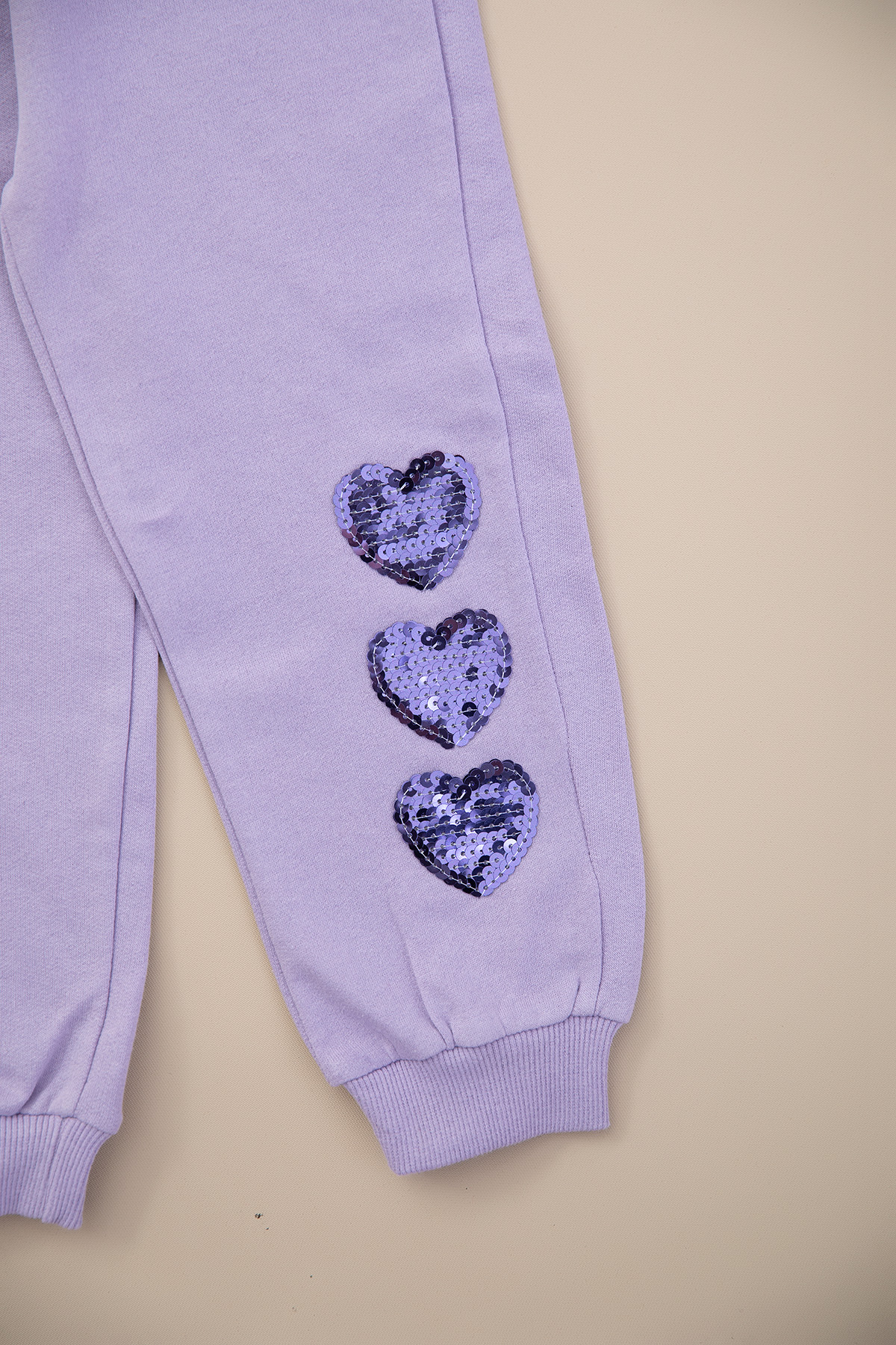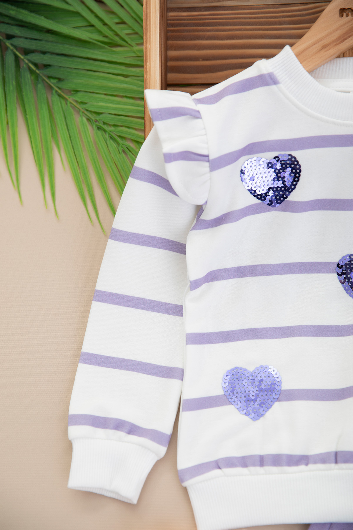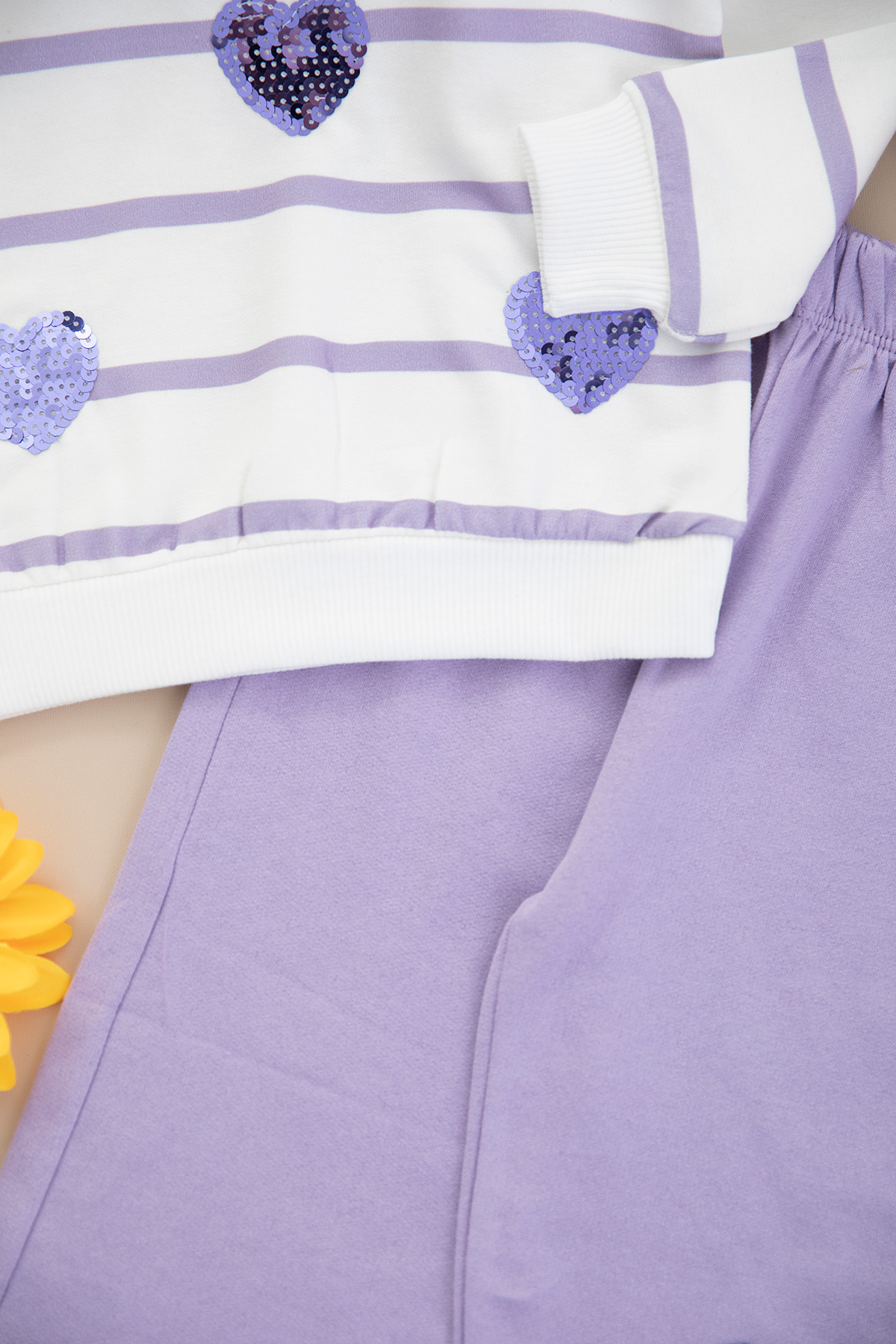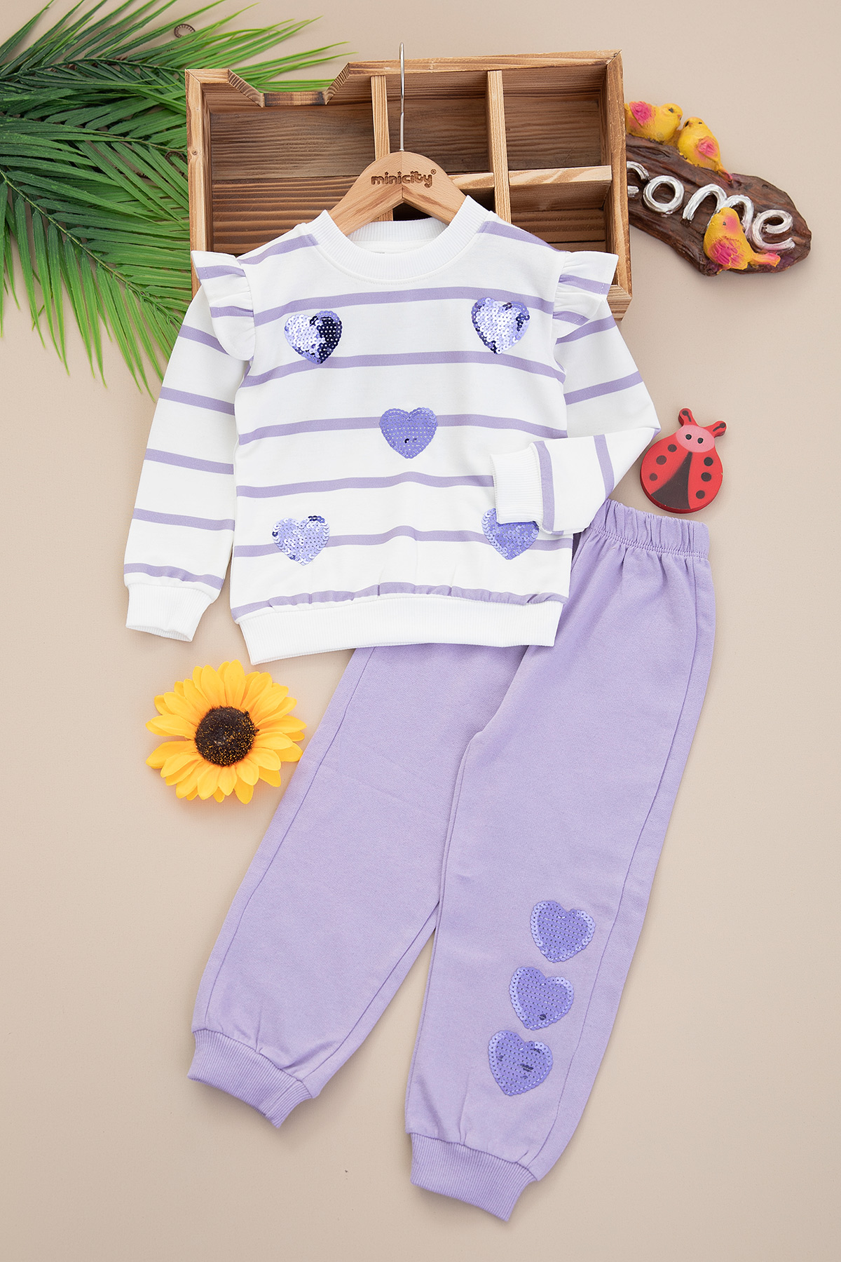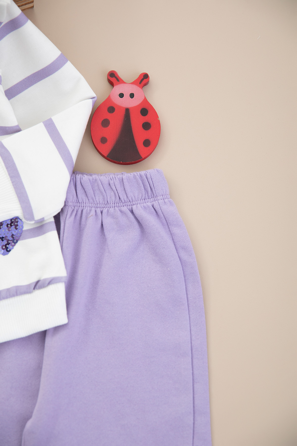 Kız Çocuk Çizgili Pullu Kalp Nakışlı Takım (3-9 Yaş)