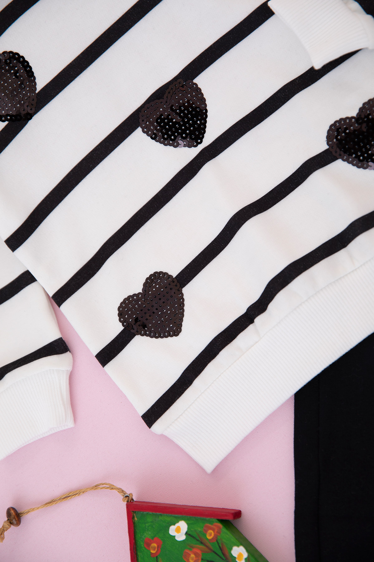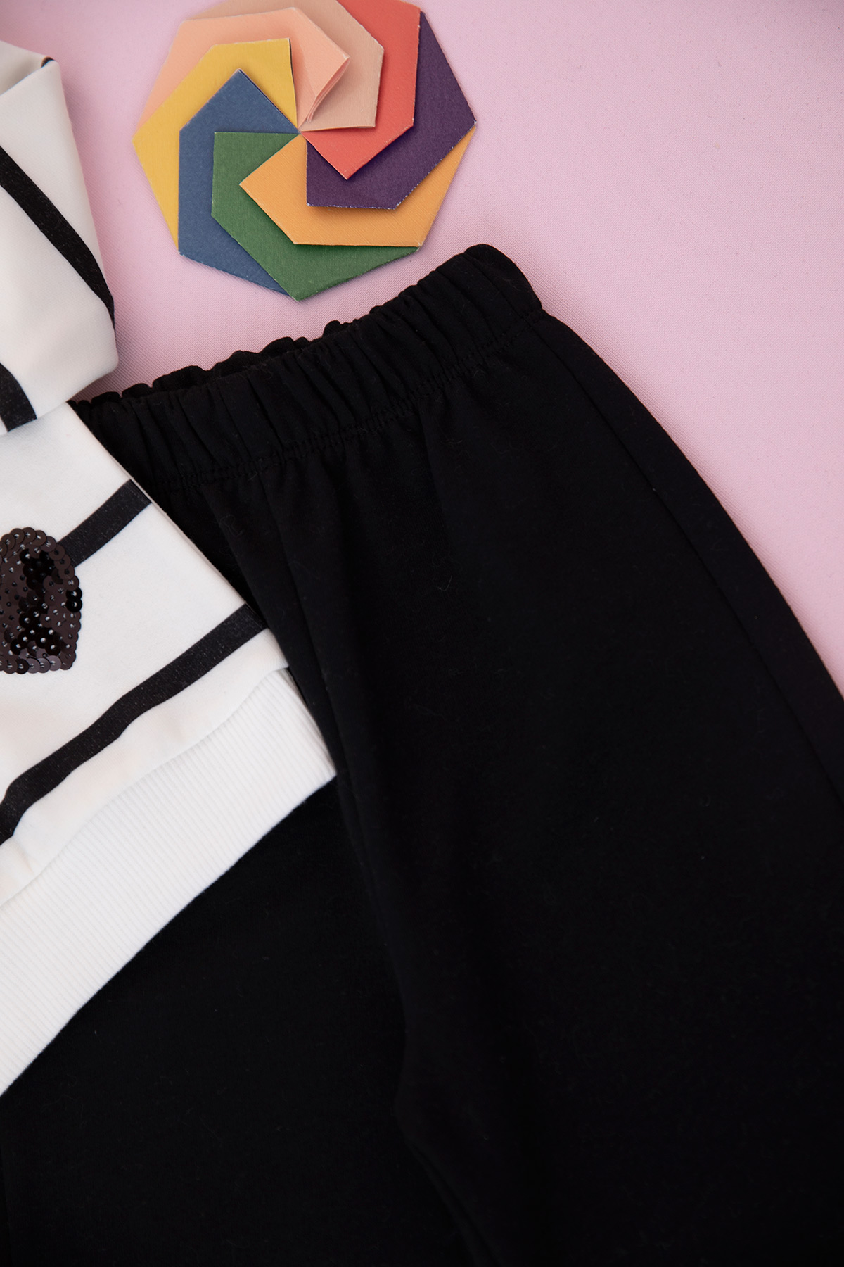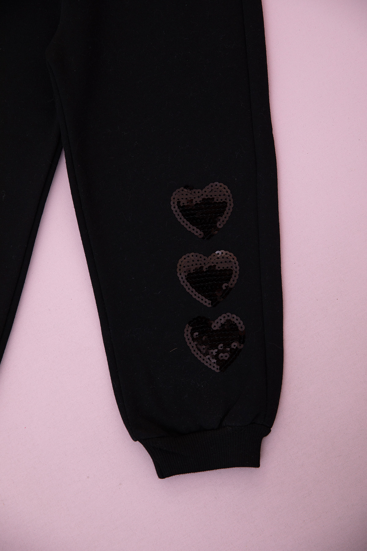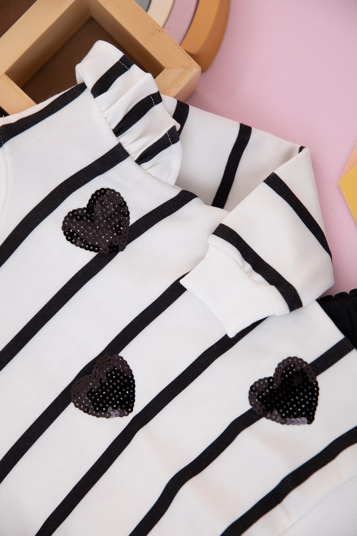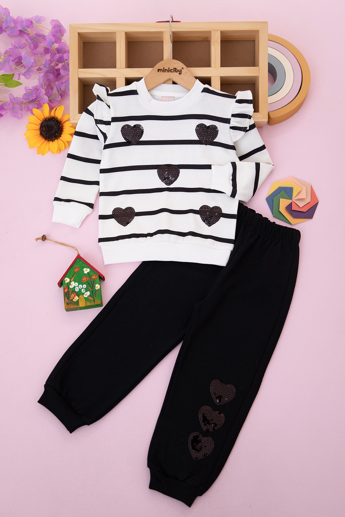 Kız Çocuk Çizgili Pullu Kalp Nakışlı Takım (3-9 Yaş)