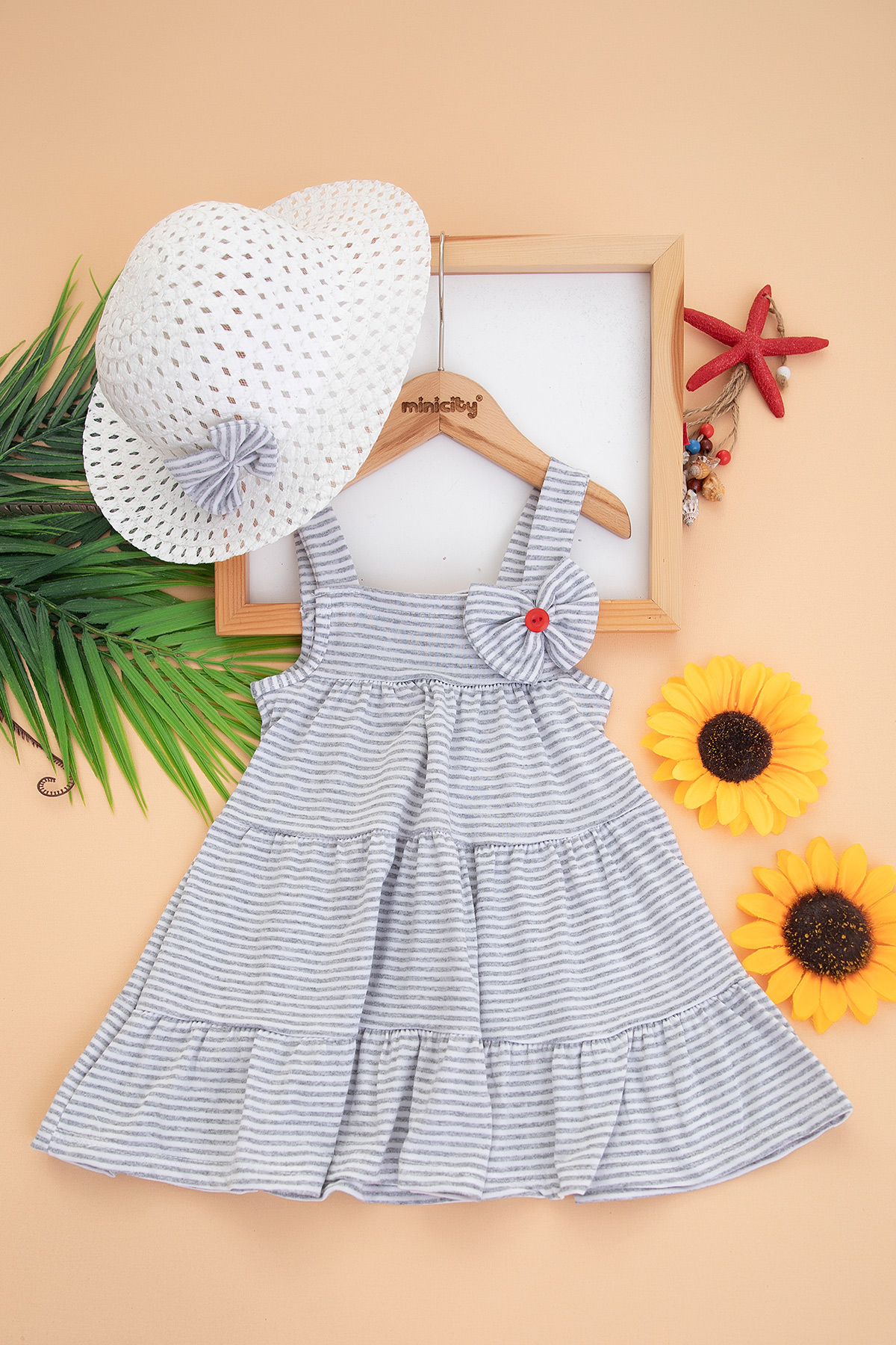 Kız Çocuk Çizgili Şapkalı Elbise - 10516 (2-6 Yaş)
