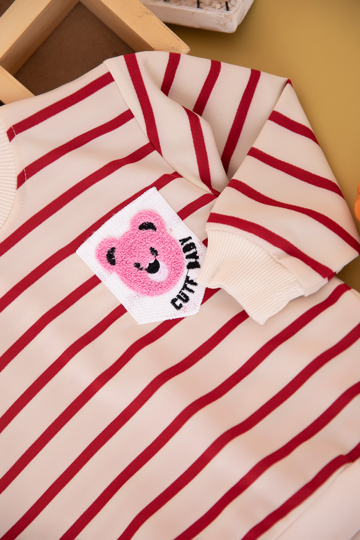 Kız Çocuk Çizgili Süzene Cute Baby Nakışlı Takım (2-5 Yaş)