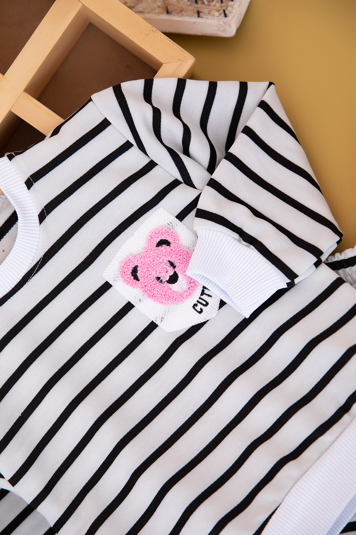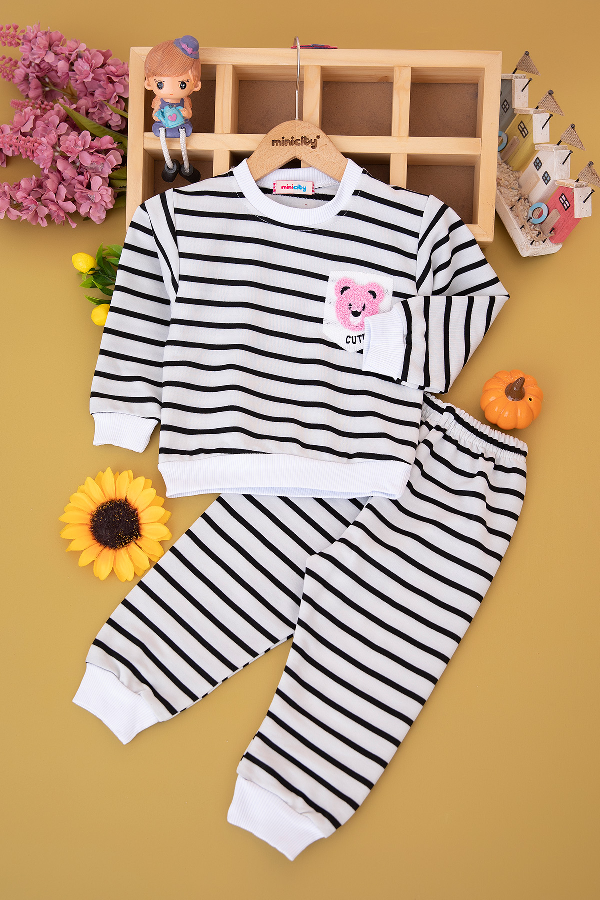 Kız Çocuk Çizgili Süzene Cute Baby Nakışlı Takım (2-5 Yaş)