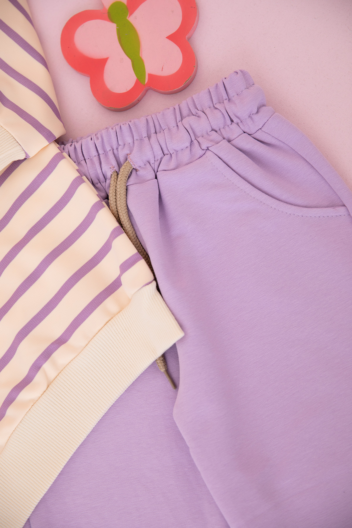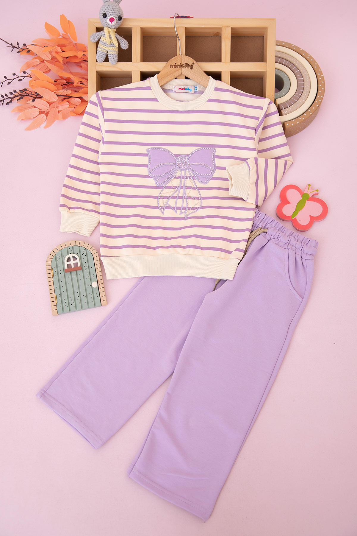 Kız Çocuk Çizgili Taşlı Kurdela Nakışlı Takım