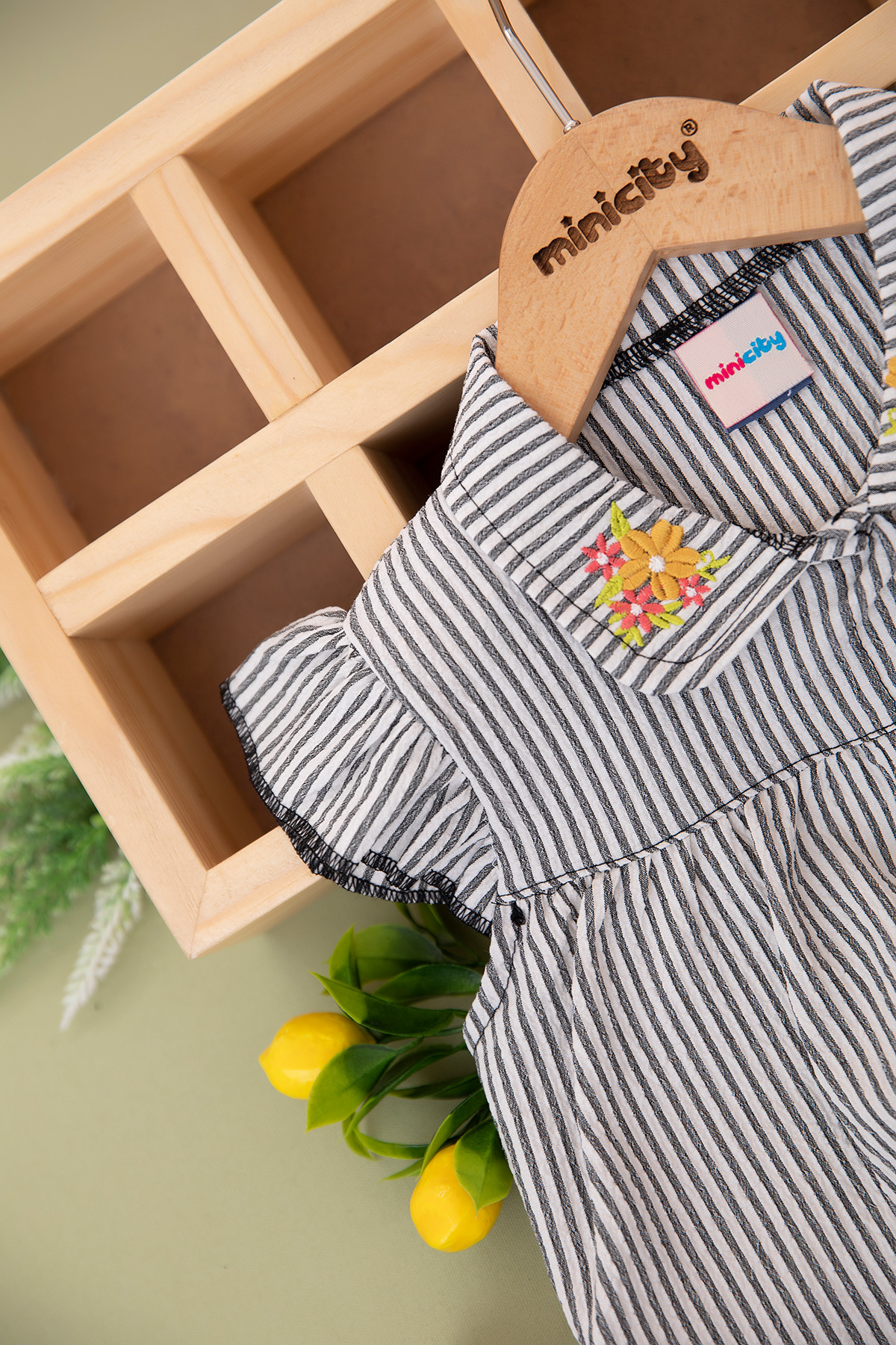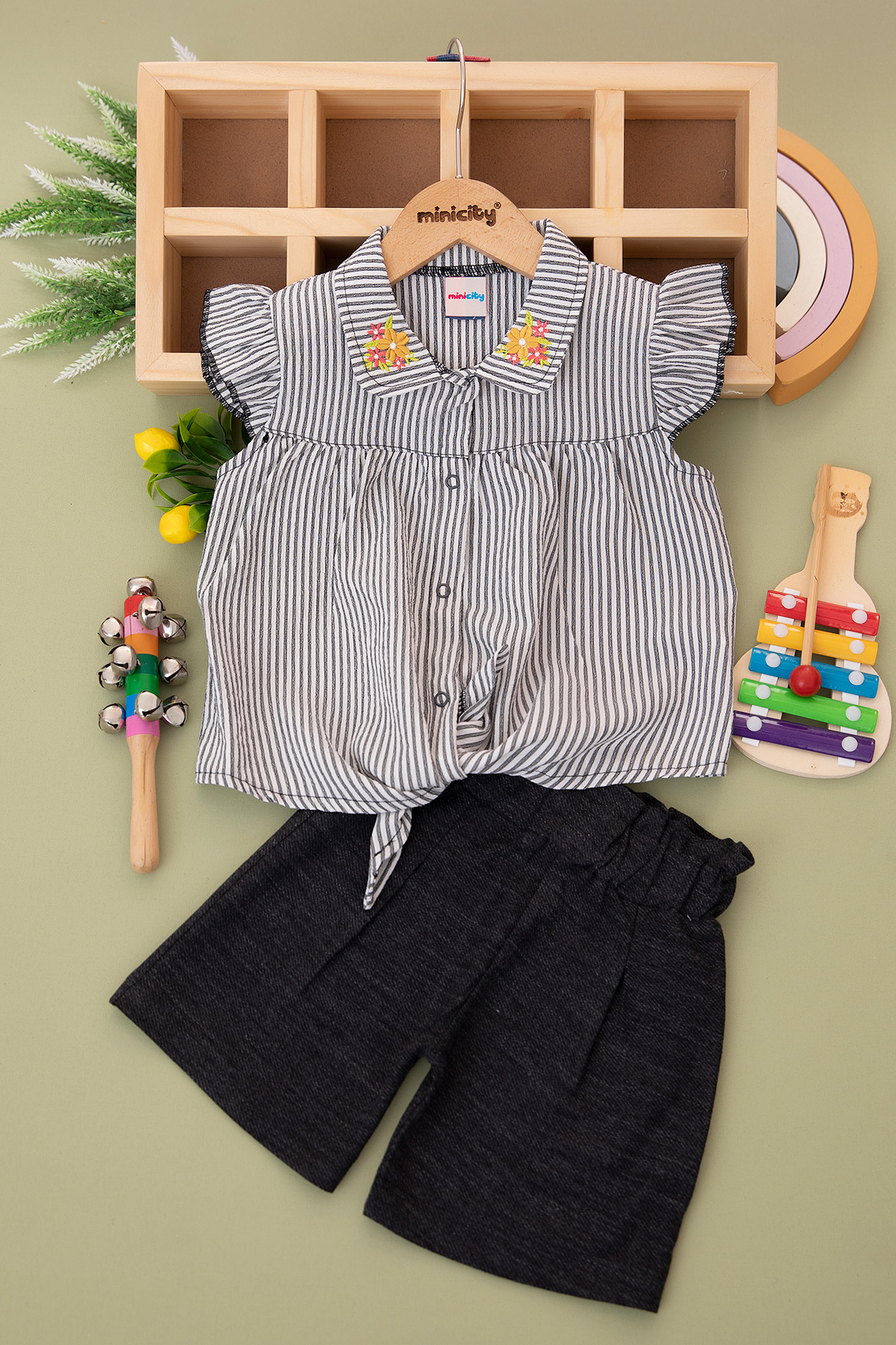 Kız Çocuk Çizgili Yaka Nakışlı Şortlu Takım - 24371 (7-10 Yaş)