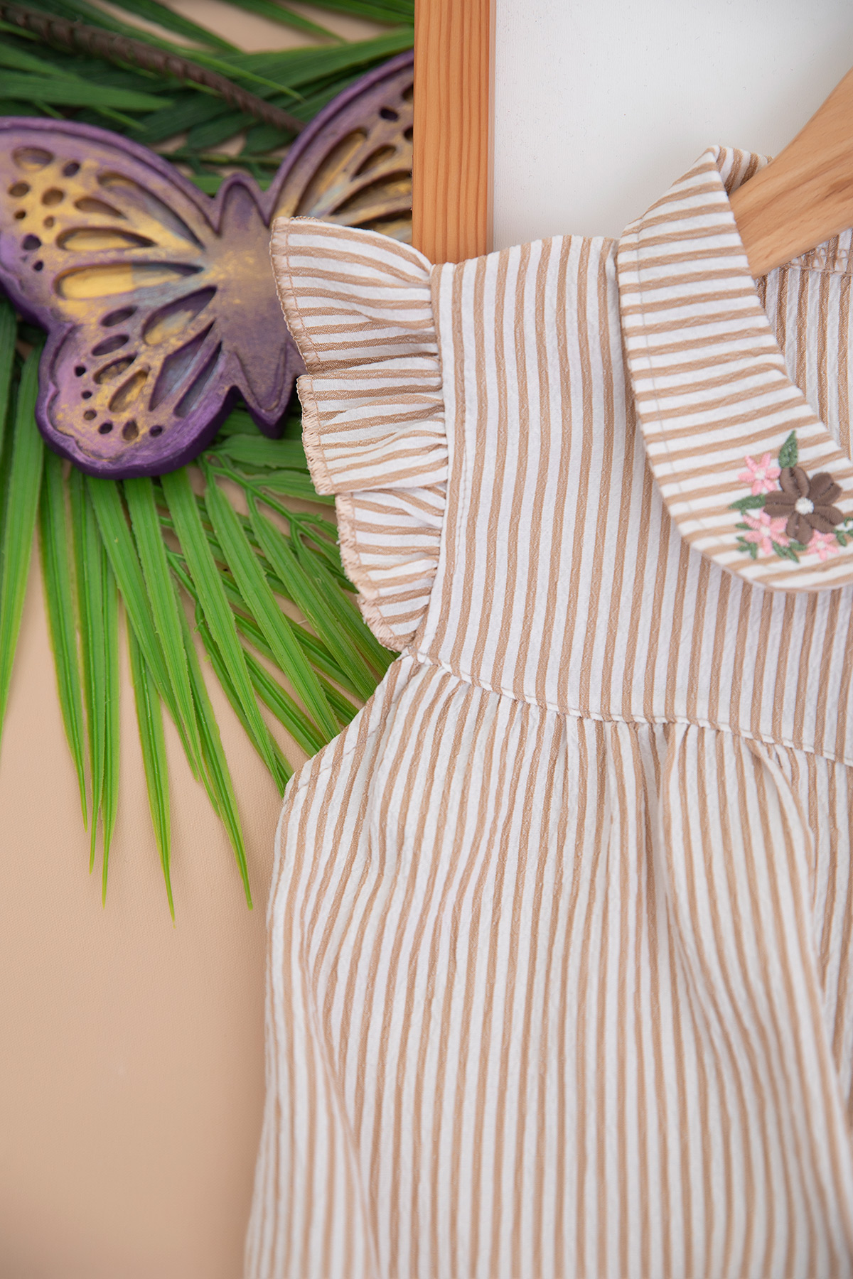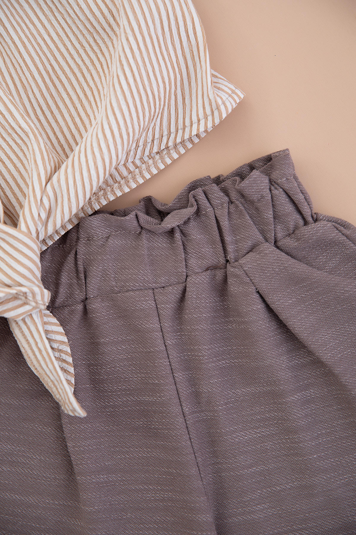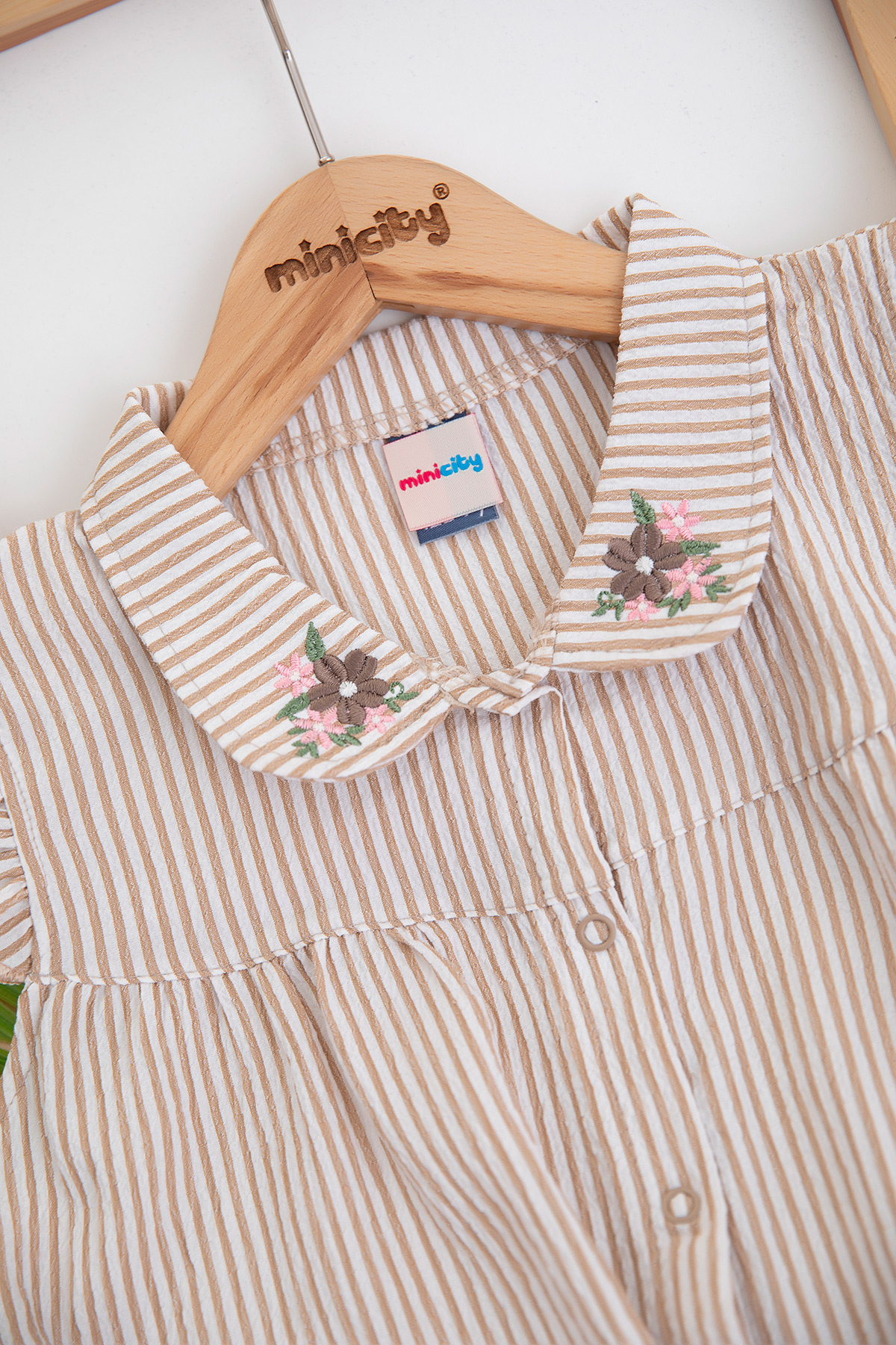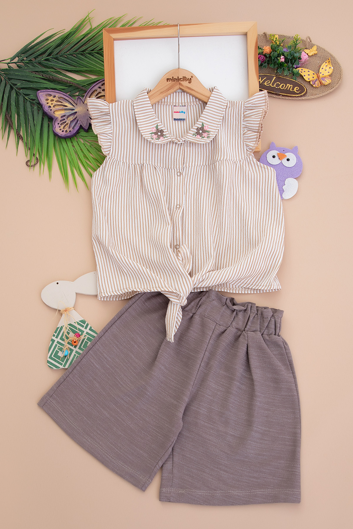 Kız Çocuk Çizgili Yaka Nakışlı Şortlu Takım - 24371 (7-10 Yaş)