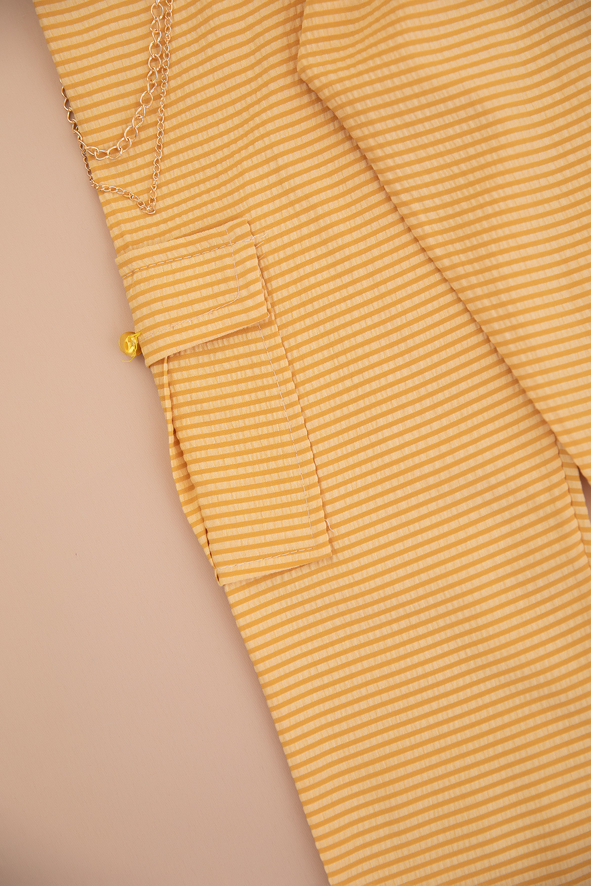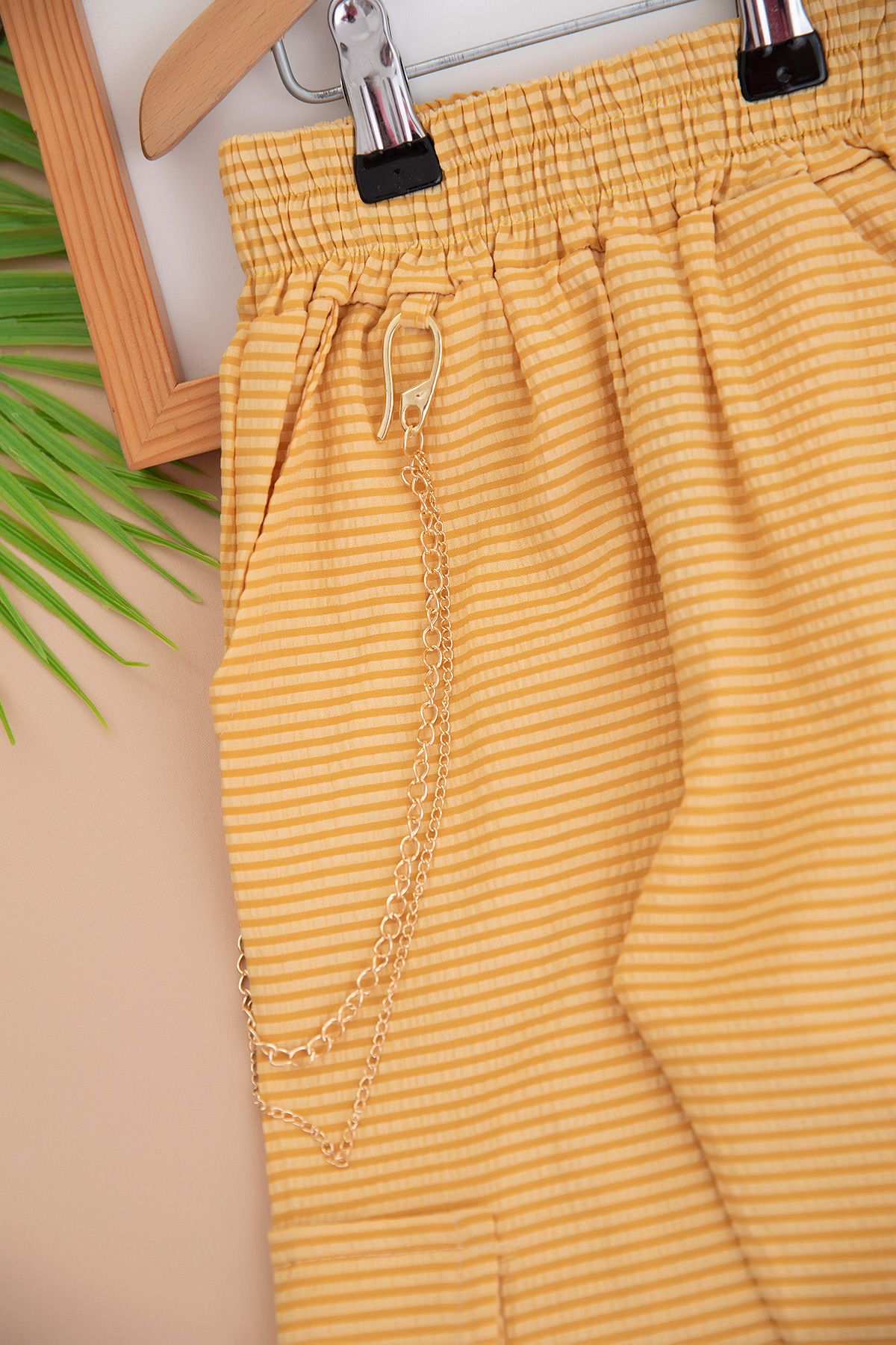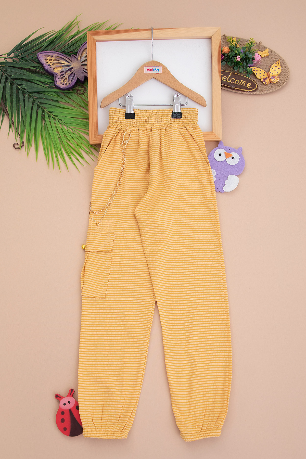 Kız Çocuk Çizgili Zincirli Komando Cepli Pantolon (9-12 Yaş)