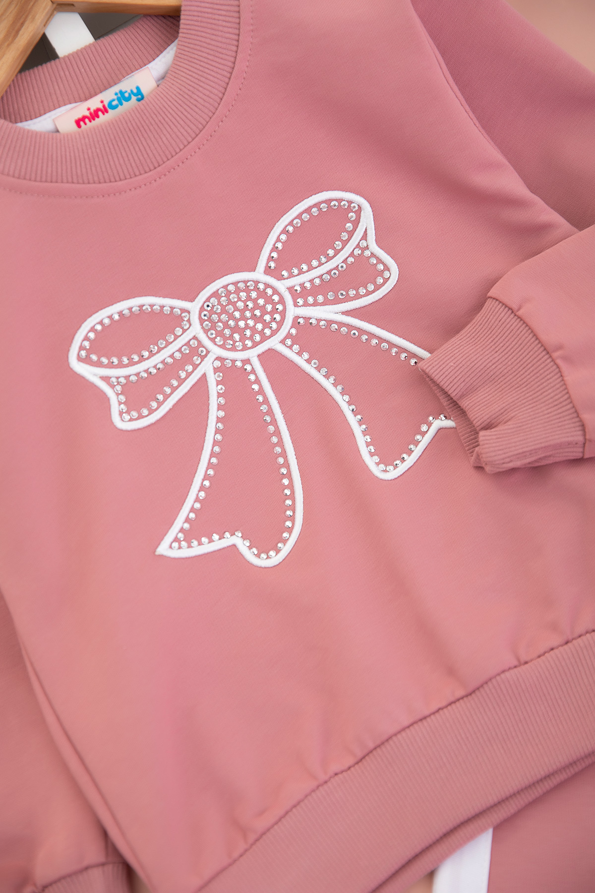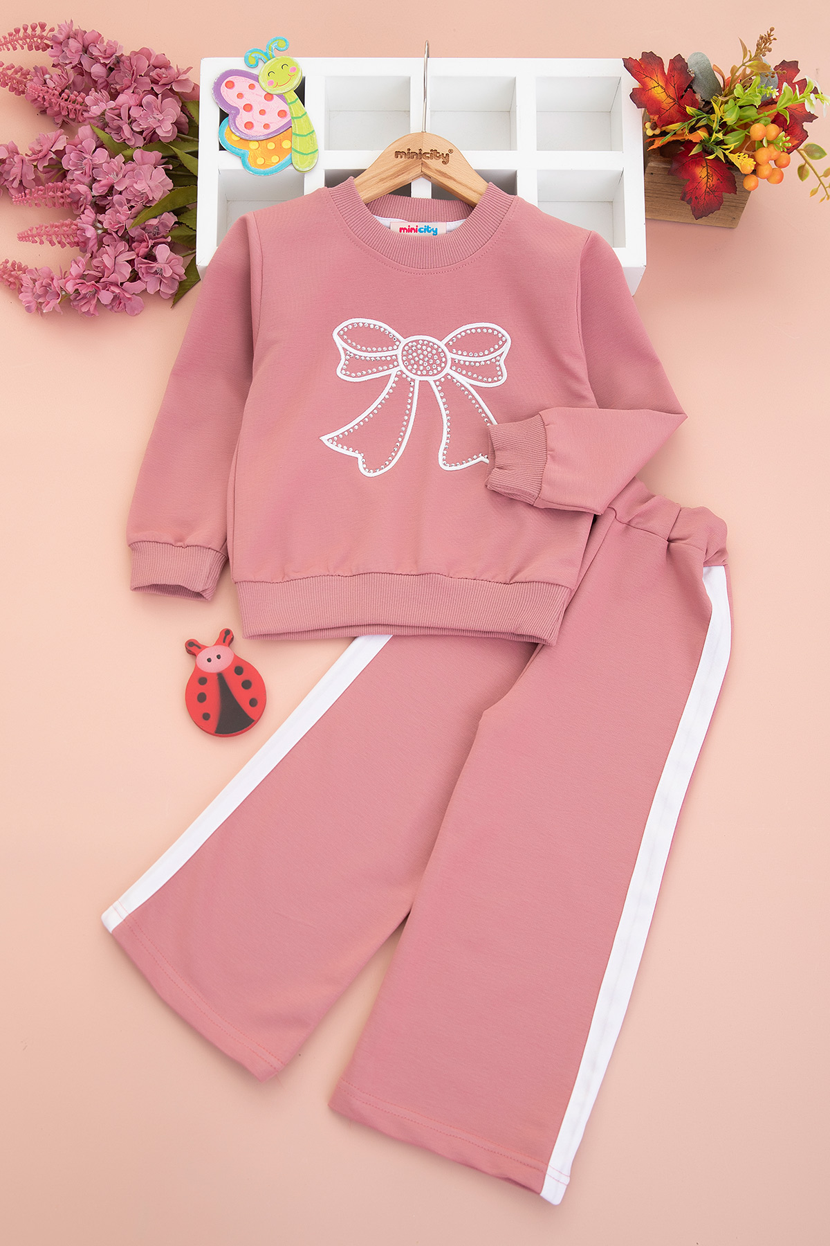 Kız Çocuk Çok Taşlı Fiyonk Nakışlı Mevsimlik Takım (3-10 Yaş)