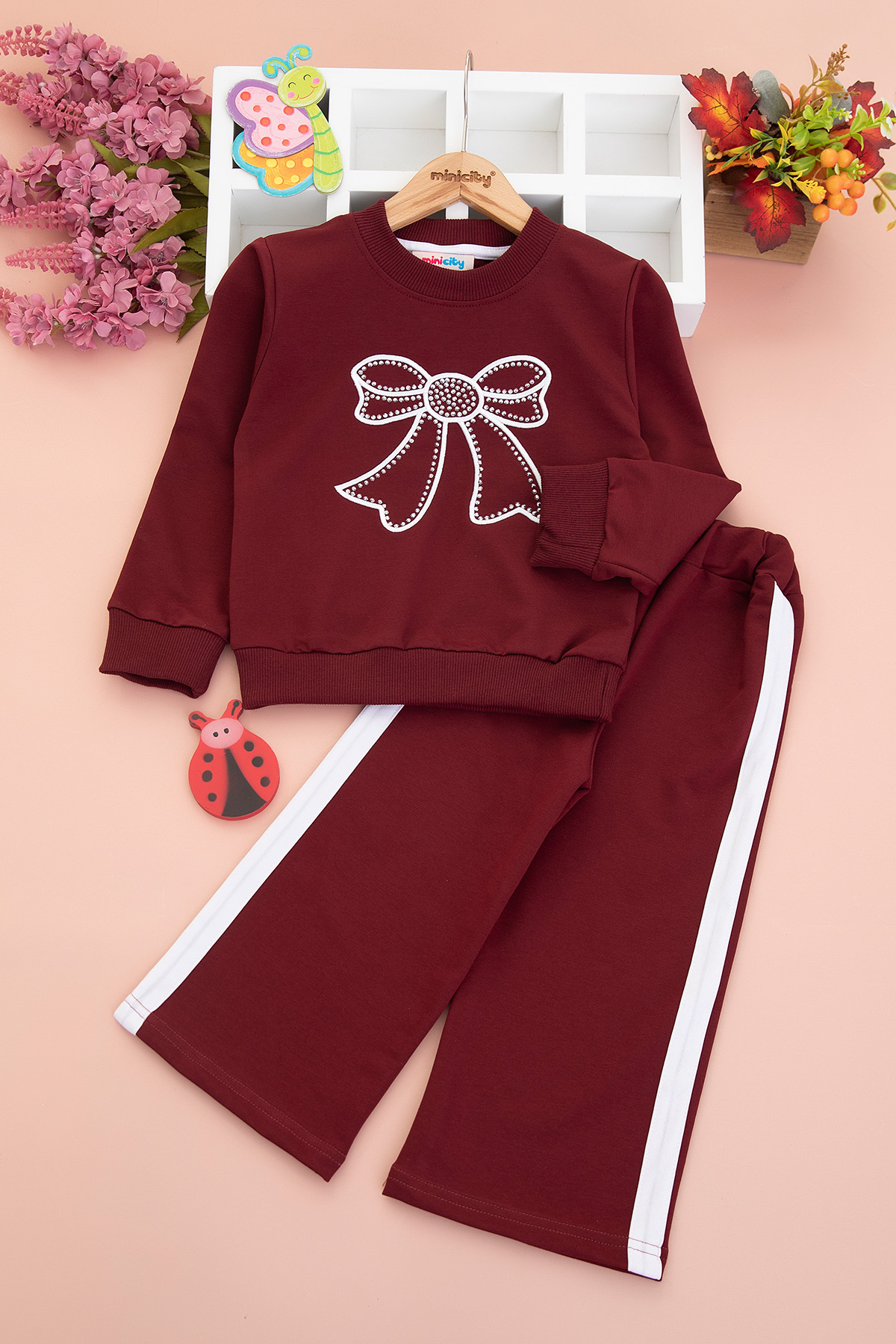 Kız Çocuk Çok Taşlı Fiyonk Nakışlı Mevsimlik Takım (3-10 Yaş)