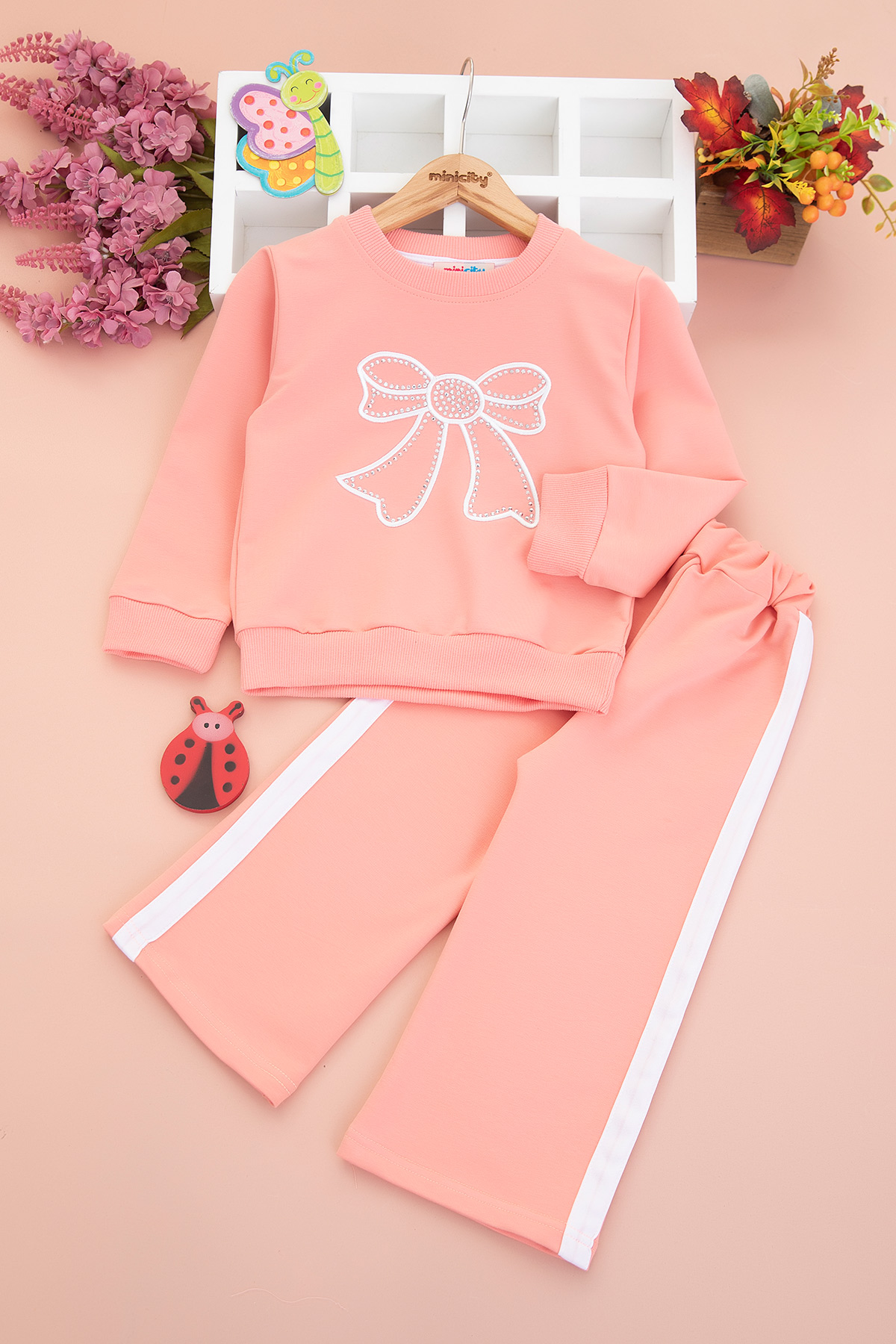 Kız Çocuk Çok Taşlı Fiyonk Nakışlı Mevsimlik Takım (3-10 Yaş)