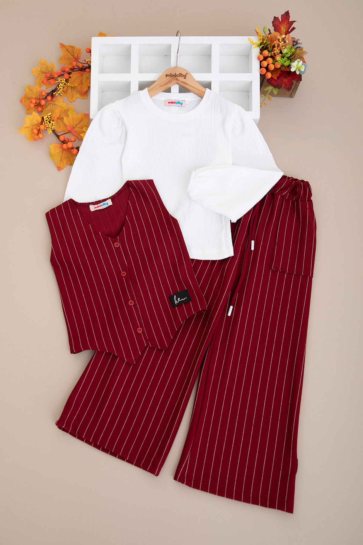 Kız Çocuk Cool Çizgili Yelekli Takım - 6630-1 (7-16 Yaş)