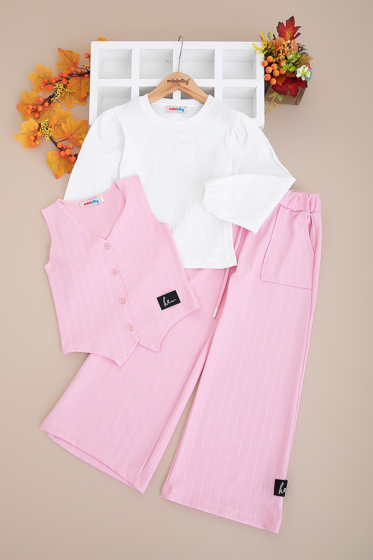 Kız Çocuk Cool Çizgili Yelekli Takım - 6630-1 (7-16 Yaş)