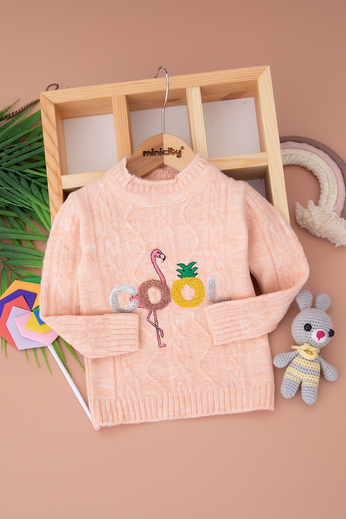 Kız Çocuk Cool Nakışlı Kazak - 1026 - 2050