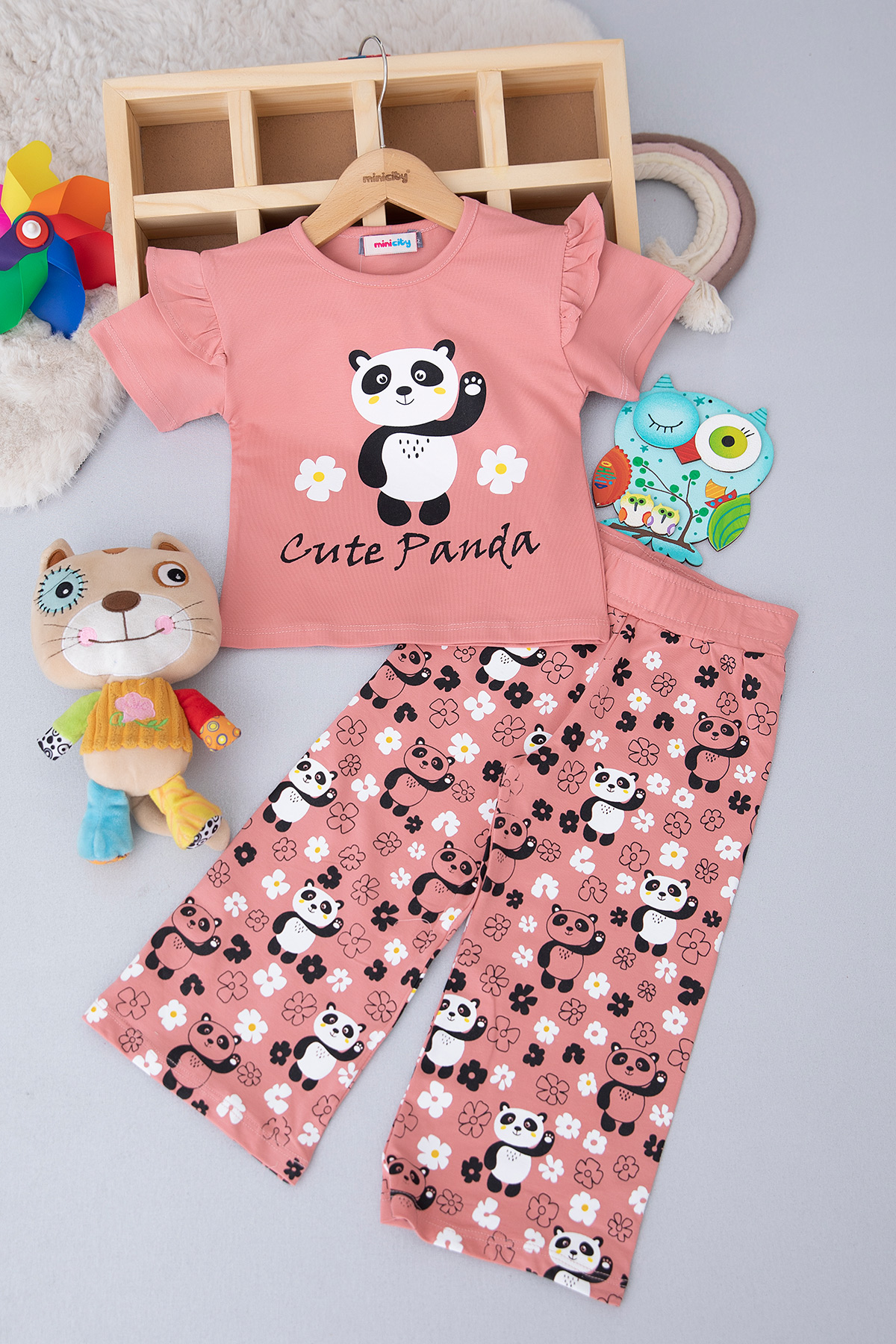 Kız Çocuk Cute Panda Baskılı Takım - 3384 (2-5 Yaş)