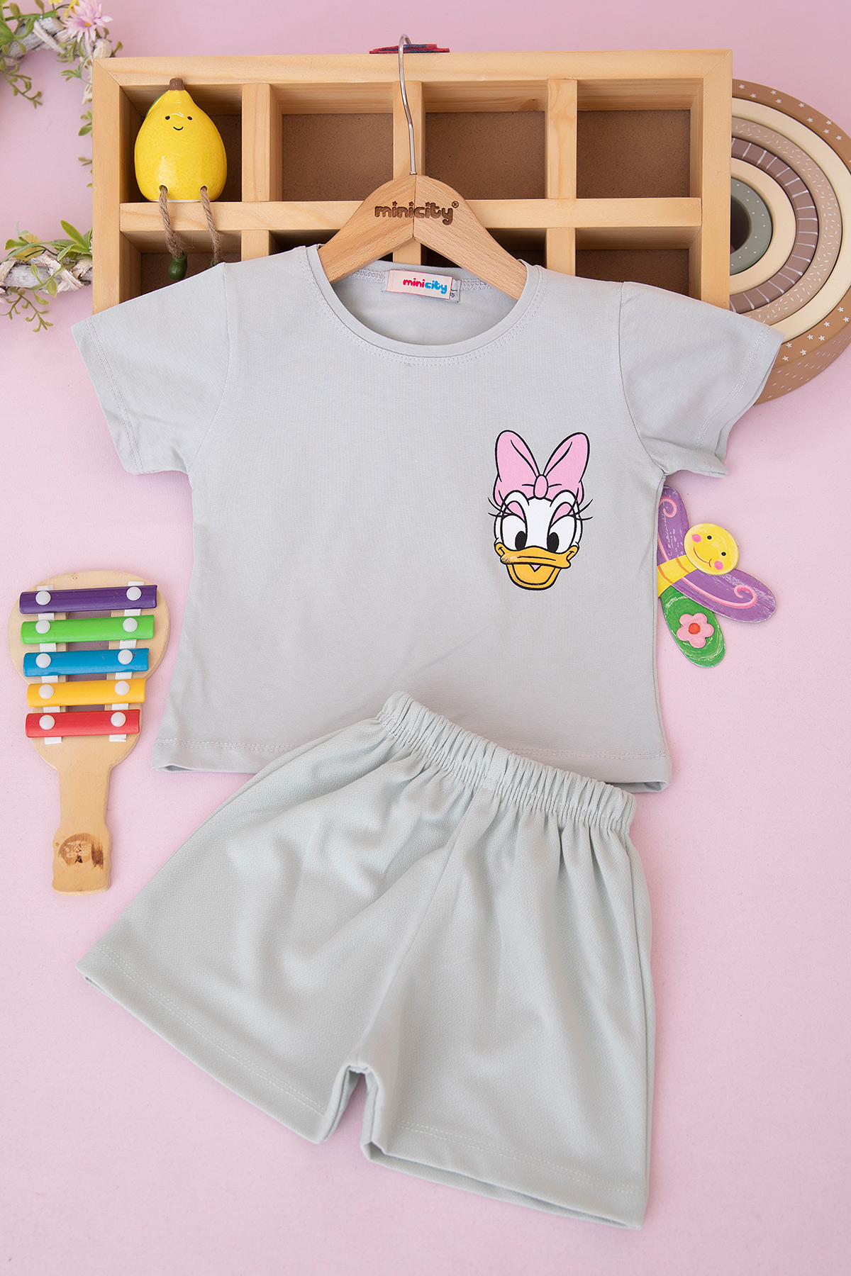 Kız Çocuk Daisy Duck Baskılı Şortlu Takım - 80250 (2-9 Yaş)