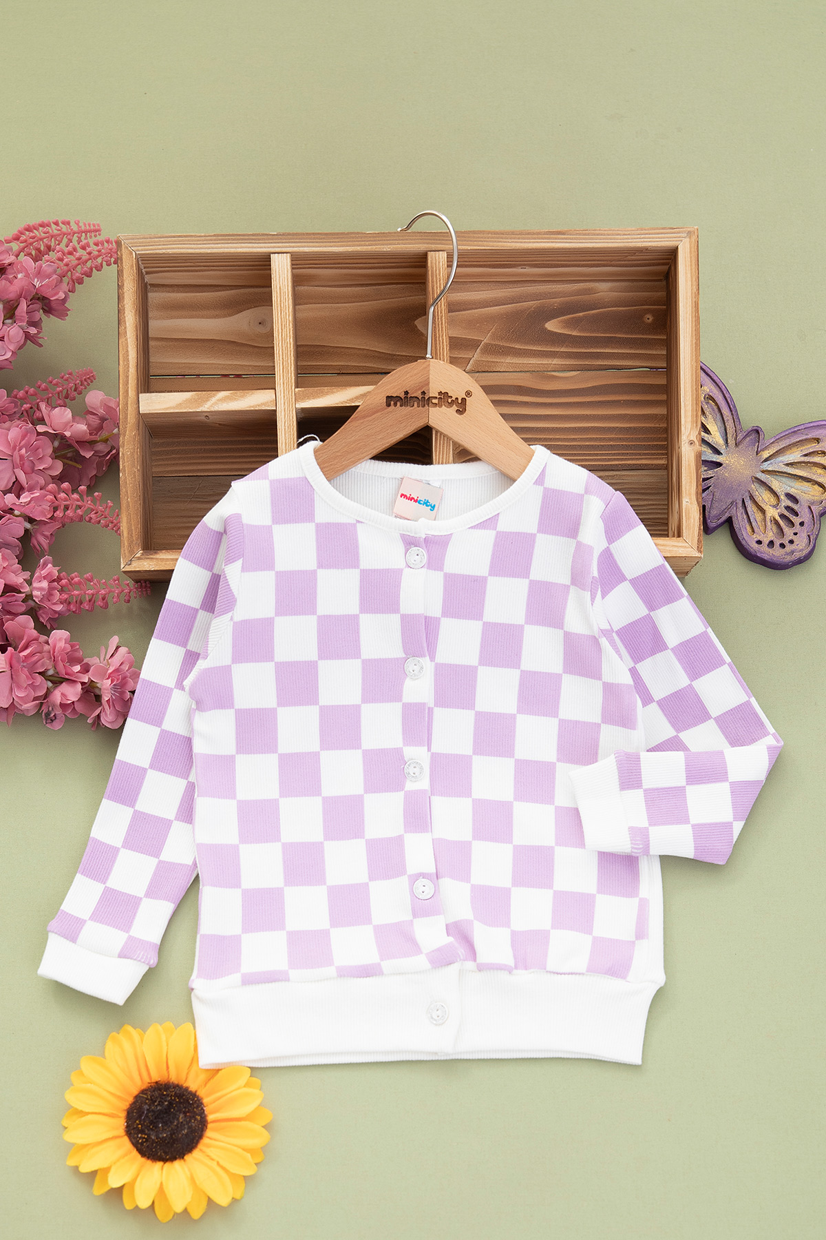 Kız Çocuk Dama Baskılı Kaşkorse Hırka (2-8 Yaş)
