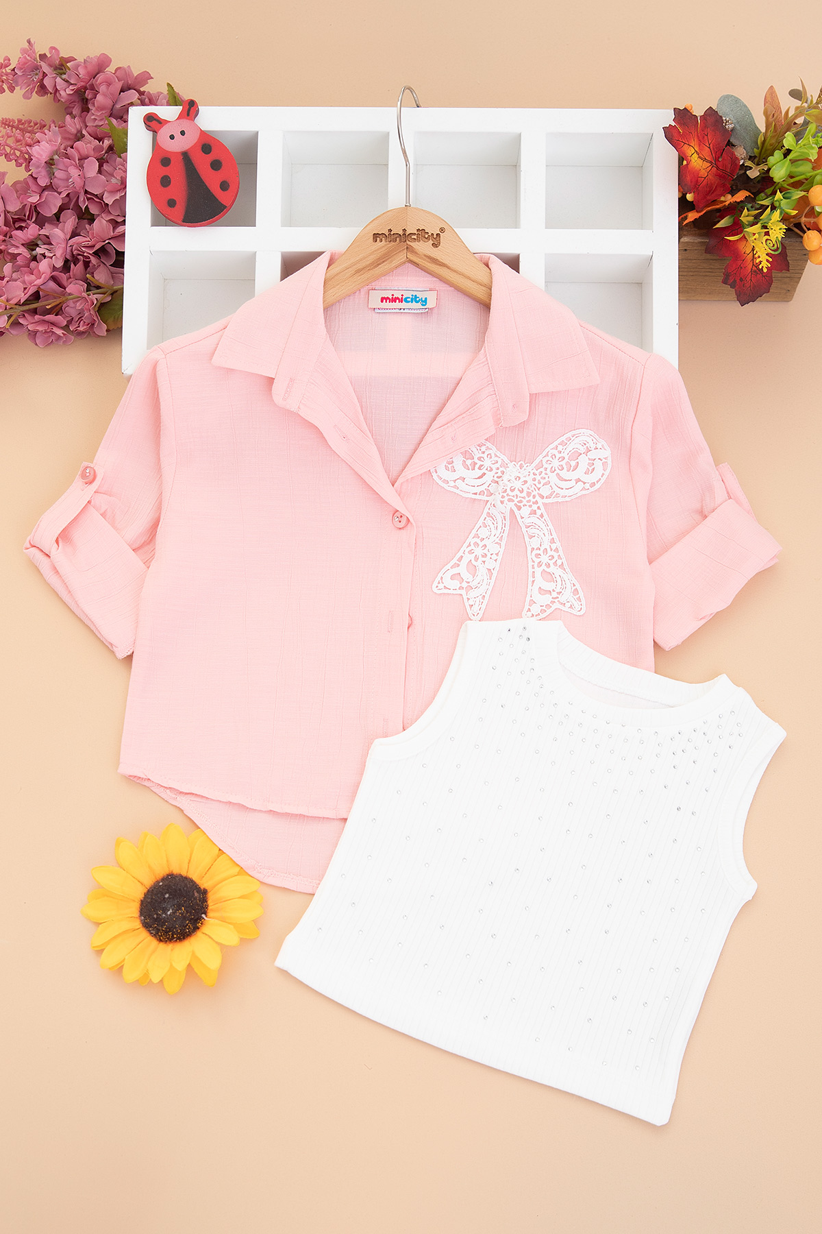Kız Çocuk Dantel Fiyonklu Badi Gömlek - 0584 (5-8 Yaş)