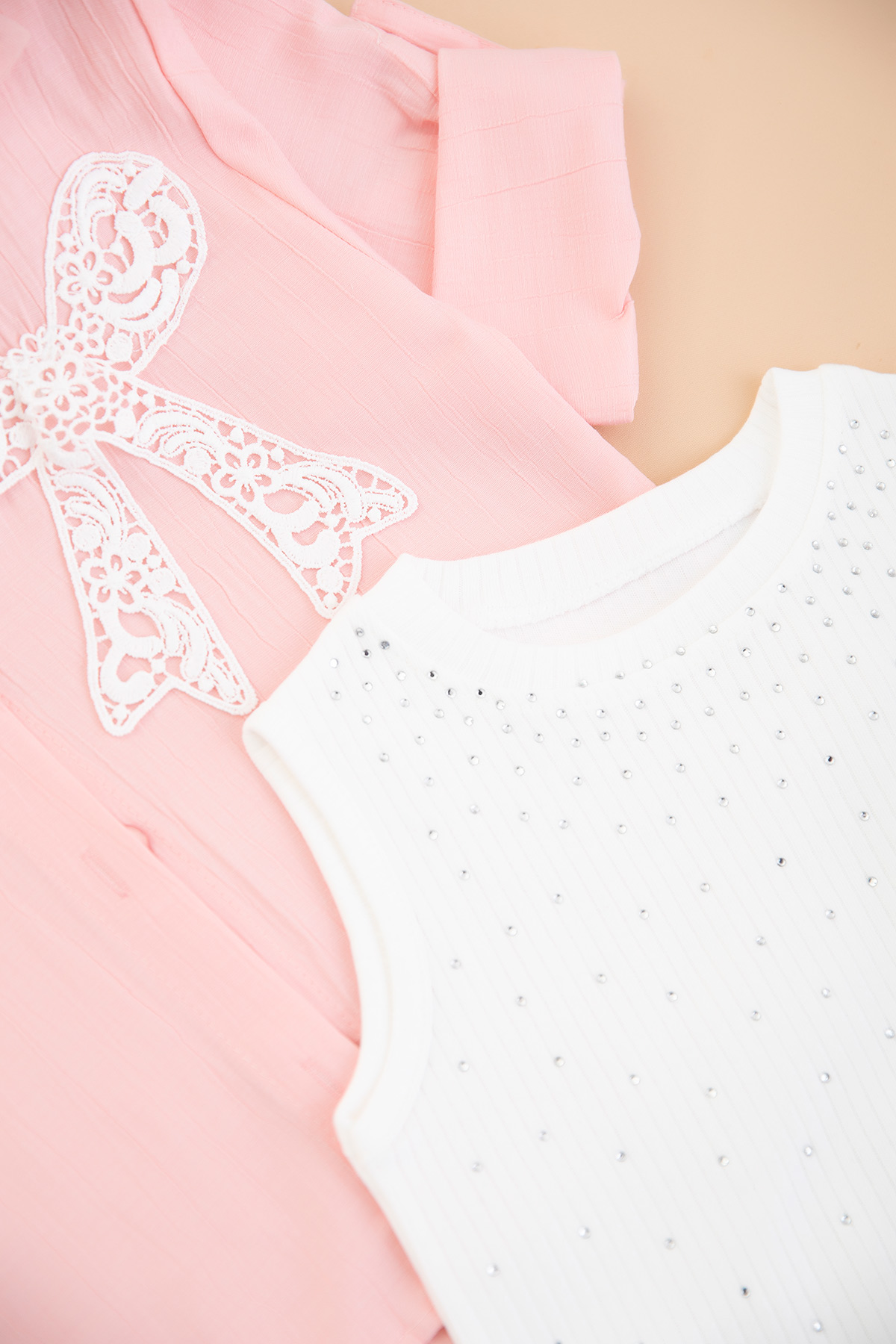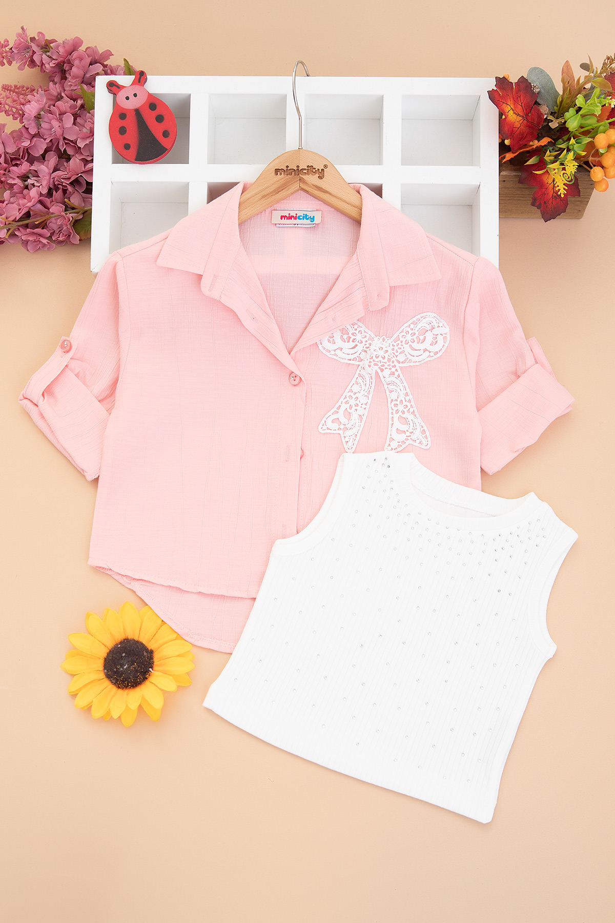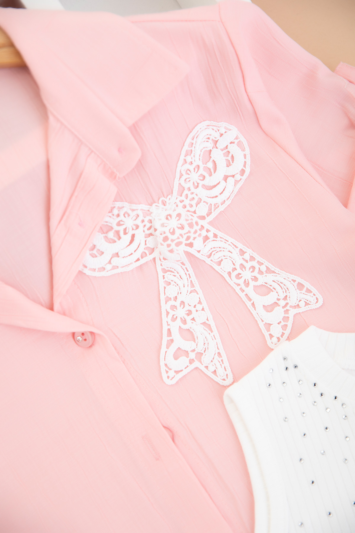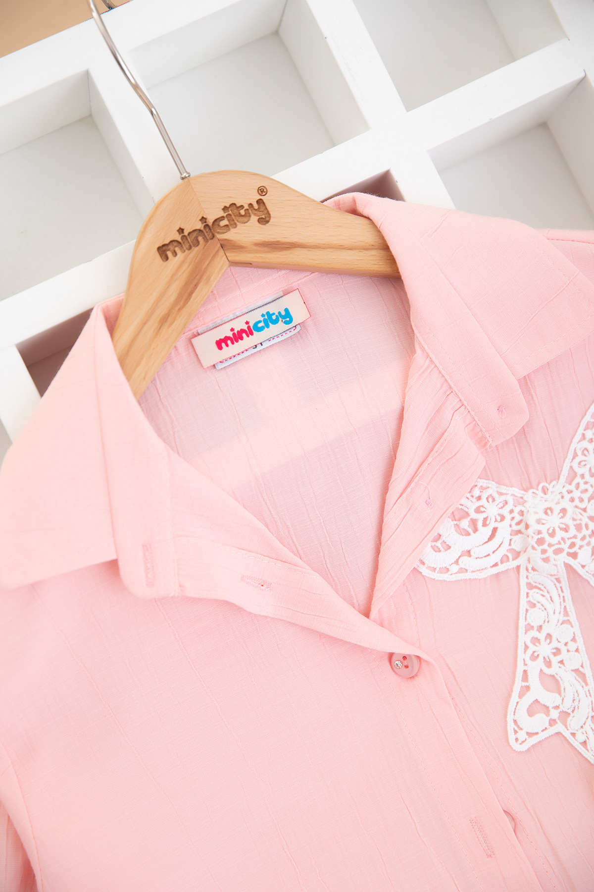Kız Çocuk Dantel Fiyonklu Badi Gömlek - 0585 (9-12 Yaş)