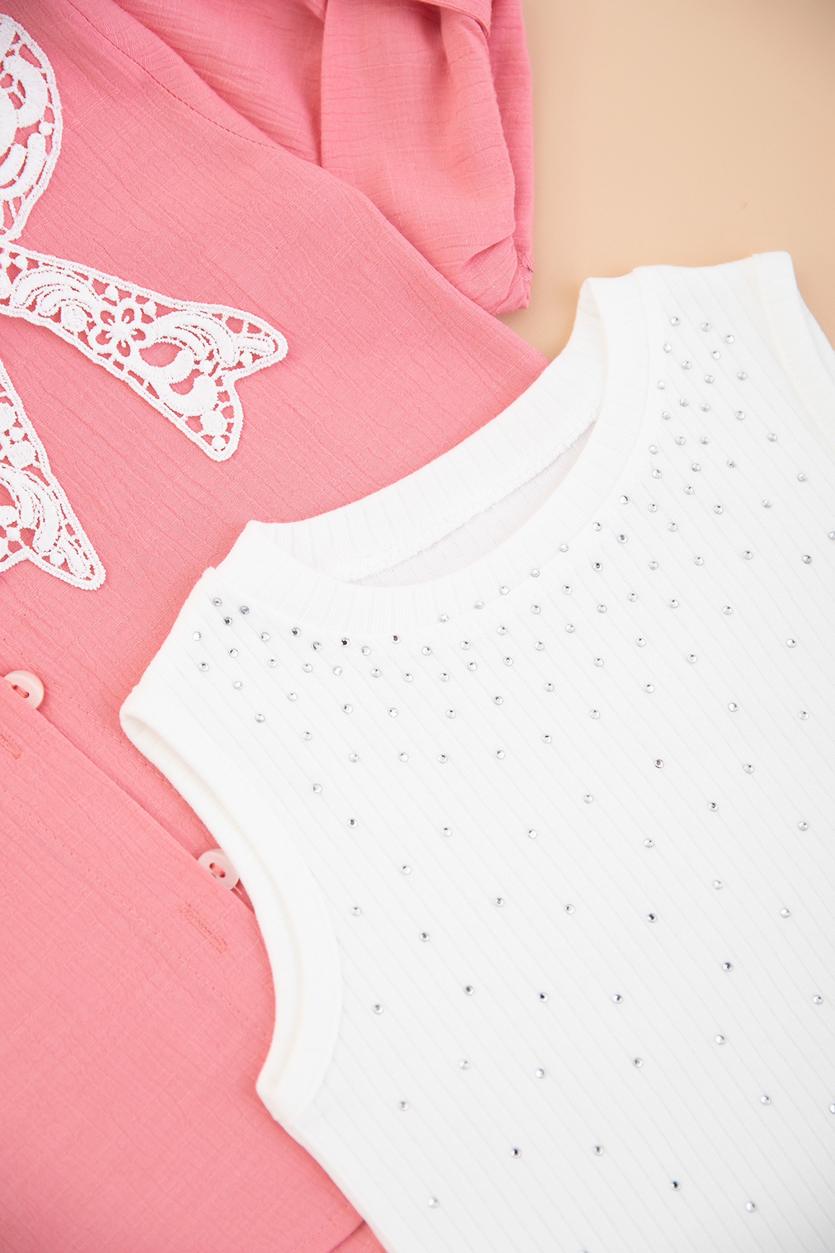 Kız Çocuk Dantel Fiyonklu Badi Gömlek - 0585 (9-12 Yaş)