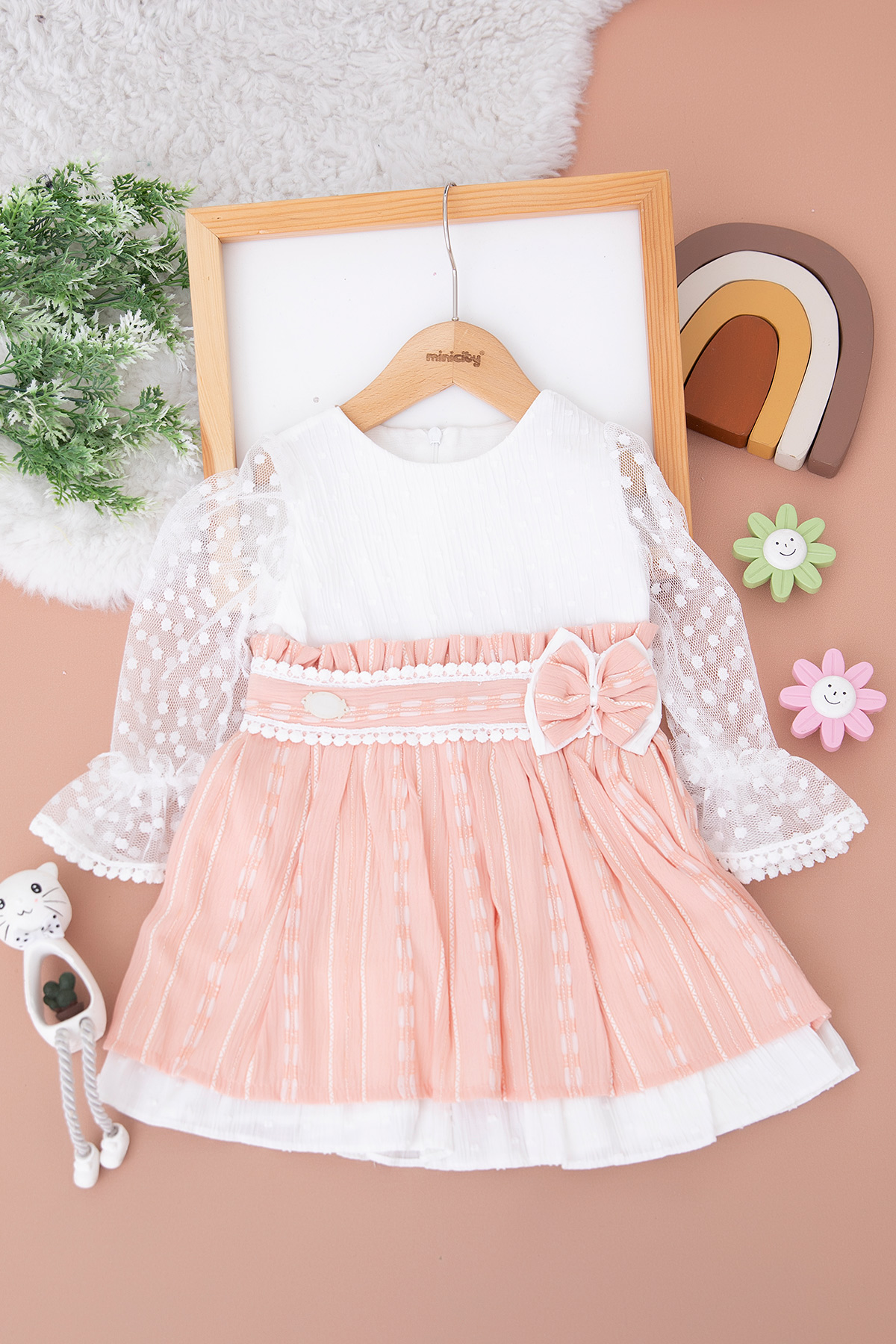 Kız Çocuk Dantel Kollu Elbise - 2082 (1-4 Yaş)