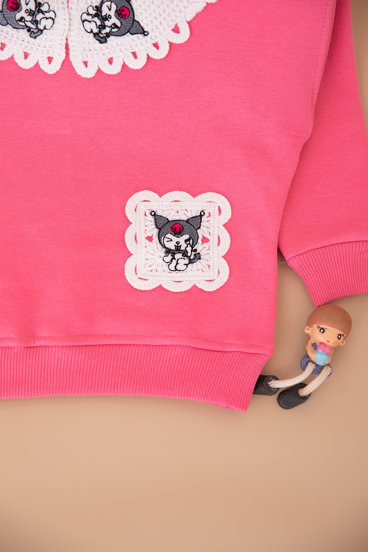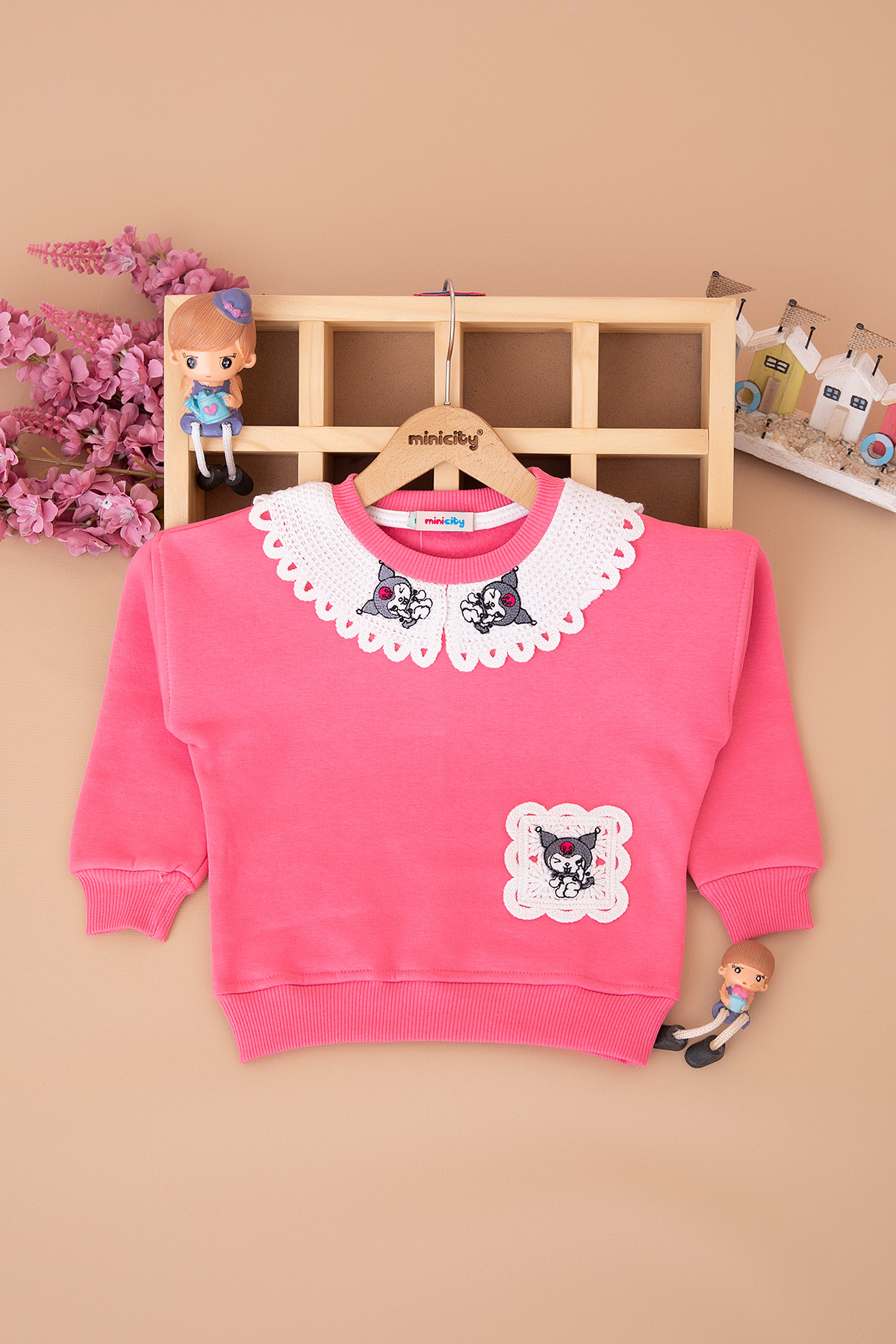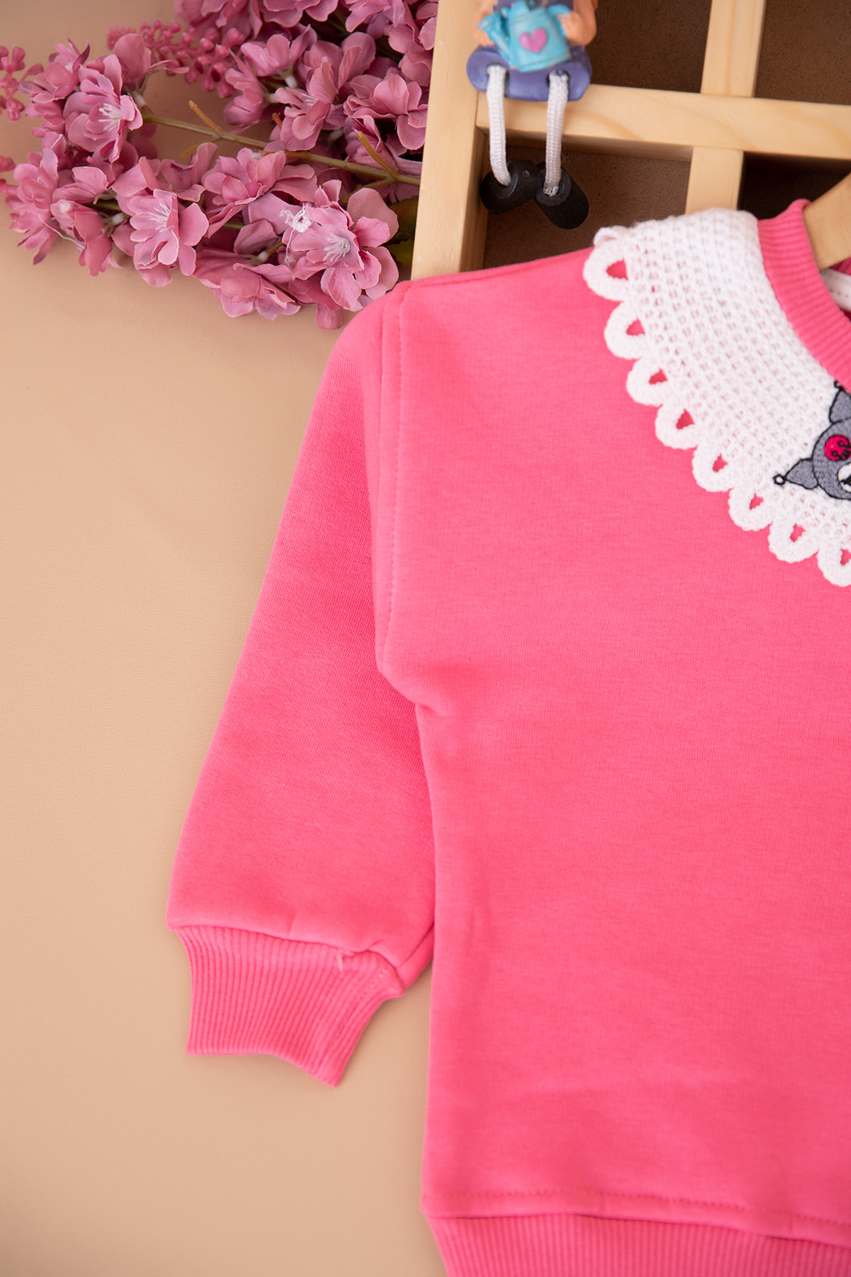 Kız Çocuk Dantel Kromi Üçip Sweat - 4055 (3-7 Yaş)