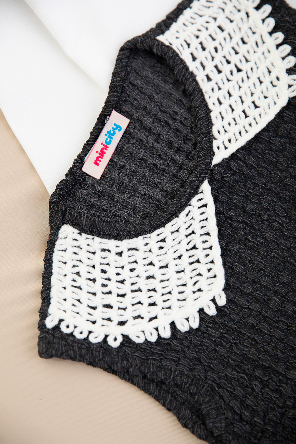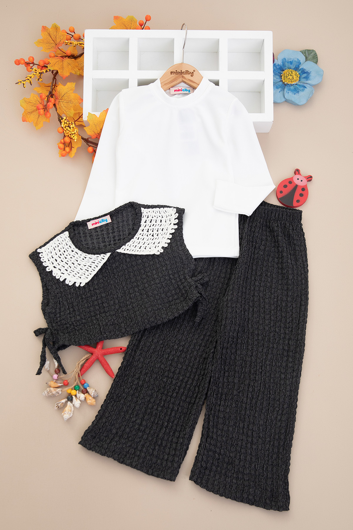 Kız Çocuk Dantel Yakalı Fiyonklu Takım - 5098 (3-10 Yaş)