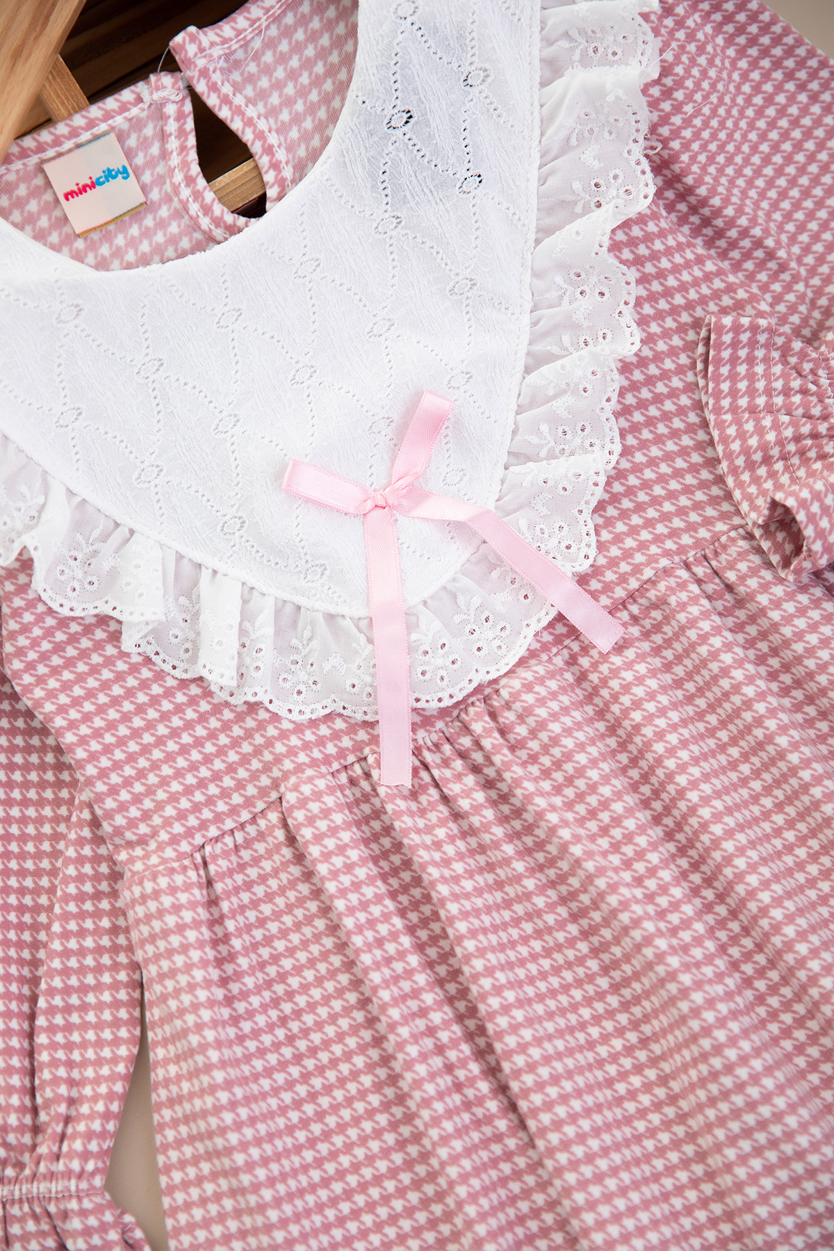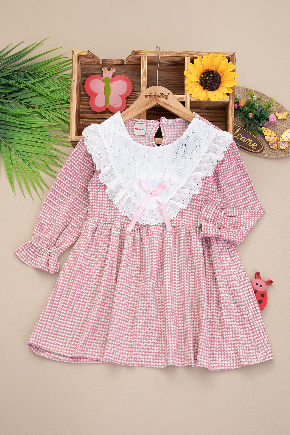 Kız Çocuk Dantelli Fiyonklu Elbise - 12570 (4-8 Yaş)