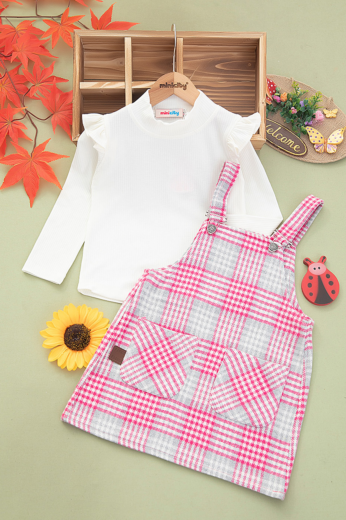 Kız Çocuk Deri Arma Ekose Salopet - 1523 (4-7 Yaş)