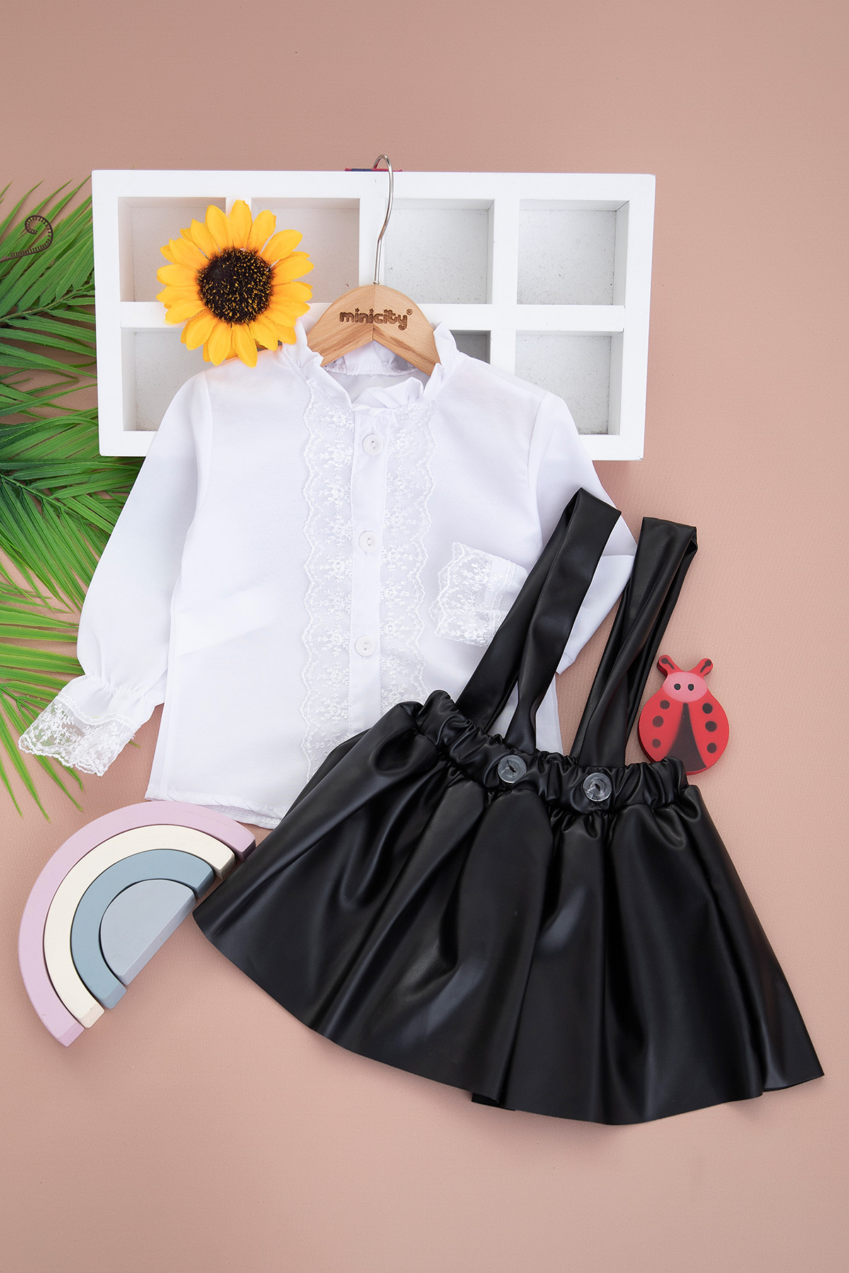Kız Çocuk Deri Etek Gömlekli Takım - 2174 (2-4 Yaş)