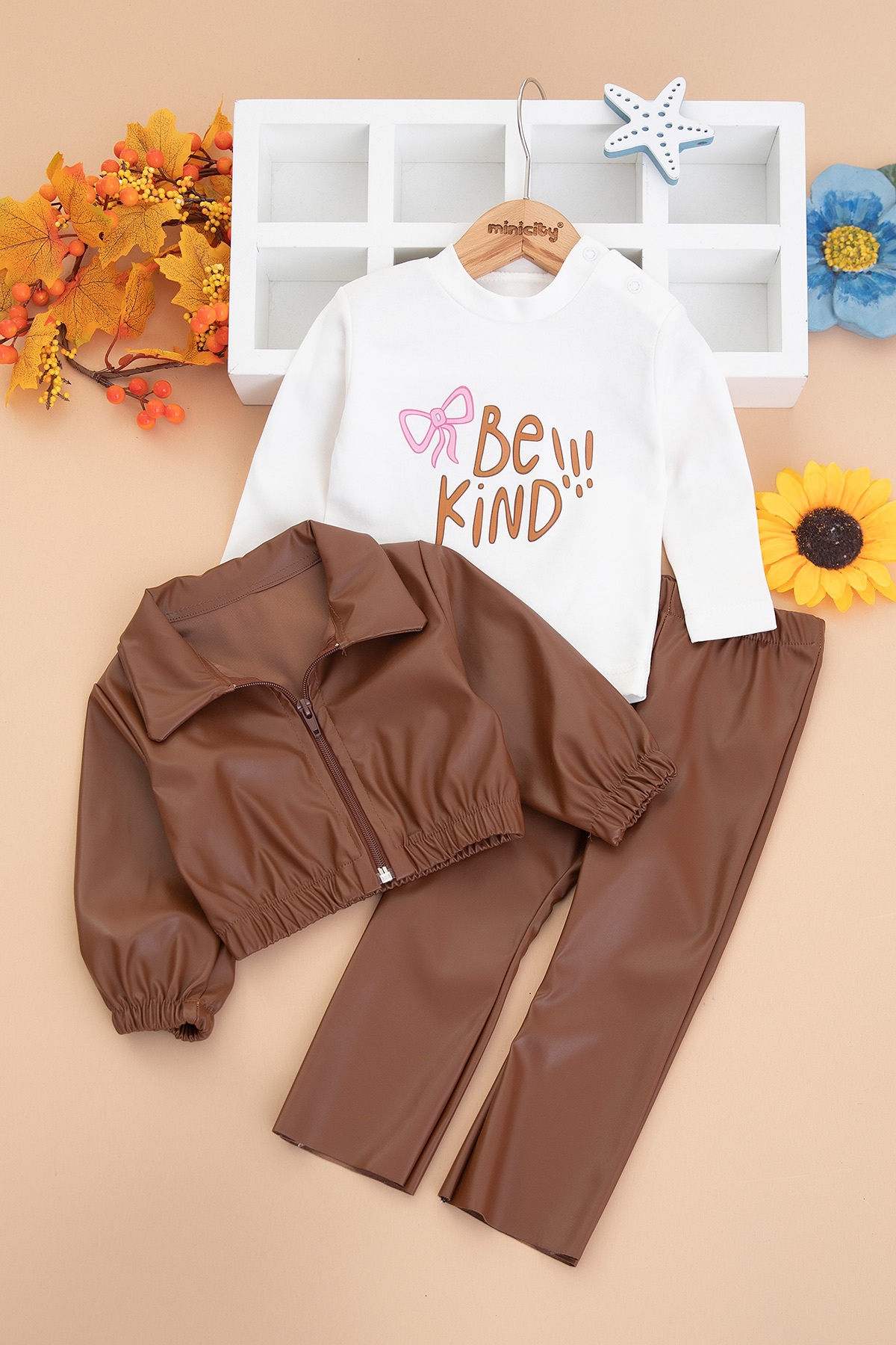 Kız Çocuk Deri Mont Pantolon Takım - 1752 (1-3 Yaş)