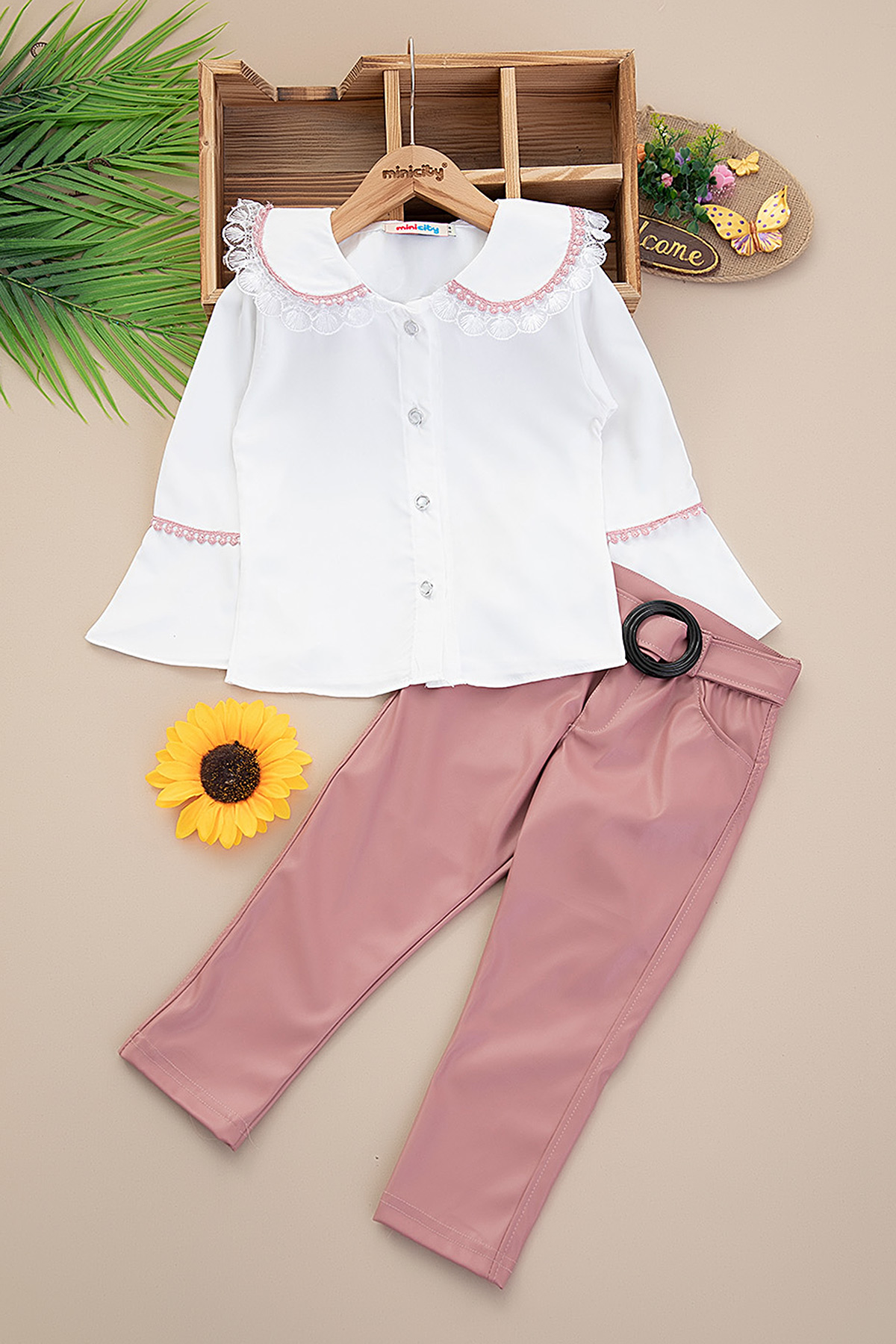 Kız Çocuk Deri Pantolon Gömlek Takım - 7152 (3-6 Yaş)