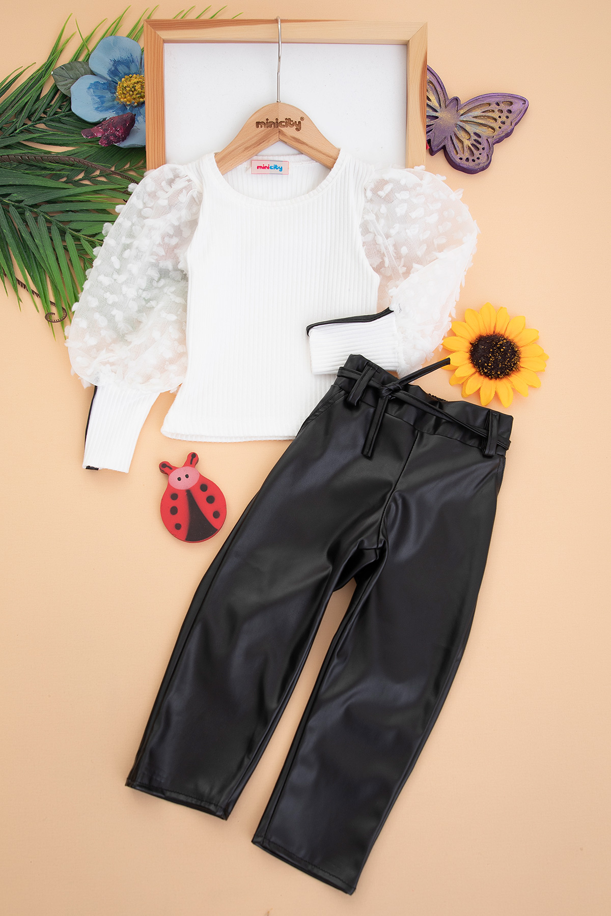 Kız Çocuk Deri Pantolunlu İkili Takım - 760 (6-9 Yaş)