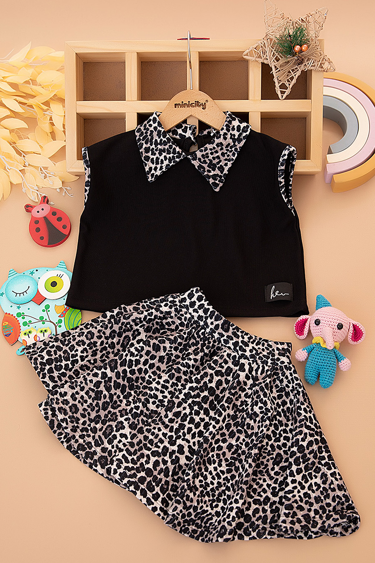 Kız Çocuk Desenli Etekli Takım - 5568 (3-12 Yaş)