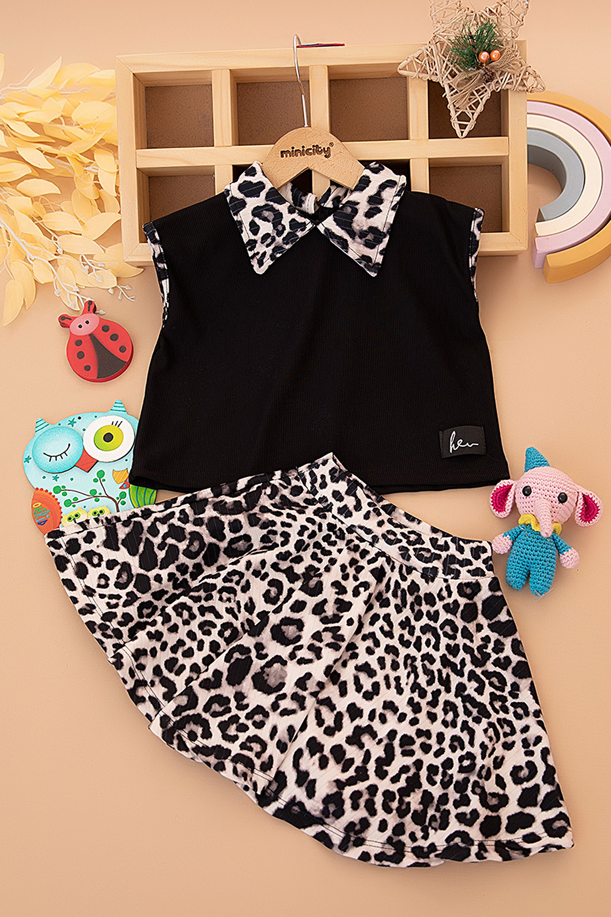 Kız Çocuk Desenli Etekli Takım - 5568 (3-12 Yaş)