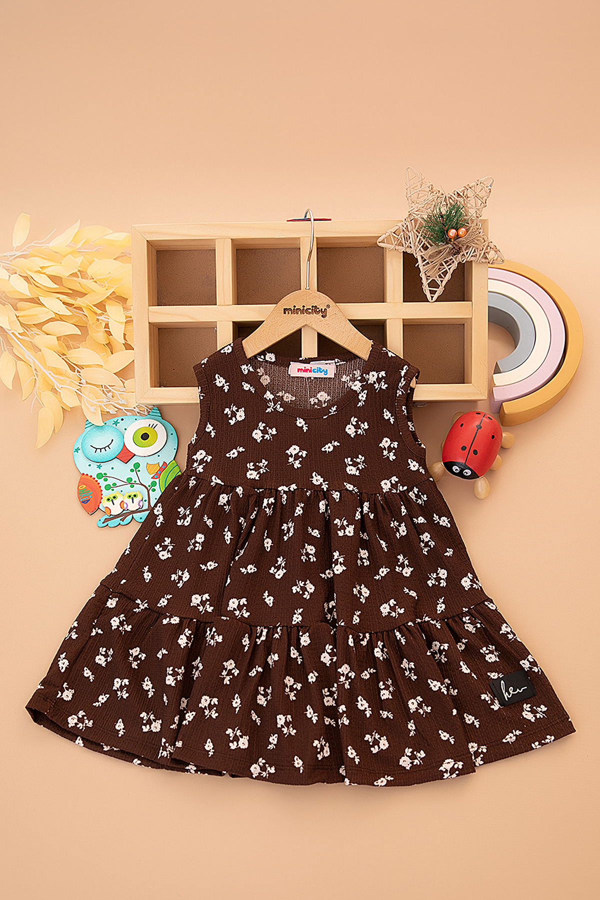 Kız Çocuk Desenli Papağan Askılı Elbise - 2777B (3-12 Yaş)