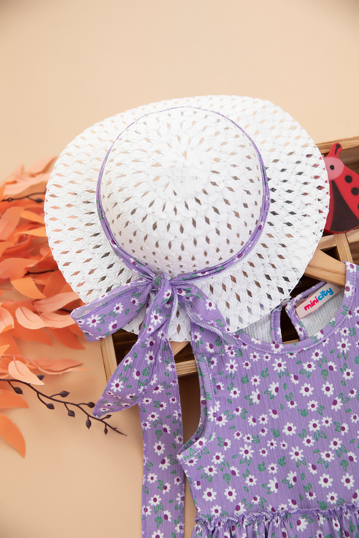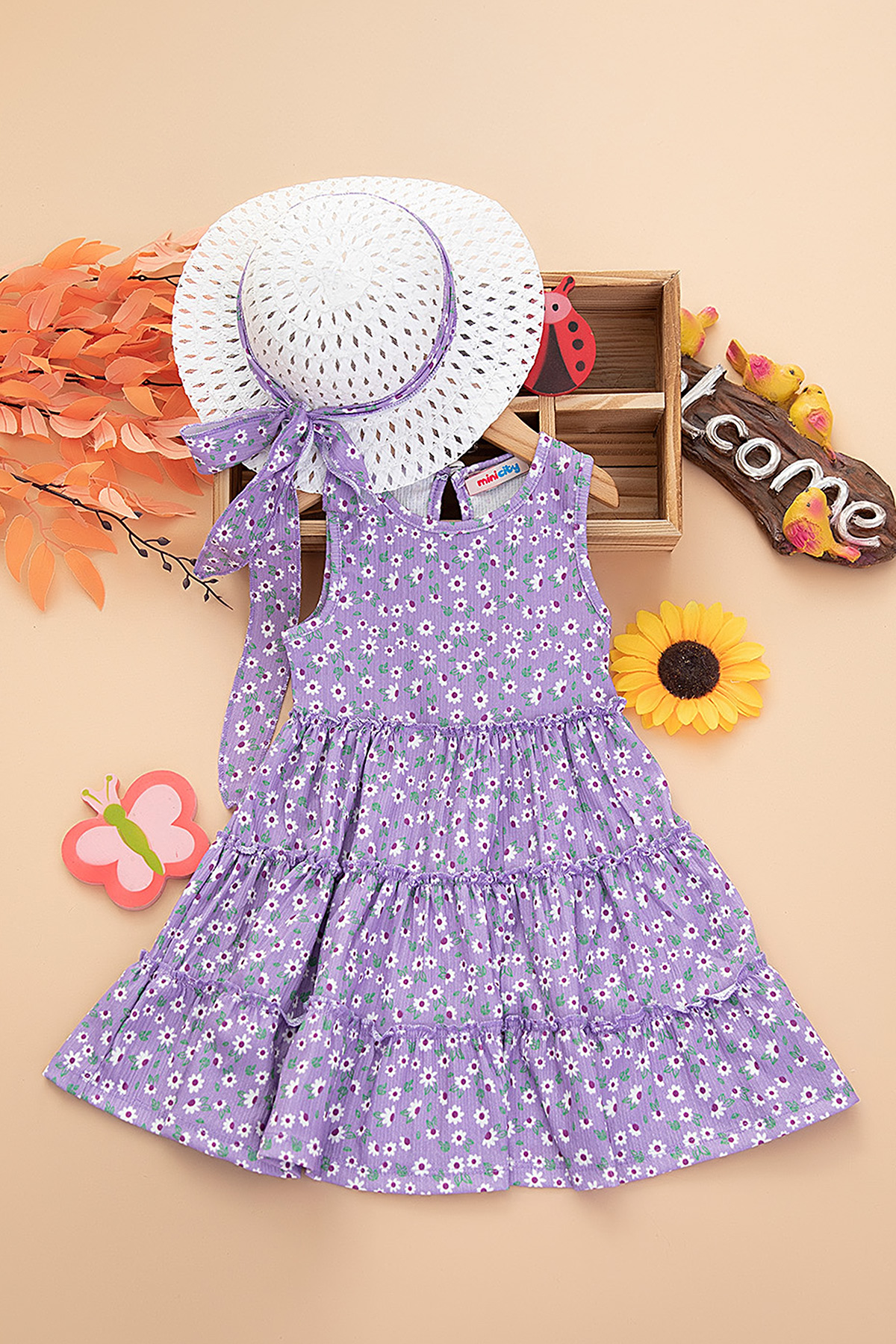 Kız Çocuk Desenli Şapkalı Elbise - 522226 (3-7 Yaş)