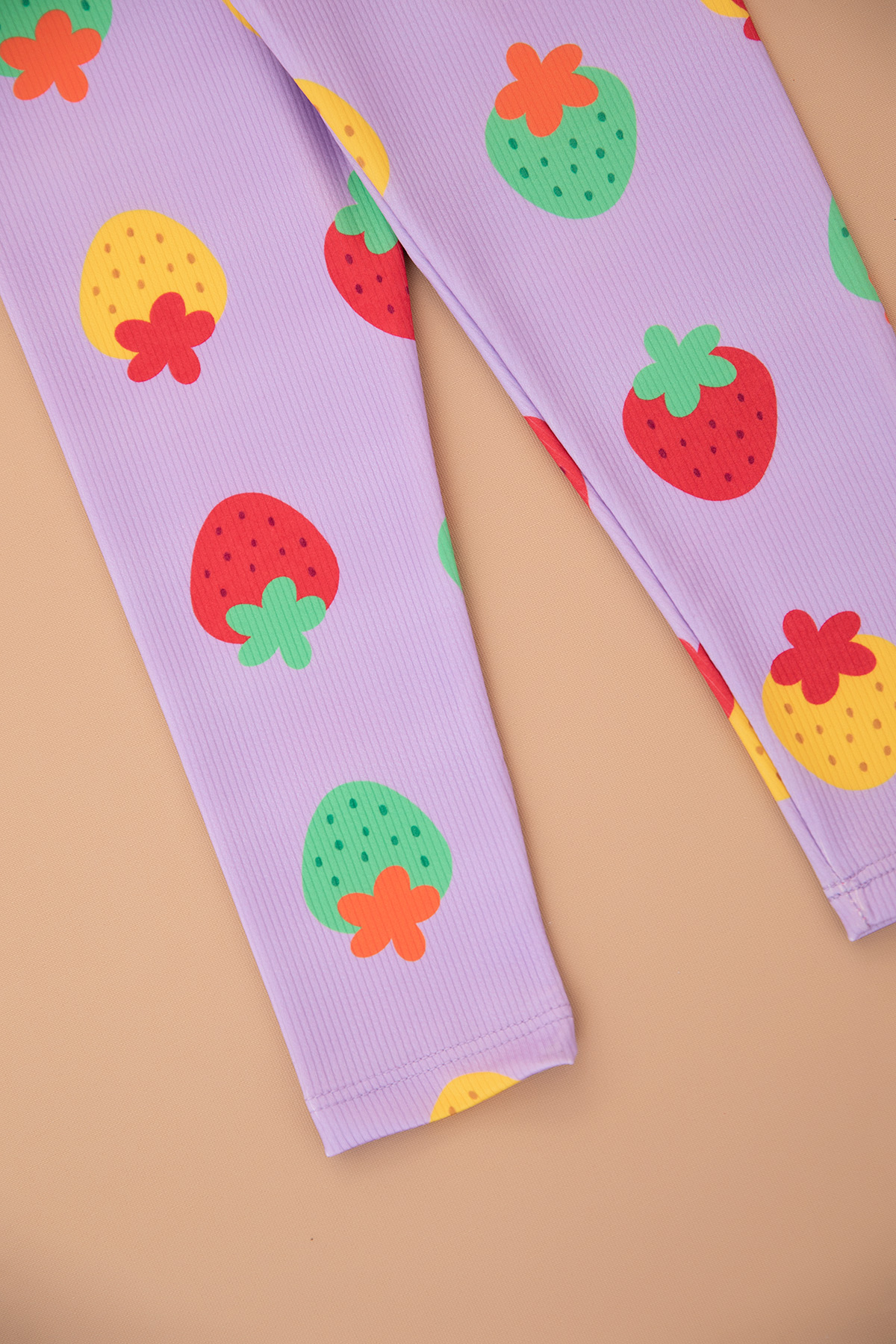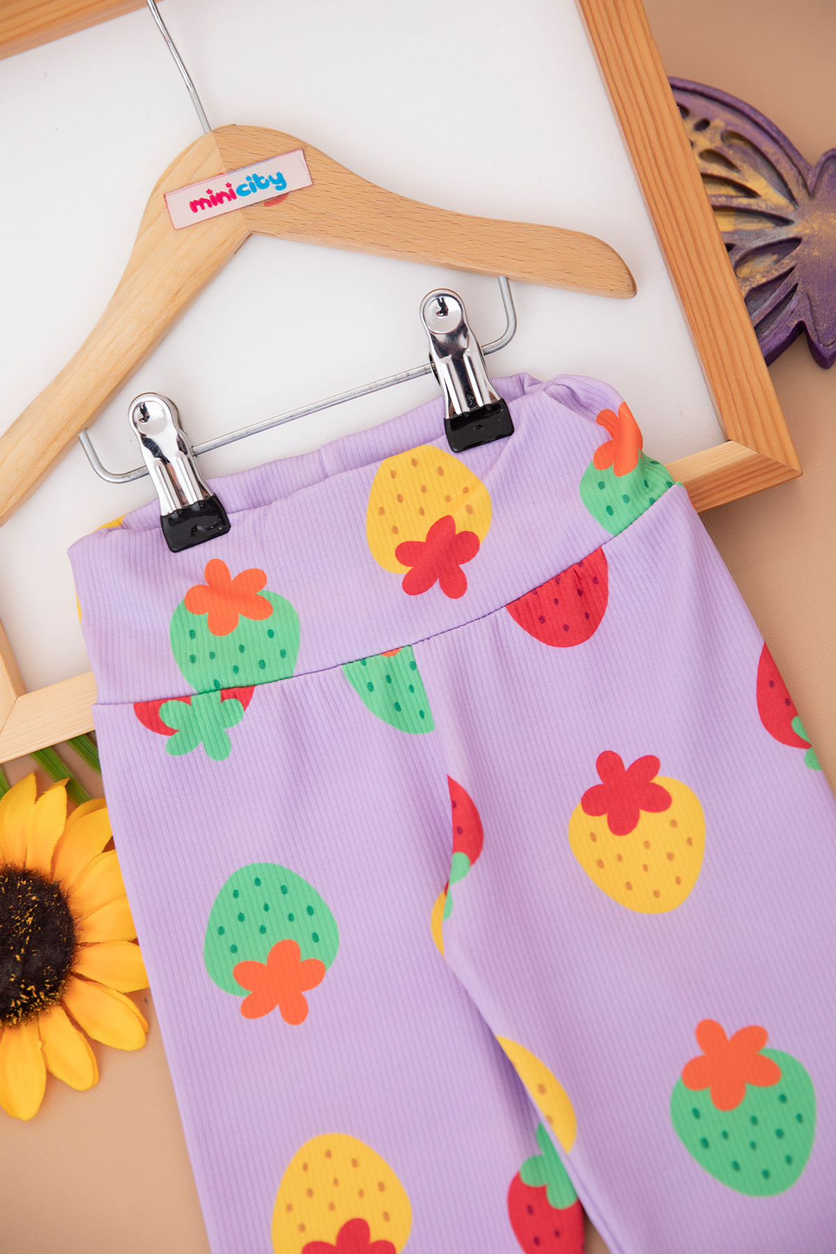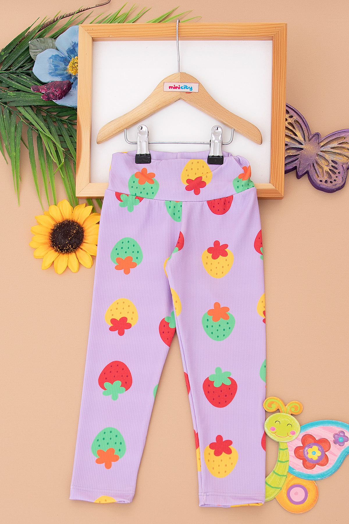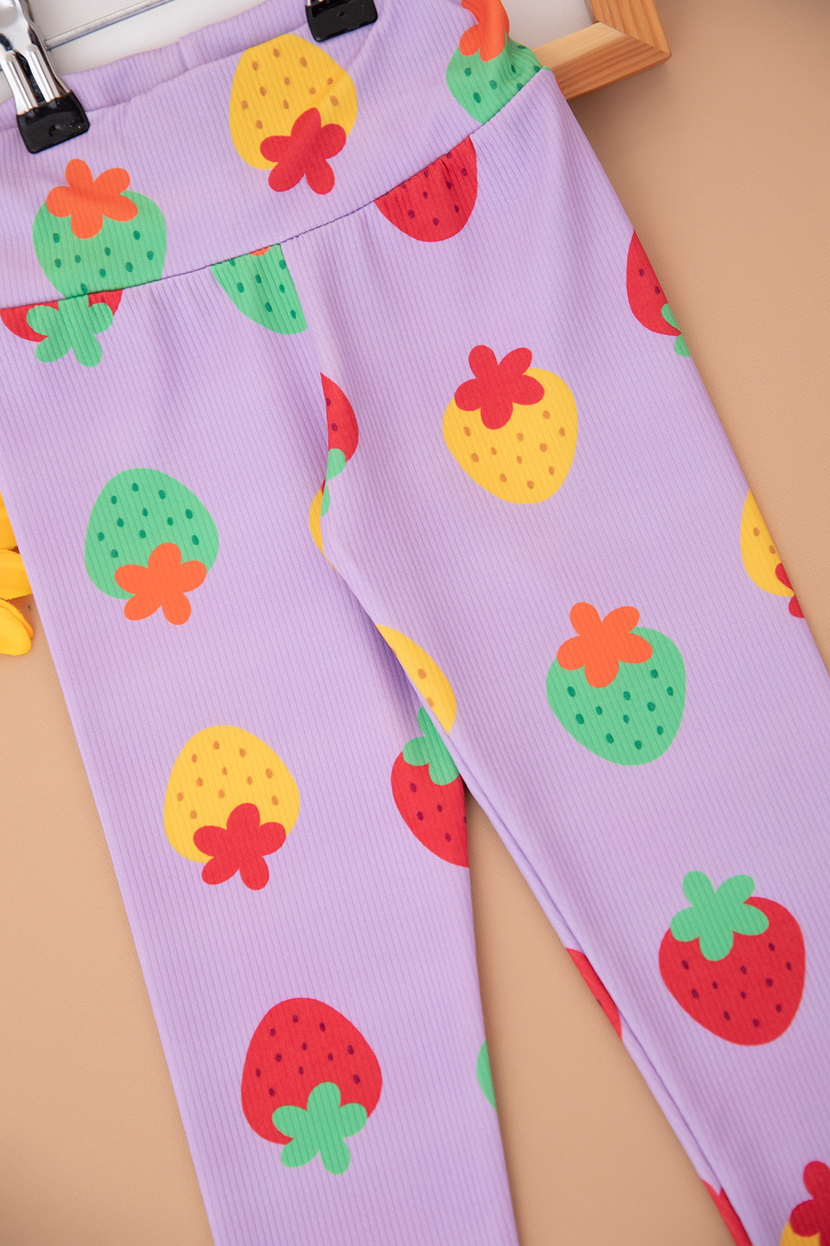 Kız Çocuk Dijital Çilek Baskılı Fitilli Tayt (3-10 Yaş)