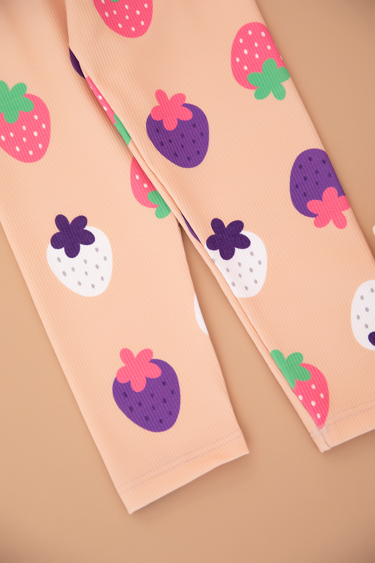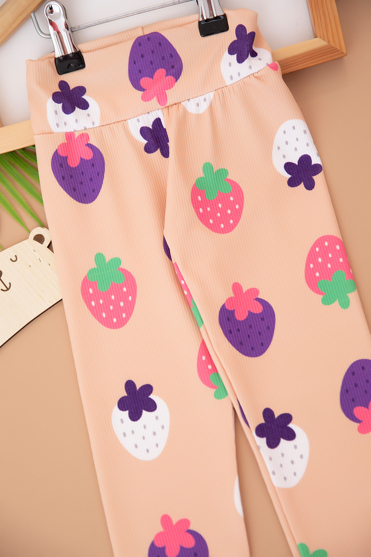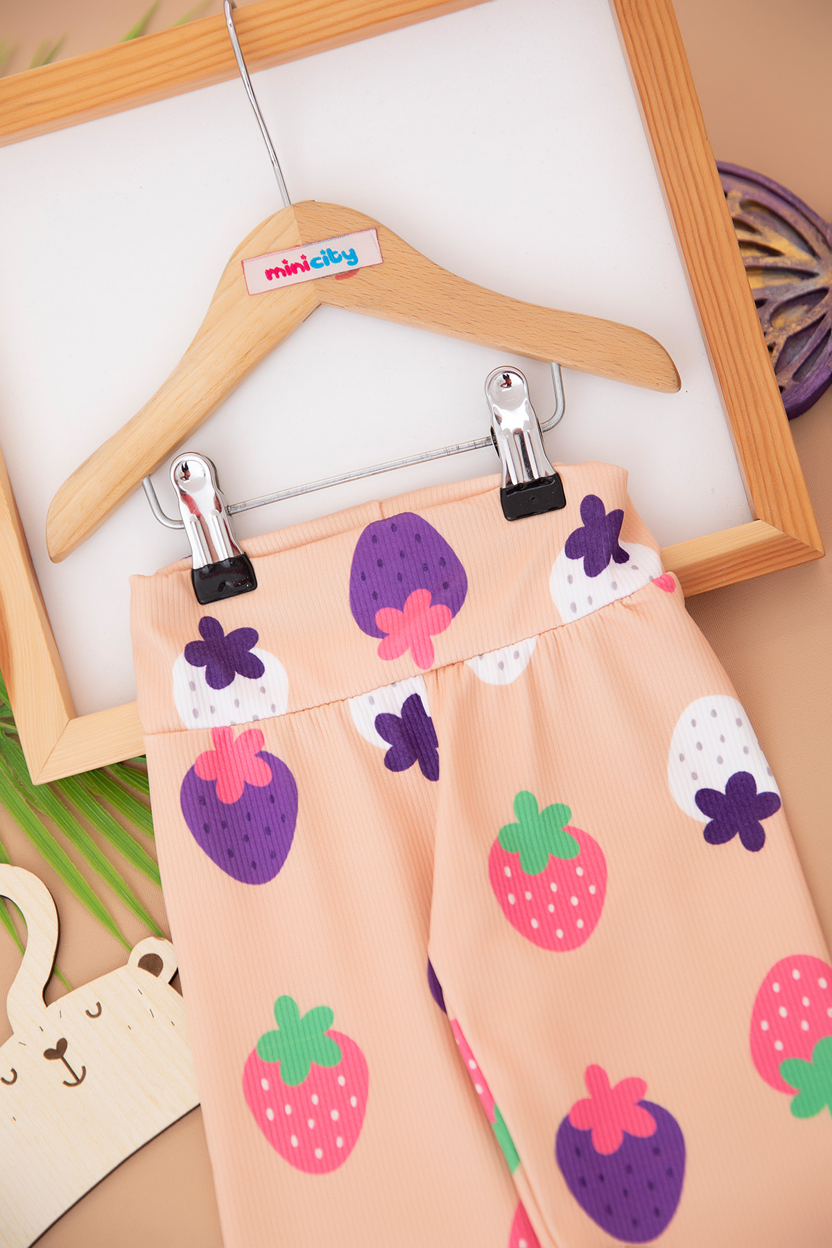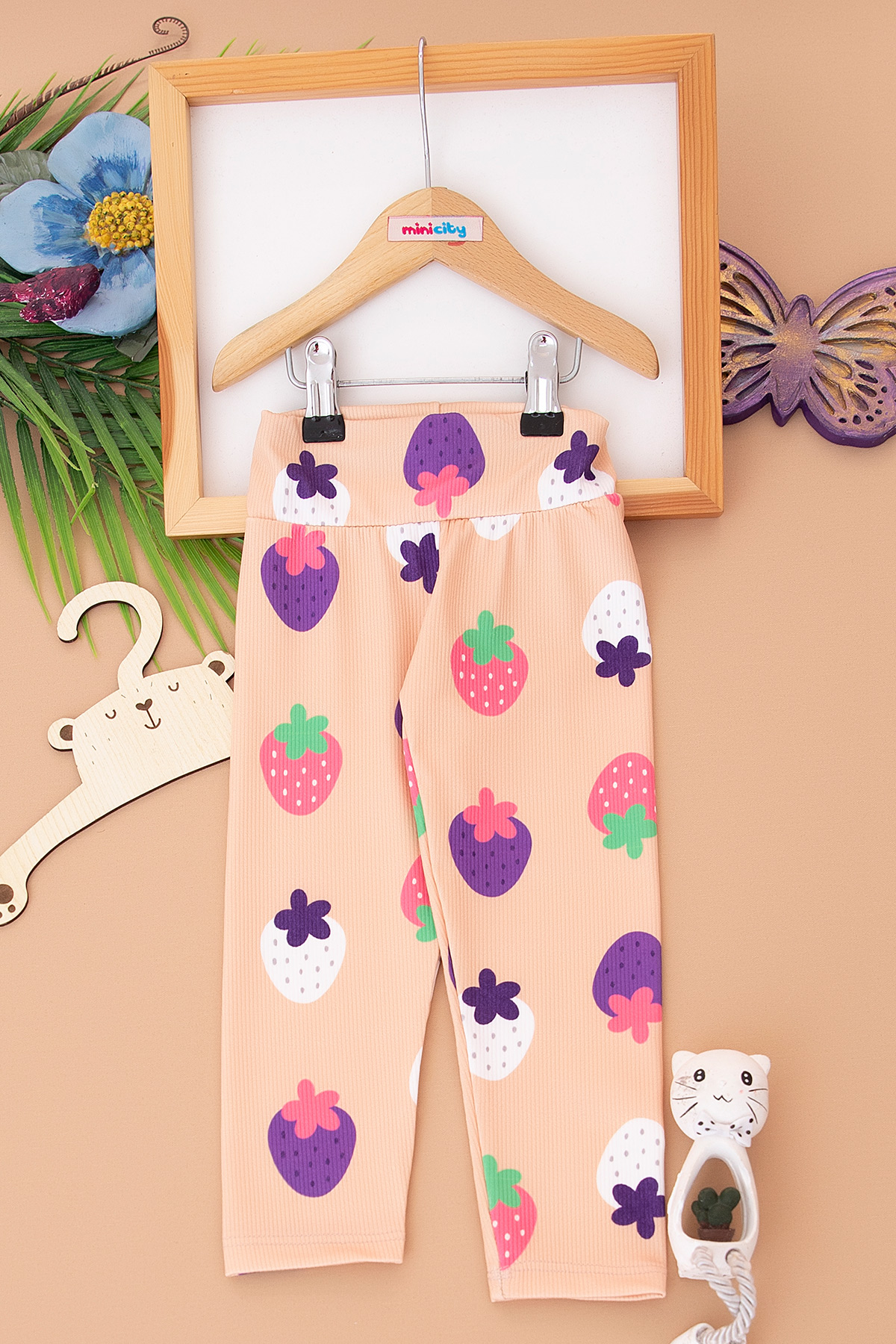 Kız Çocuk Dijital Çilek Baskılı Fitilli Tayt (3-10 Yaş)