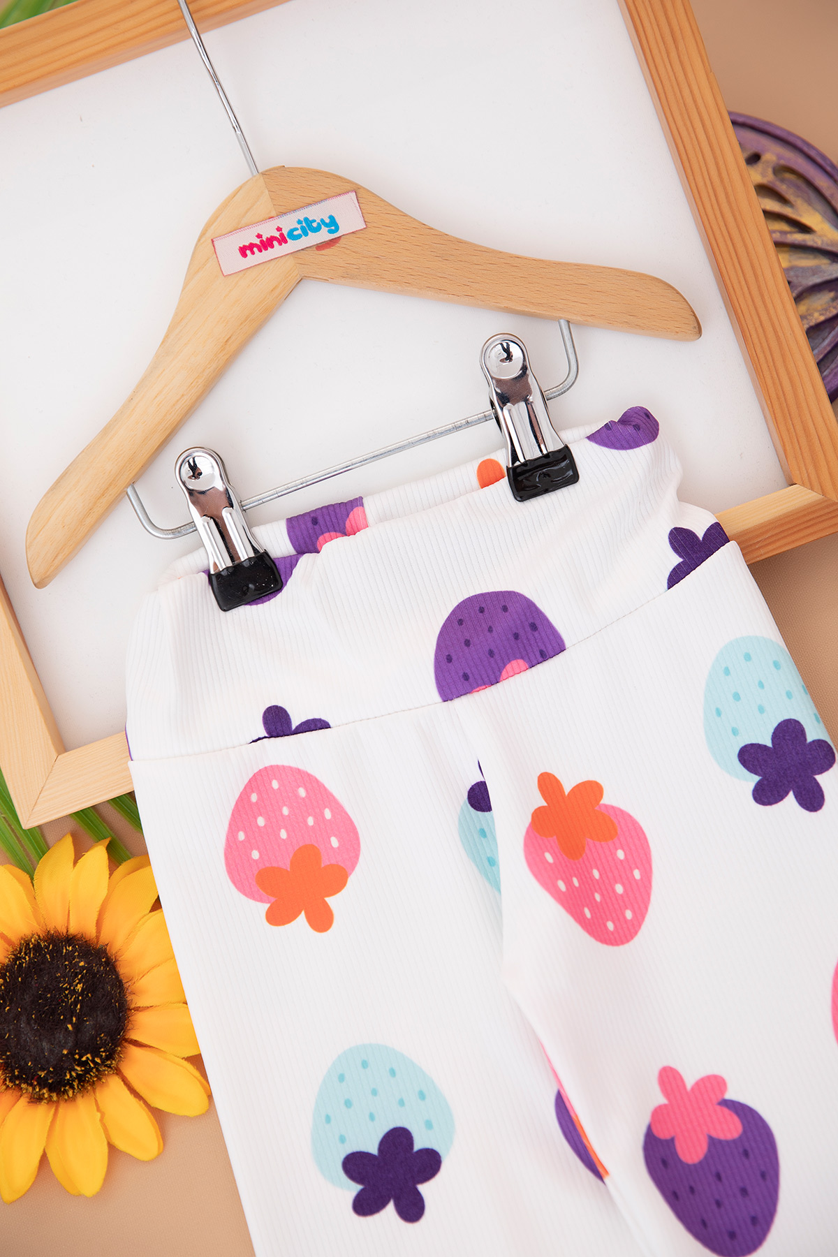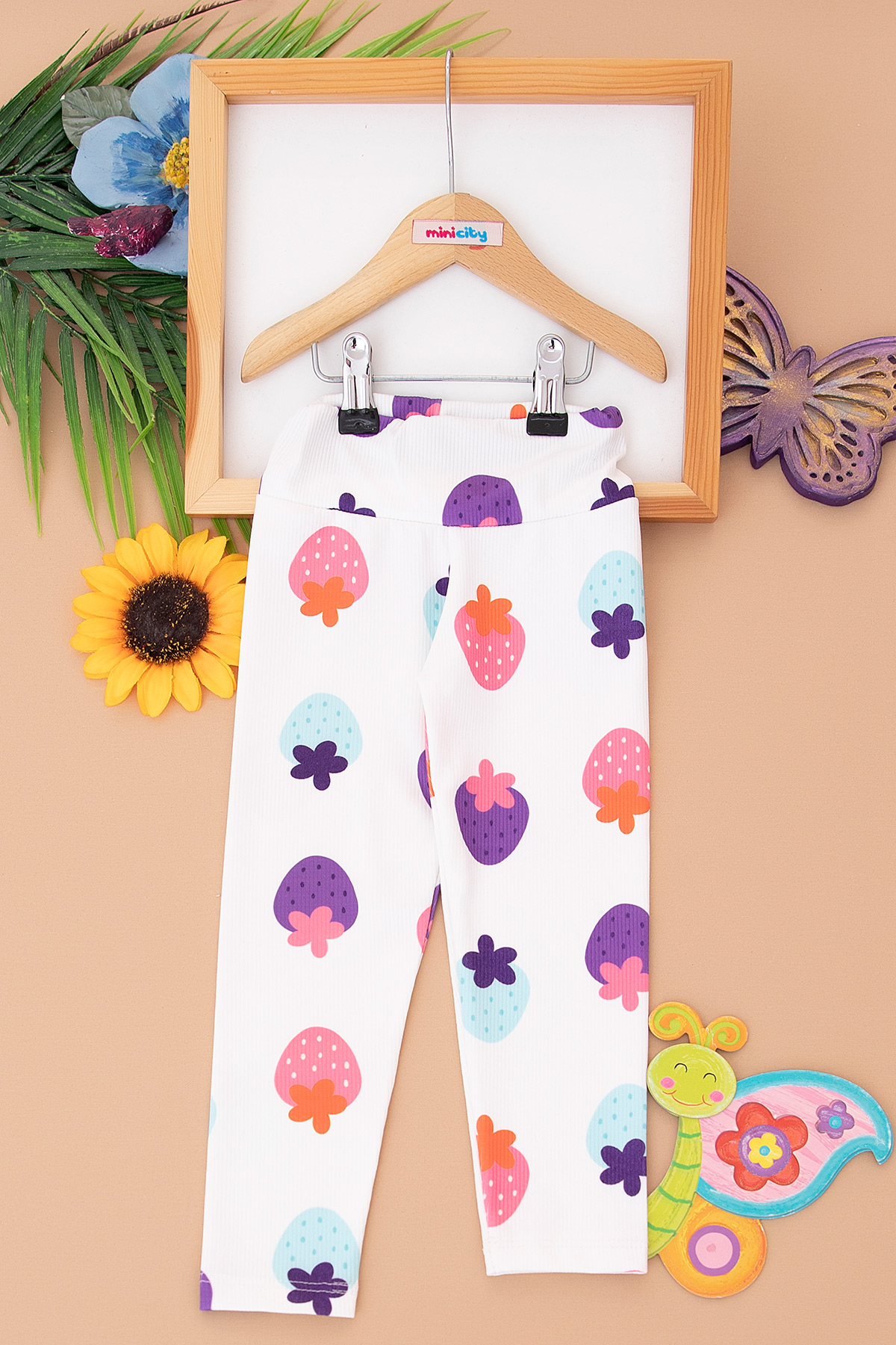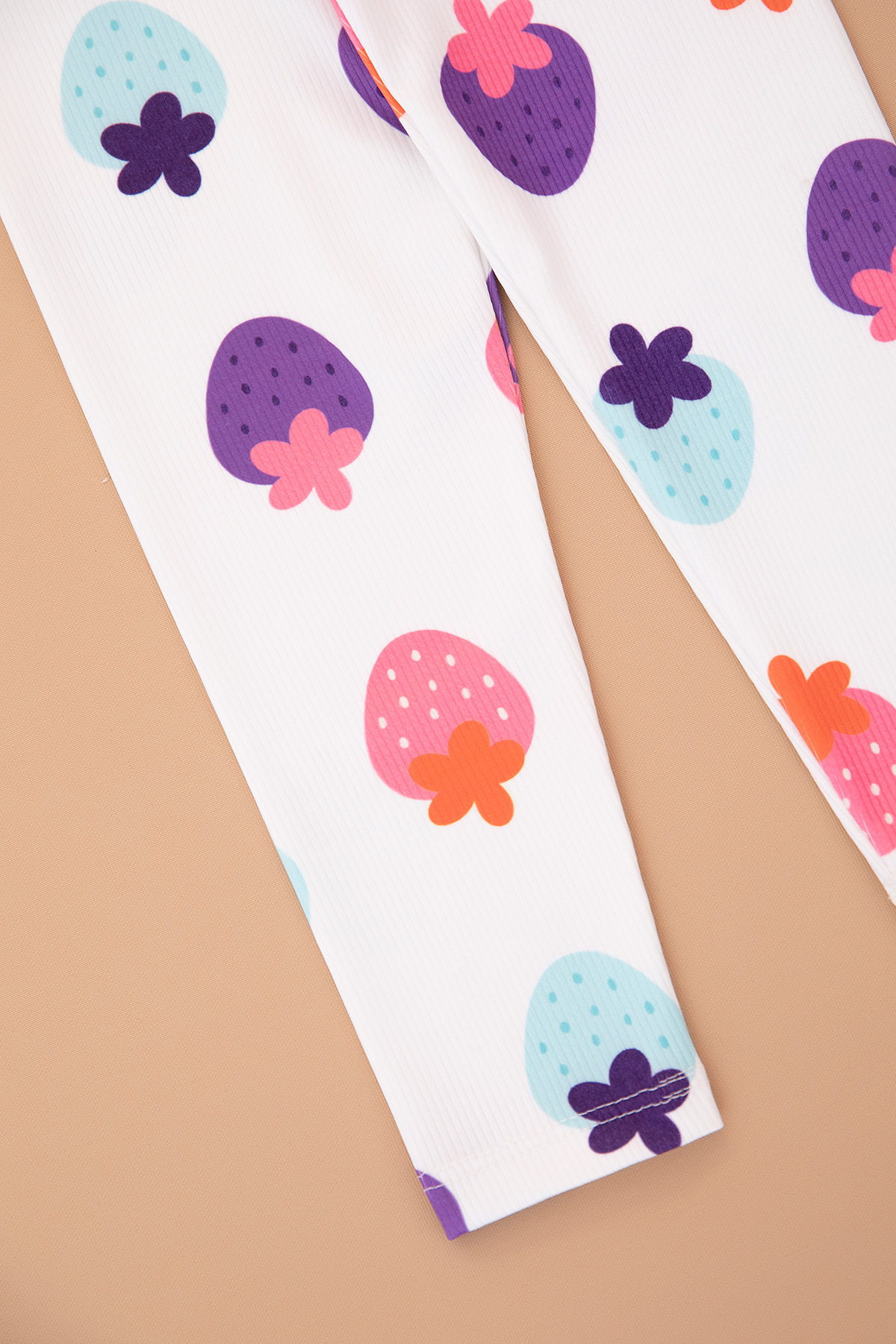 Kız Çocuk Dijital Çilek Baskılı Fitilli Tayt (3-10 Yaş)