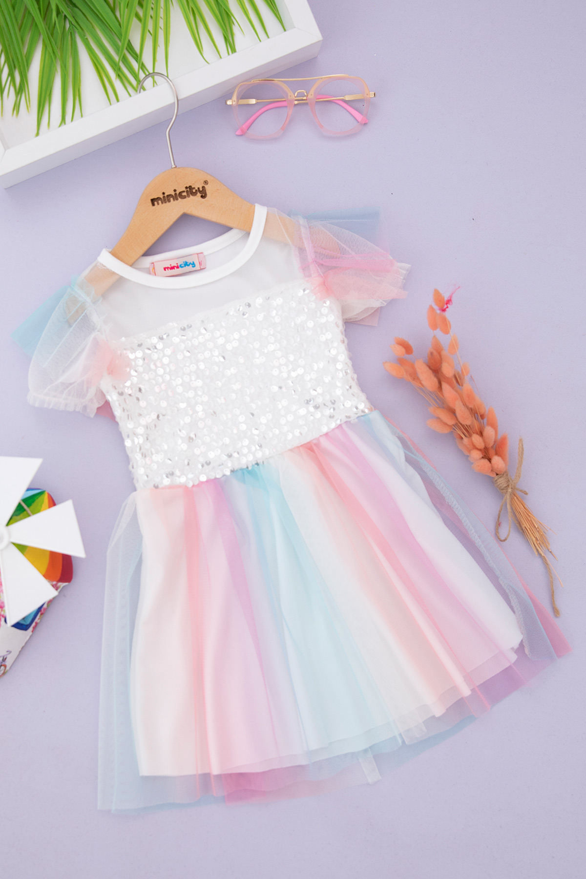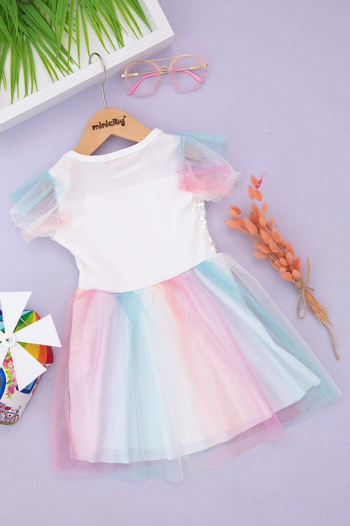 Kız Çocuk Dijital Pullu Elbise - 123320 (2-6 Yaş)