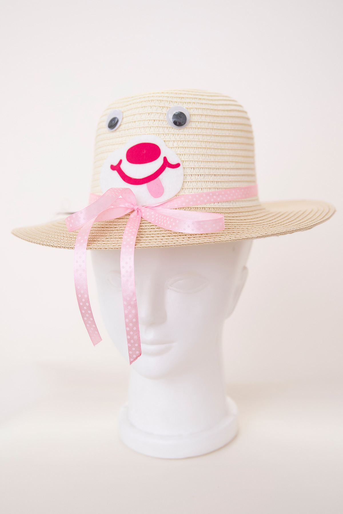 Kız Çocuk Dil Çıkaran Armalı Hasır Şapka - 2502