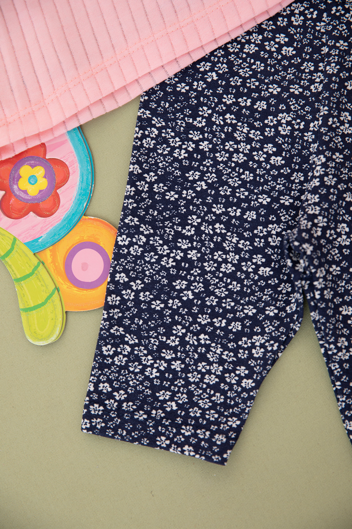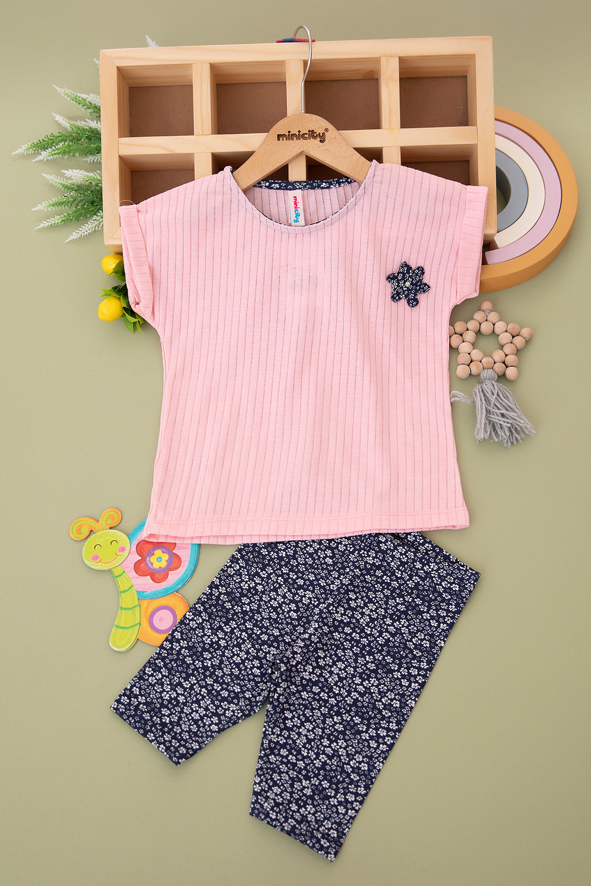 Kız Çocuk Duble Kol Çiçekli Taytlı Takım - 23308 (1-3 Yaş)