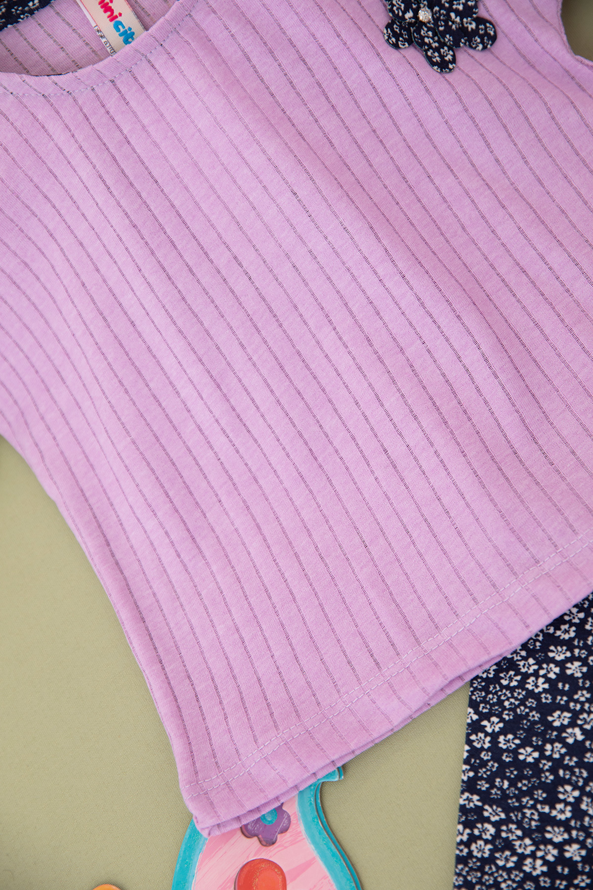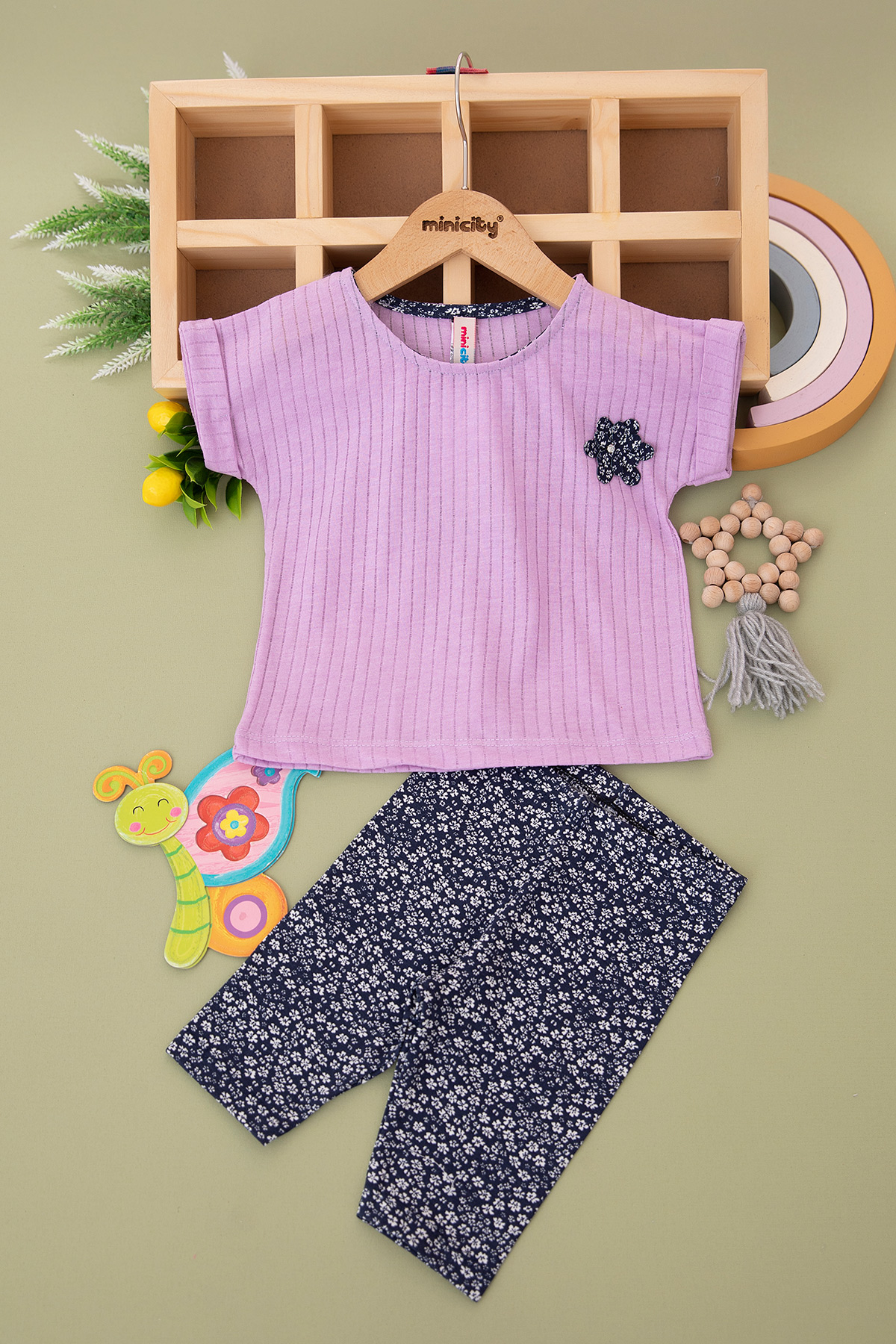 Kız Çocuk Duble Kol Çiçekli Taytlı Takım - 23308 (1-3 Yaş)