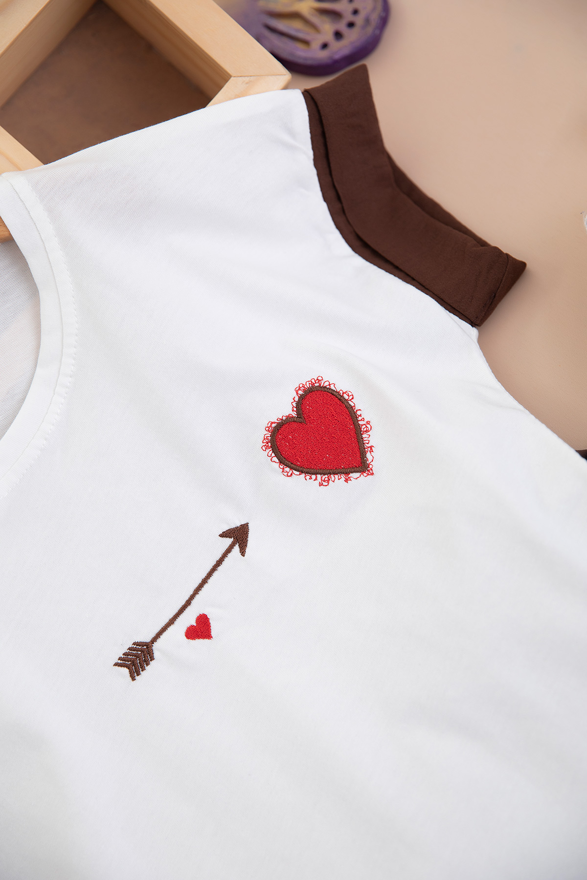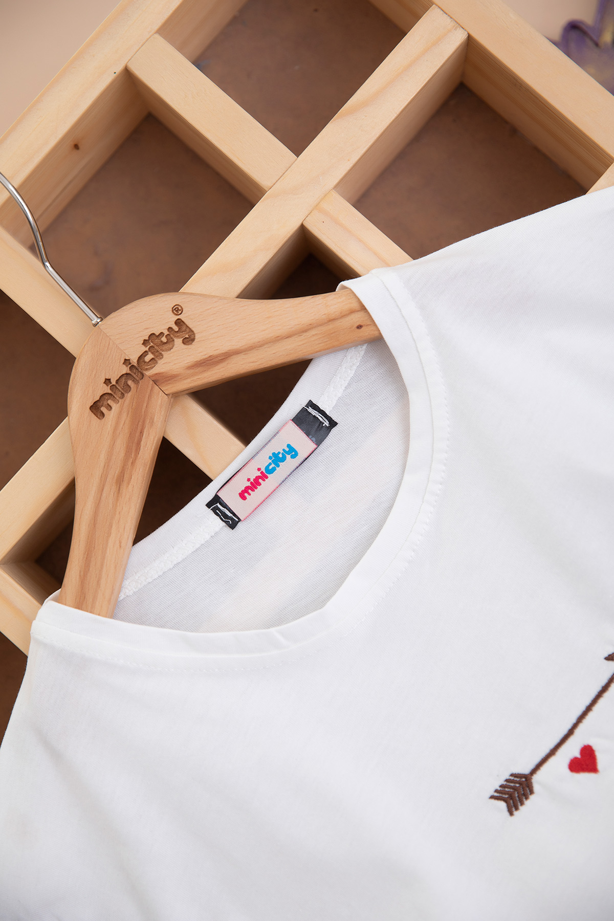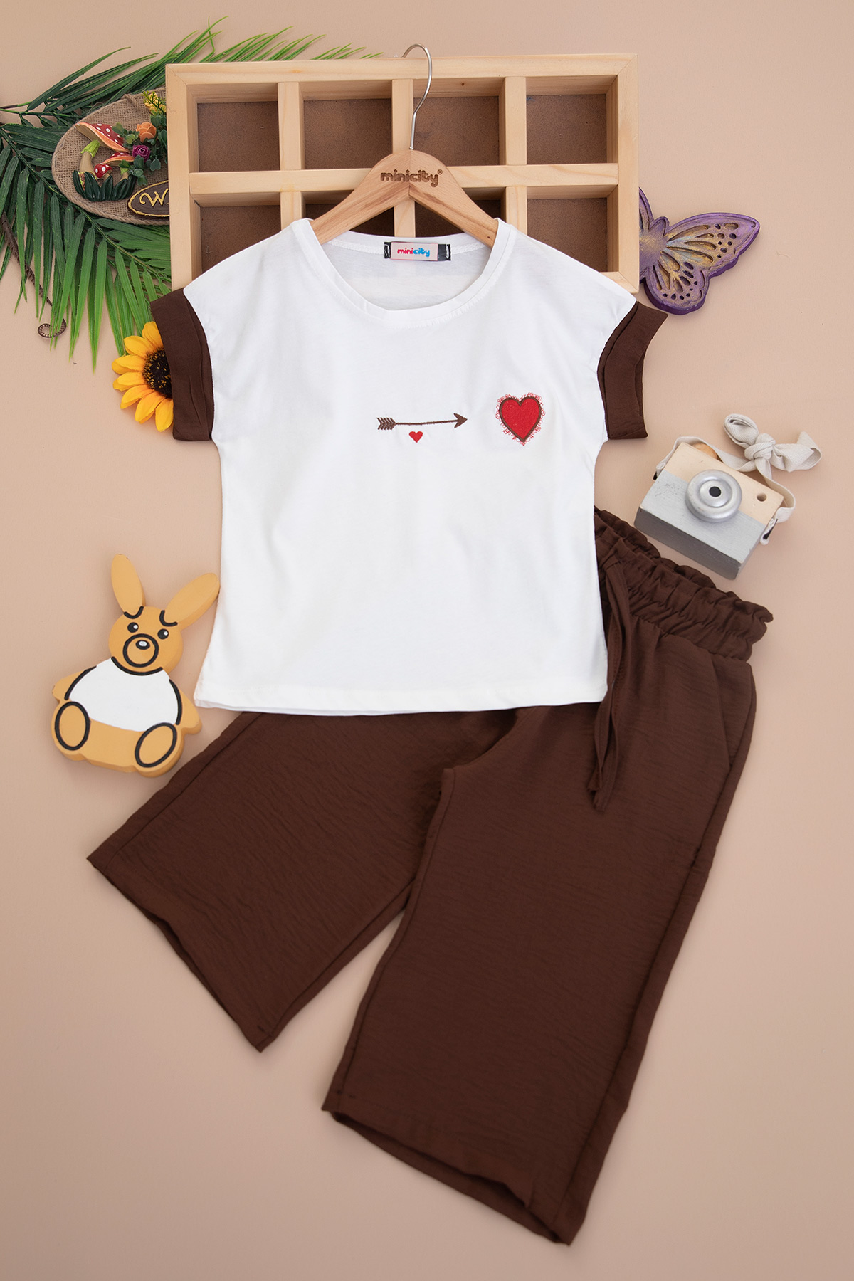 Kız Çocuk Duble Kol Kalp Nakışlı Kaprili Takım - 1024 (6-10 Yaş)