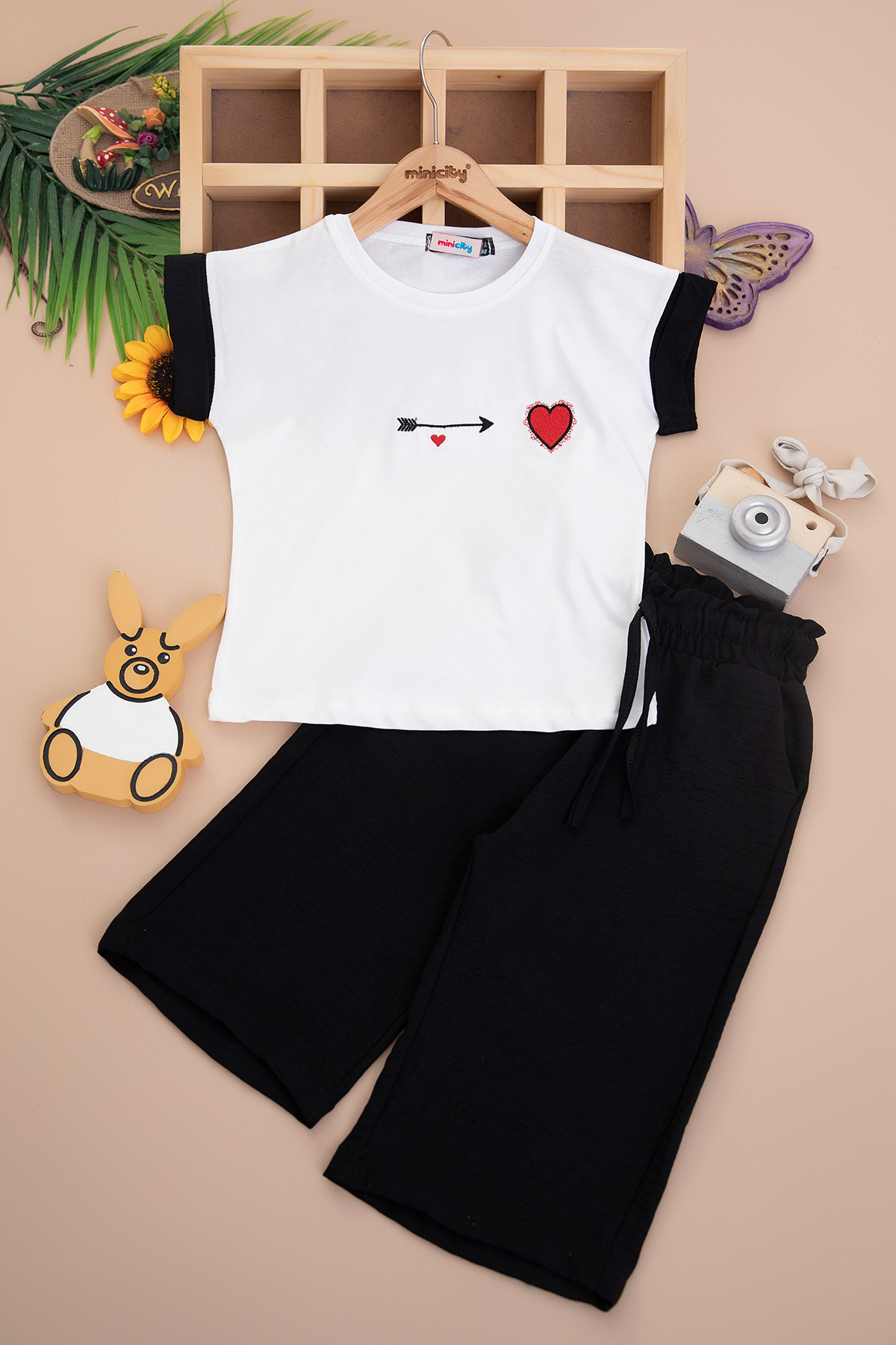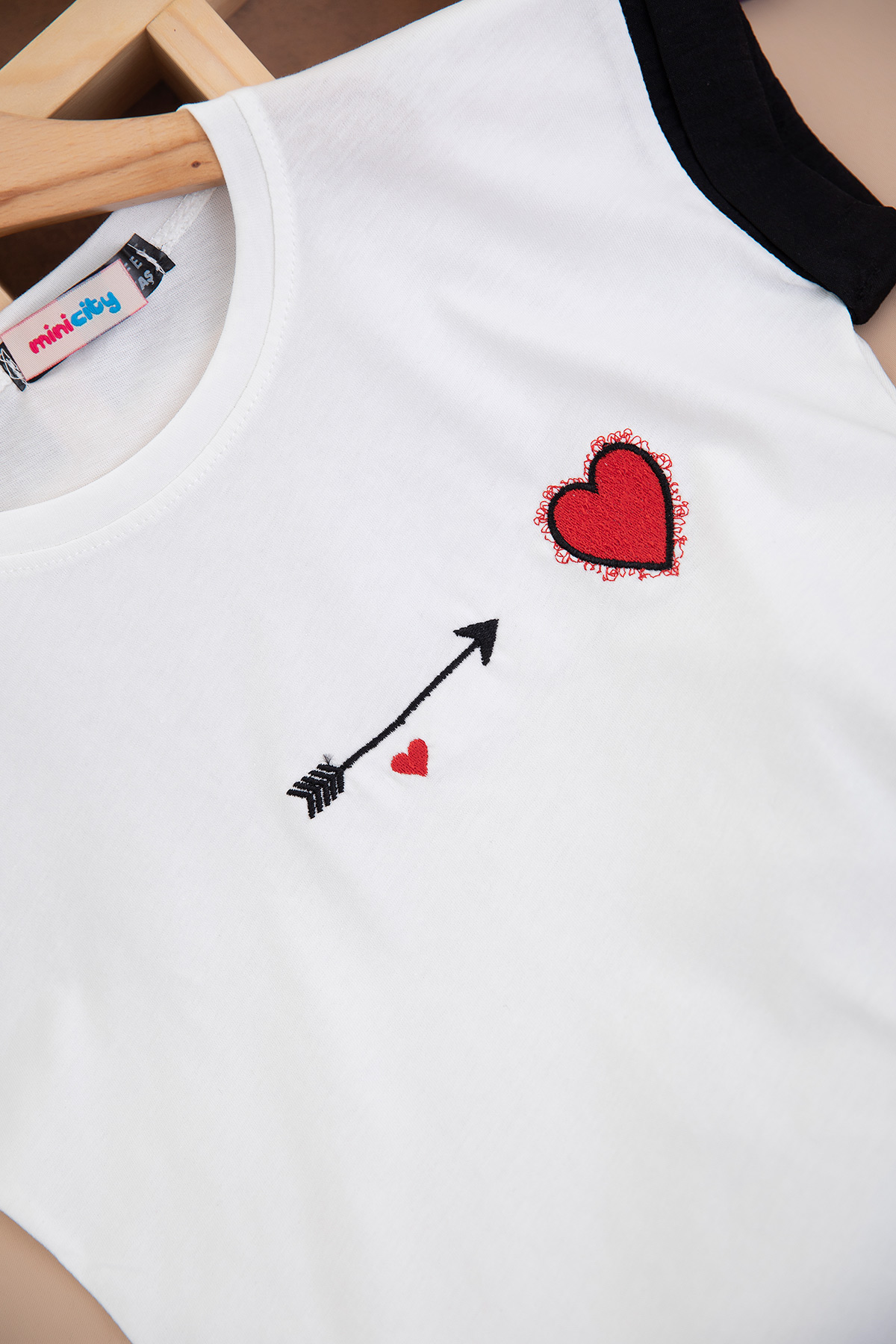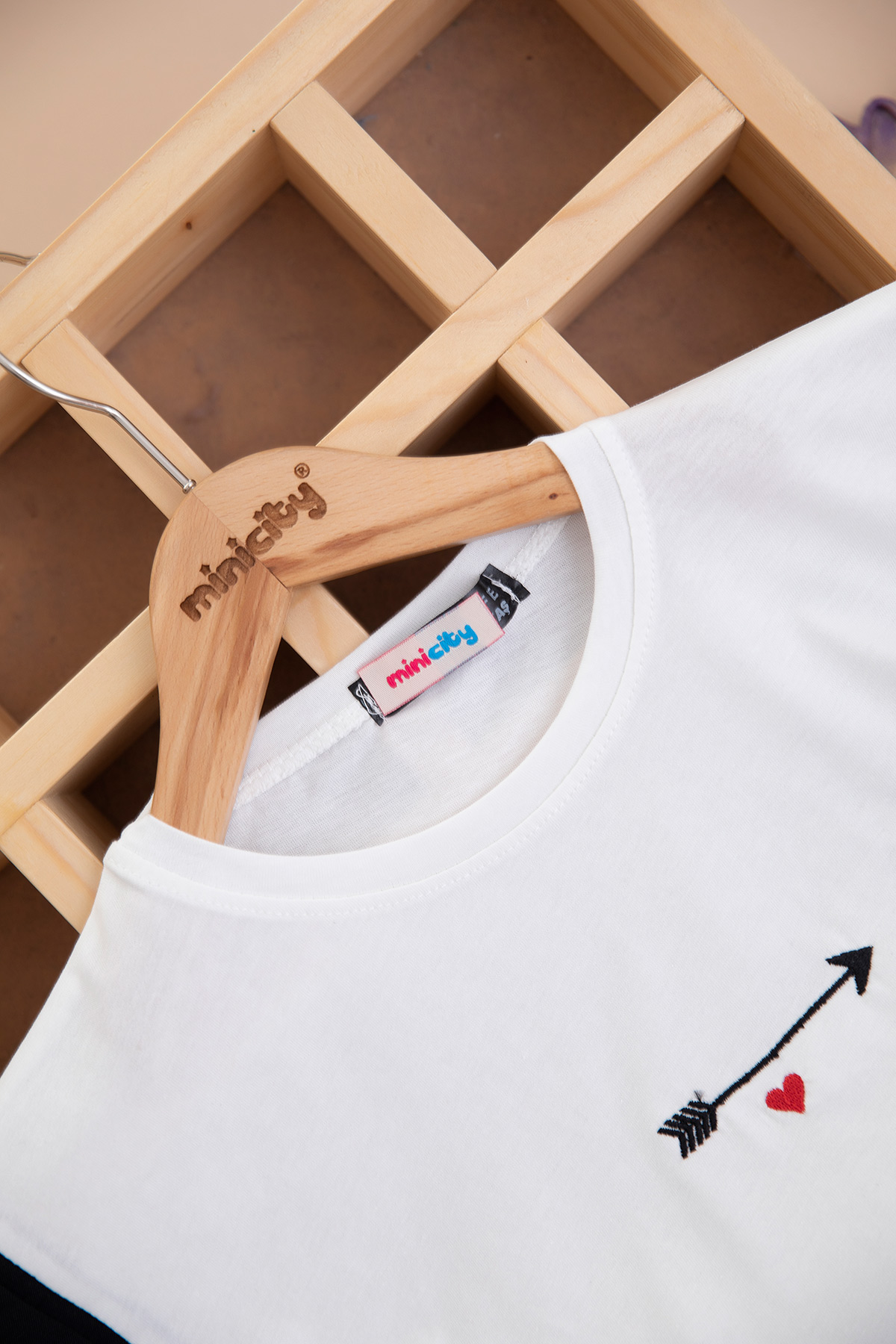Kız Çocuk Duble Kol Kalp Nakışlı Kaprili Takım - 1024 (6-10 Yaş)